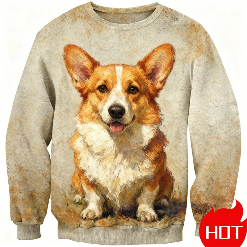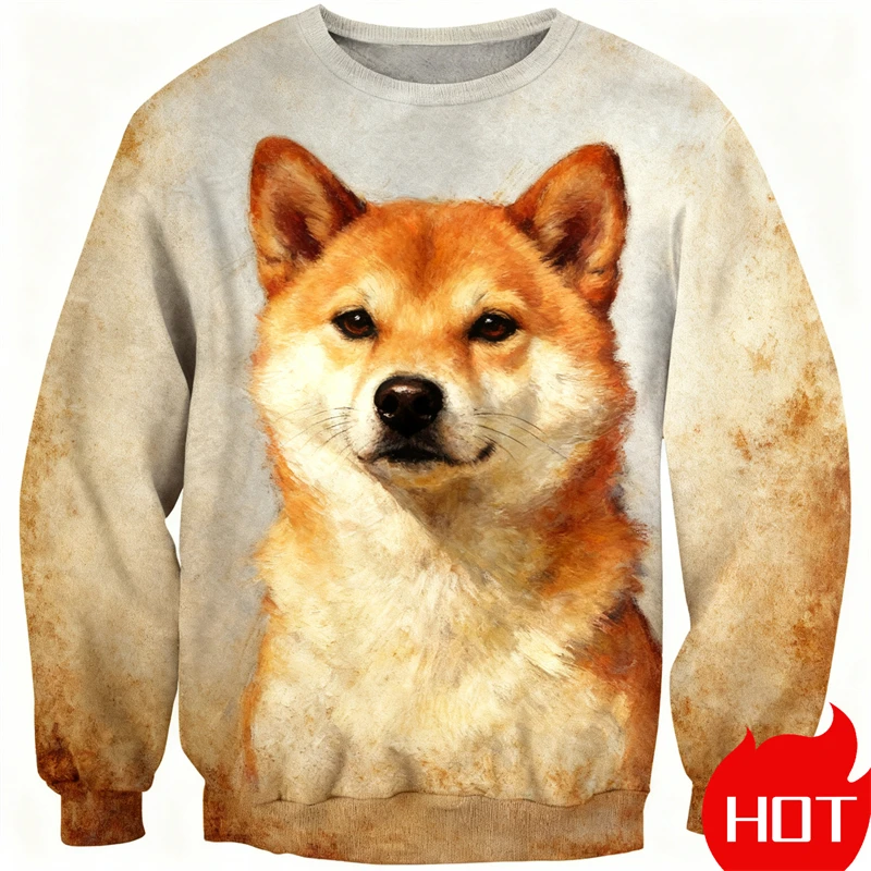 3D Printed Shiba InuLabrador Corgi Hoodie Men Pets Dog Graphic Long Sleeved Sweatshirt Spring Autumn Round Neck Pullovers New