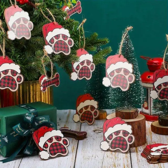 20pcs Holiday Dog Claw Bones Christmas Decorations, Wooden, Hanging, Christmas Tree Decorations, Pet Theme