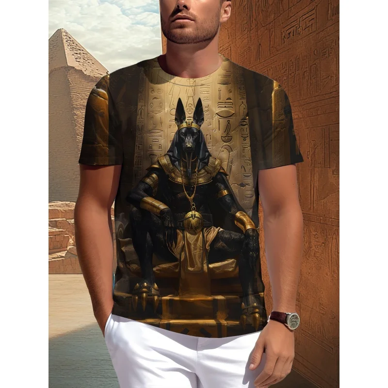 3D Printed Ancient Egypt T-Shirt For Men Pharaoh Anubis Pattern T Shirts Summer Casual Tees Round Neck Tops Loose Short Sleeves