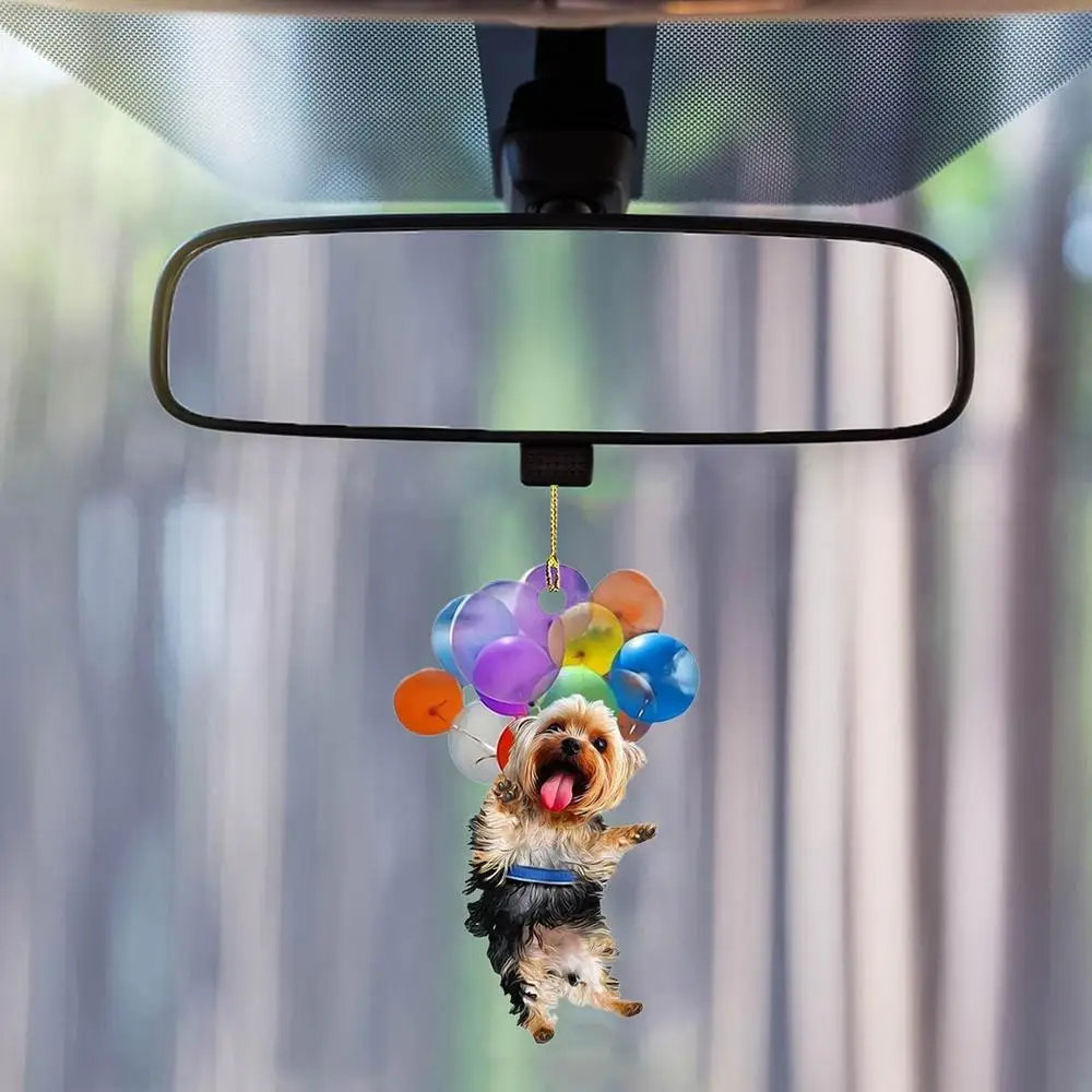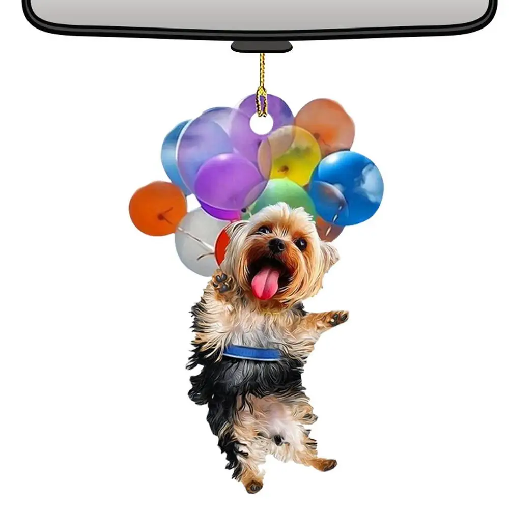Acrylic Car Hanging Ornament Cute Dog Keychain Hanging Pendant With Colorful Balloon Hanging Ornament Gift Puppy Car Pendant