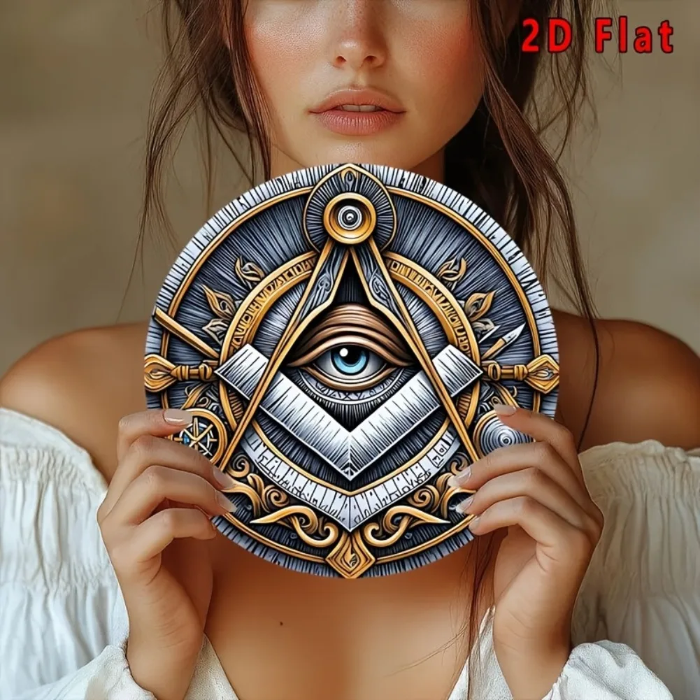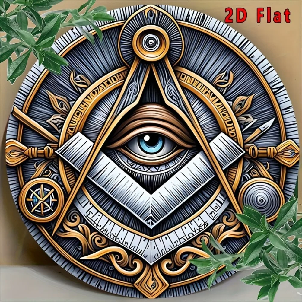 1pc Vintage Aluminum Style Masonic Eye of Providence Wall Art, Decorative Sign, Humorous Art Plaque, Multipurpose