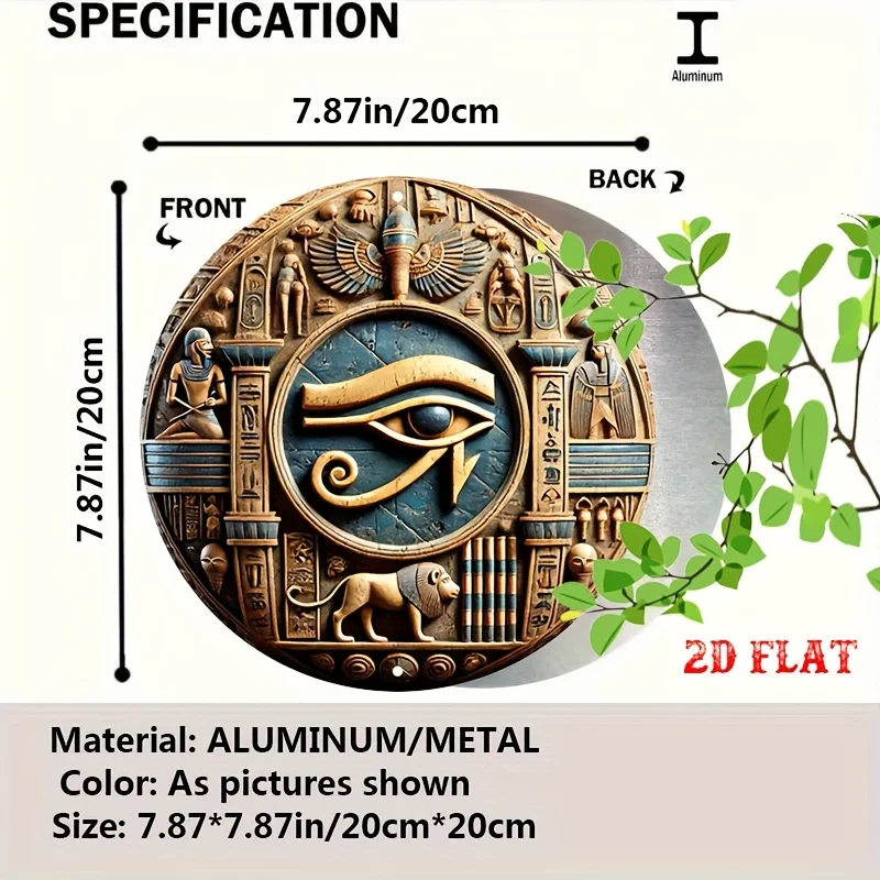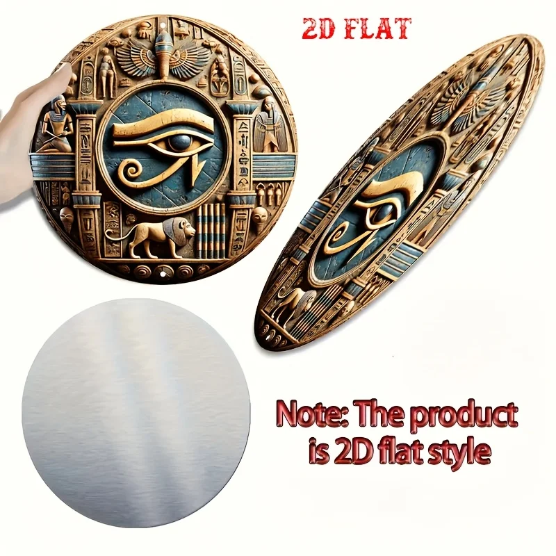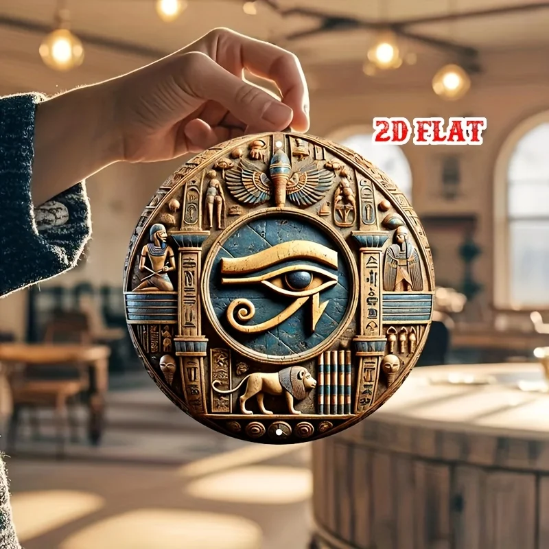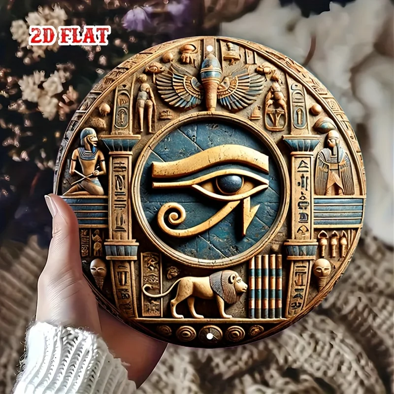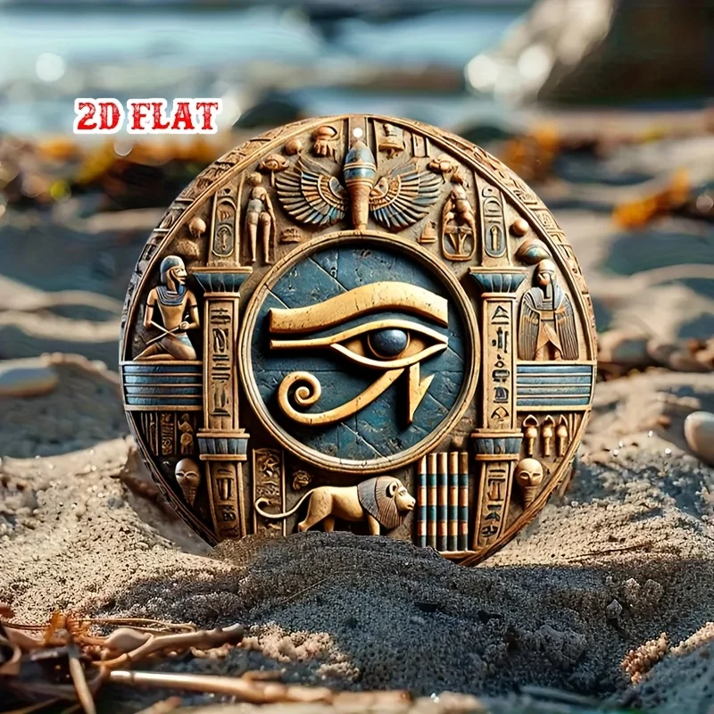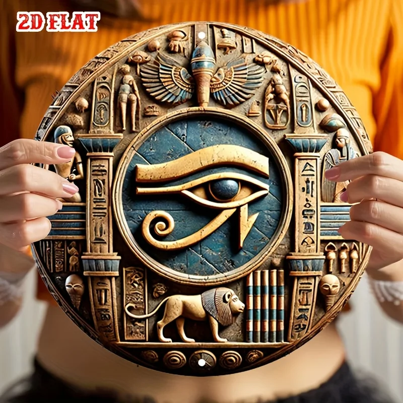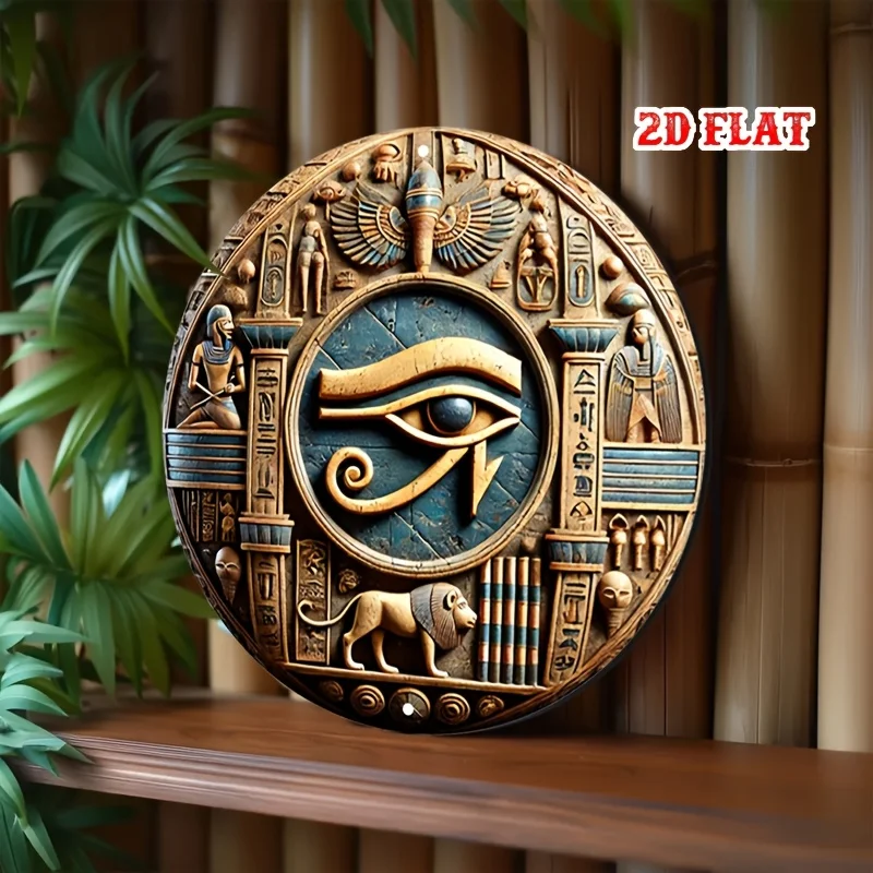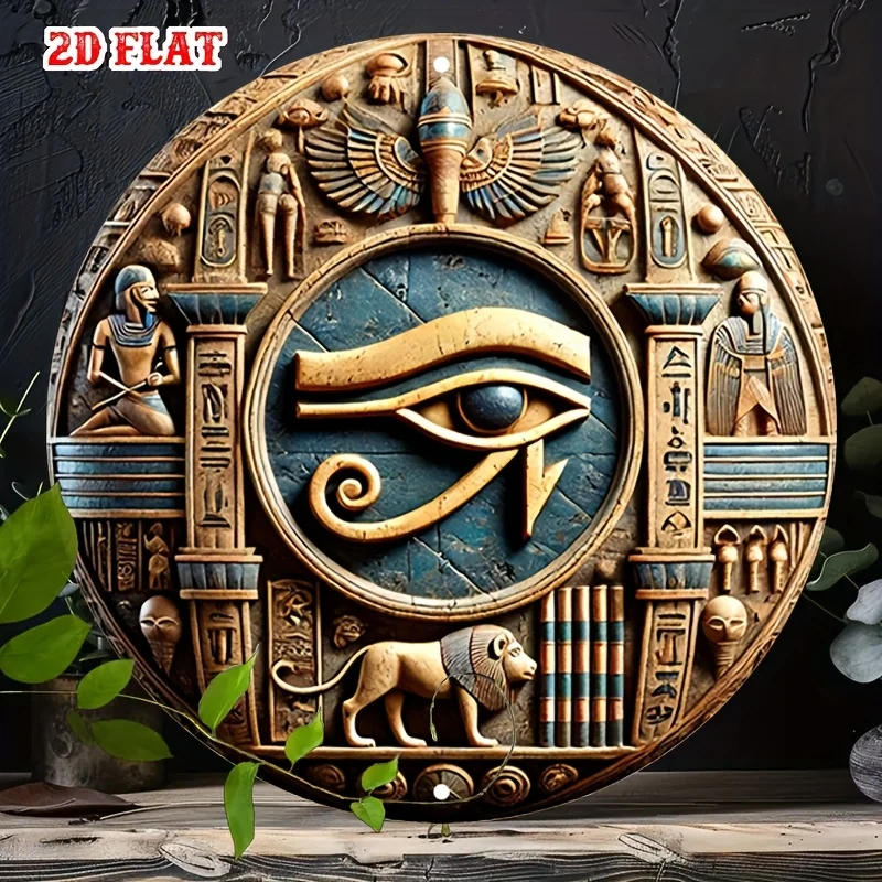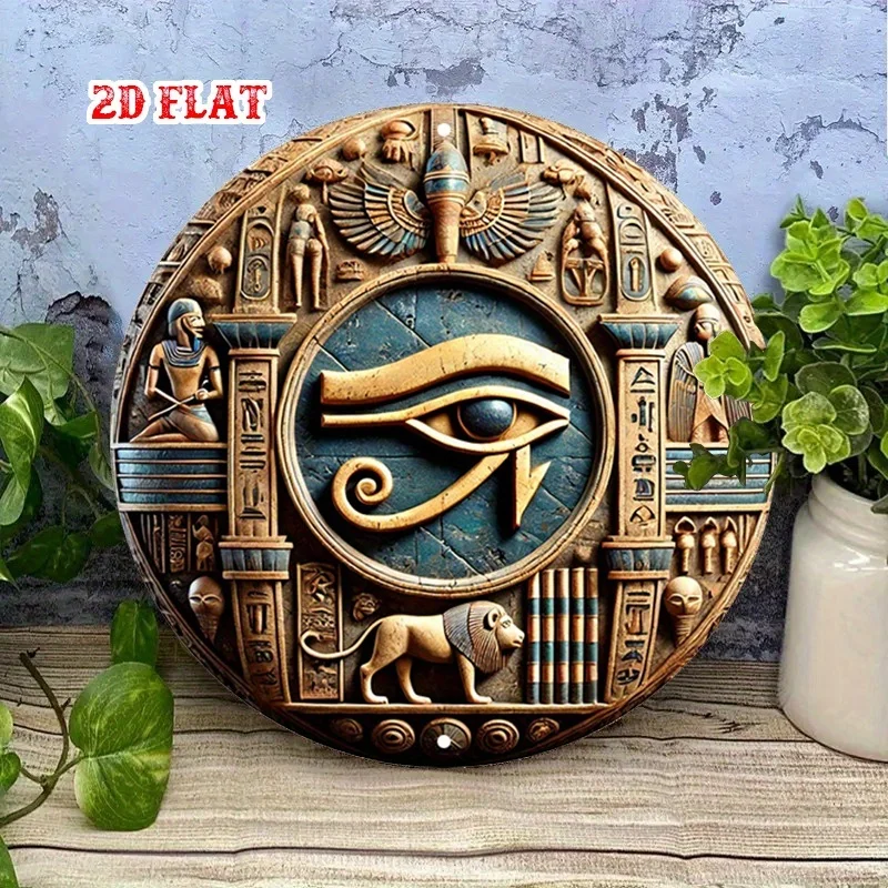 1pc Ancient Egyptian-Inspired Round Aluminum Sign - 3D Carved Metal Wall Art with Hieroglyphs & Mythical Designs, Rust