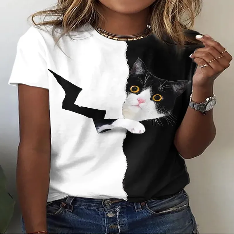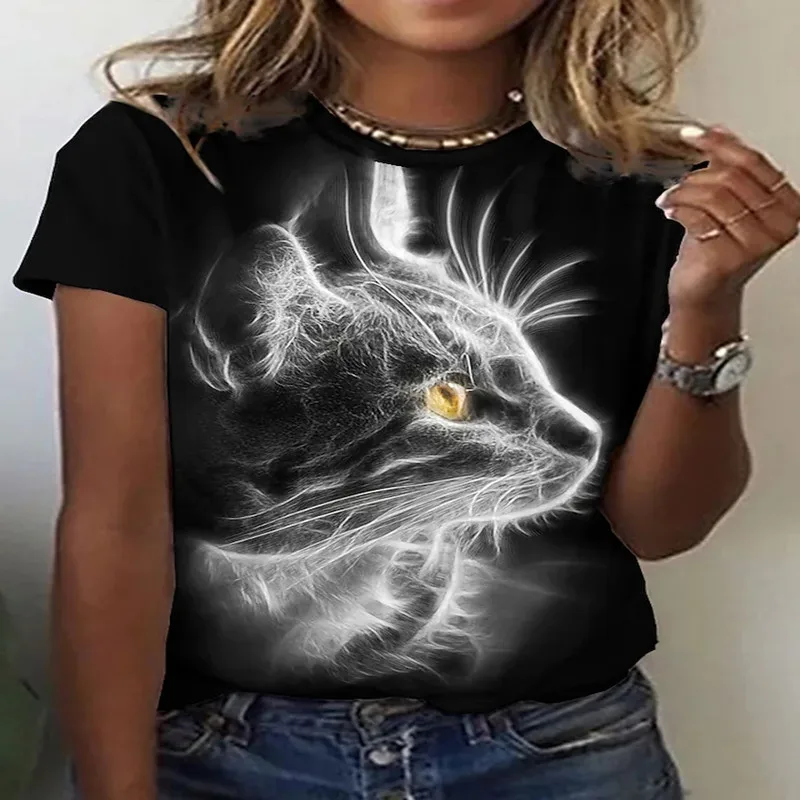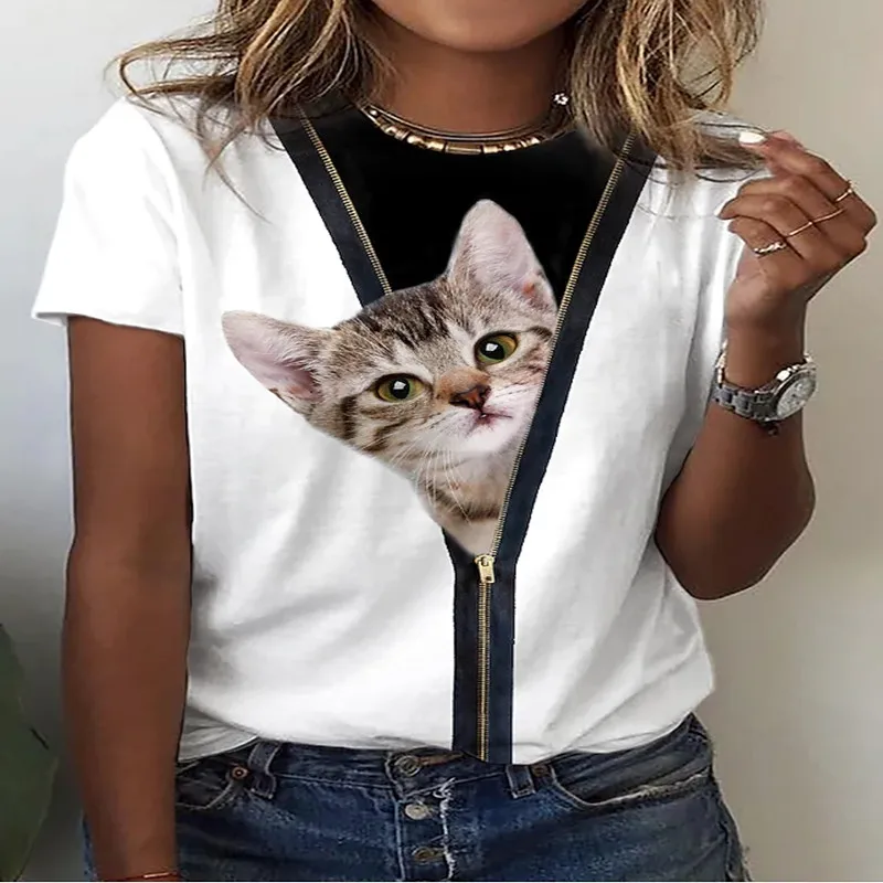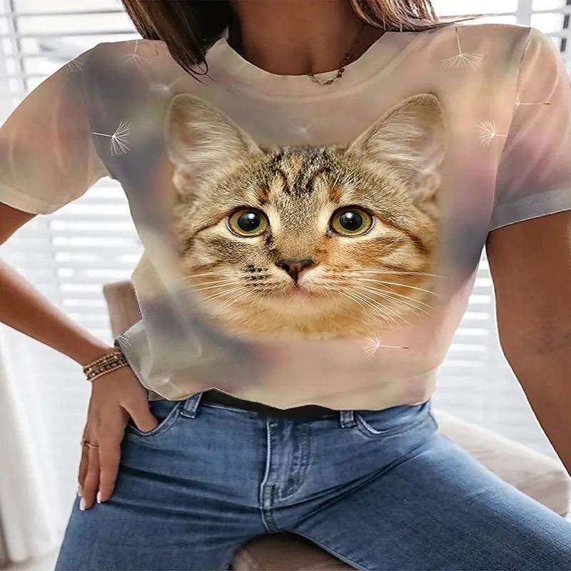 Animal 3D Print T-shirt Outdoor Fashion Loose Women's Short Sleeve Round Neck Top Summer New Breathable Shirt