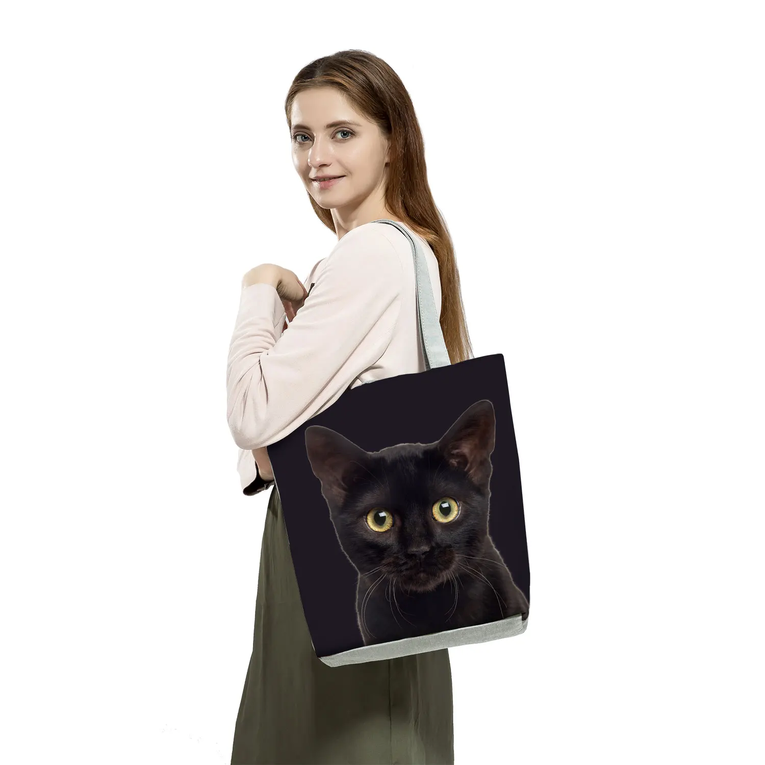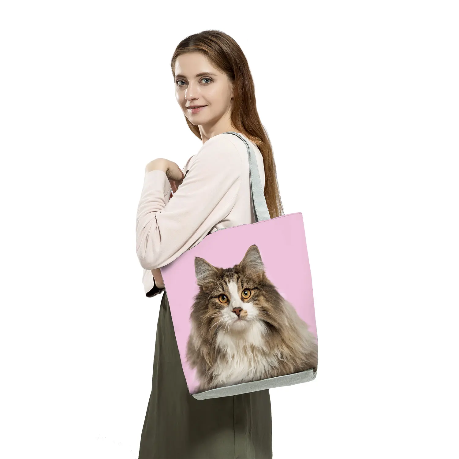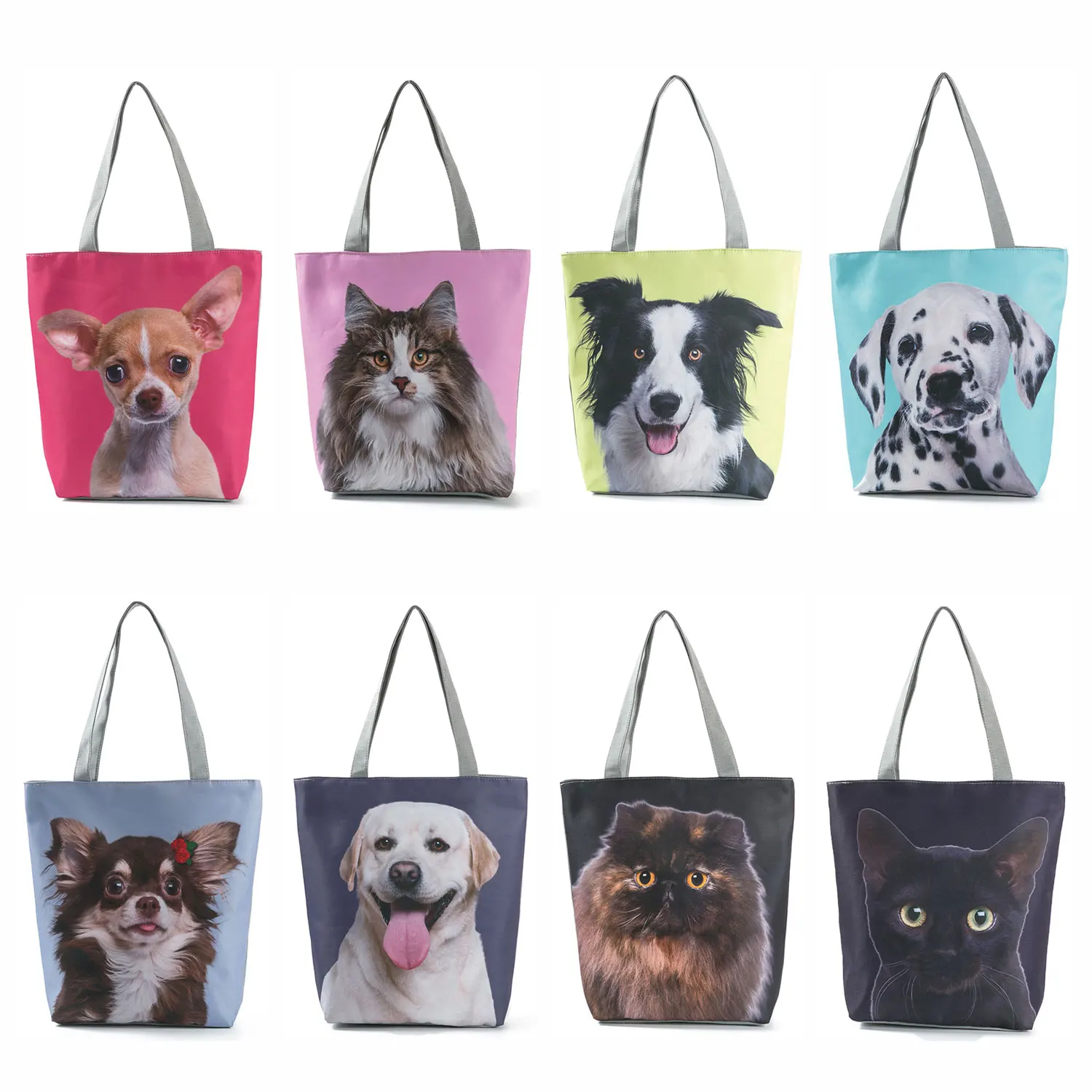 Animal Cats Dog Printed Handbags Eco Reusable Foldable Storage Practical Shopping Bag Cute Fashion Shoulder Bag Outdoor Tote Bag
