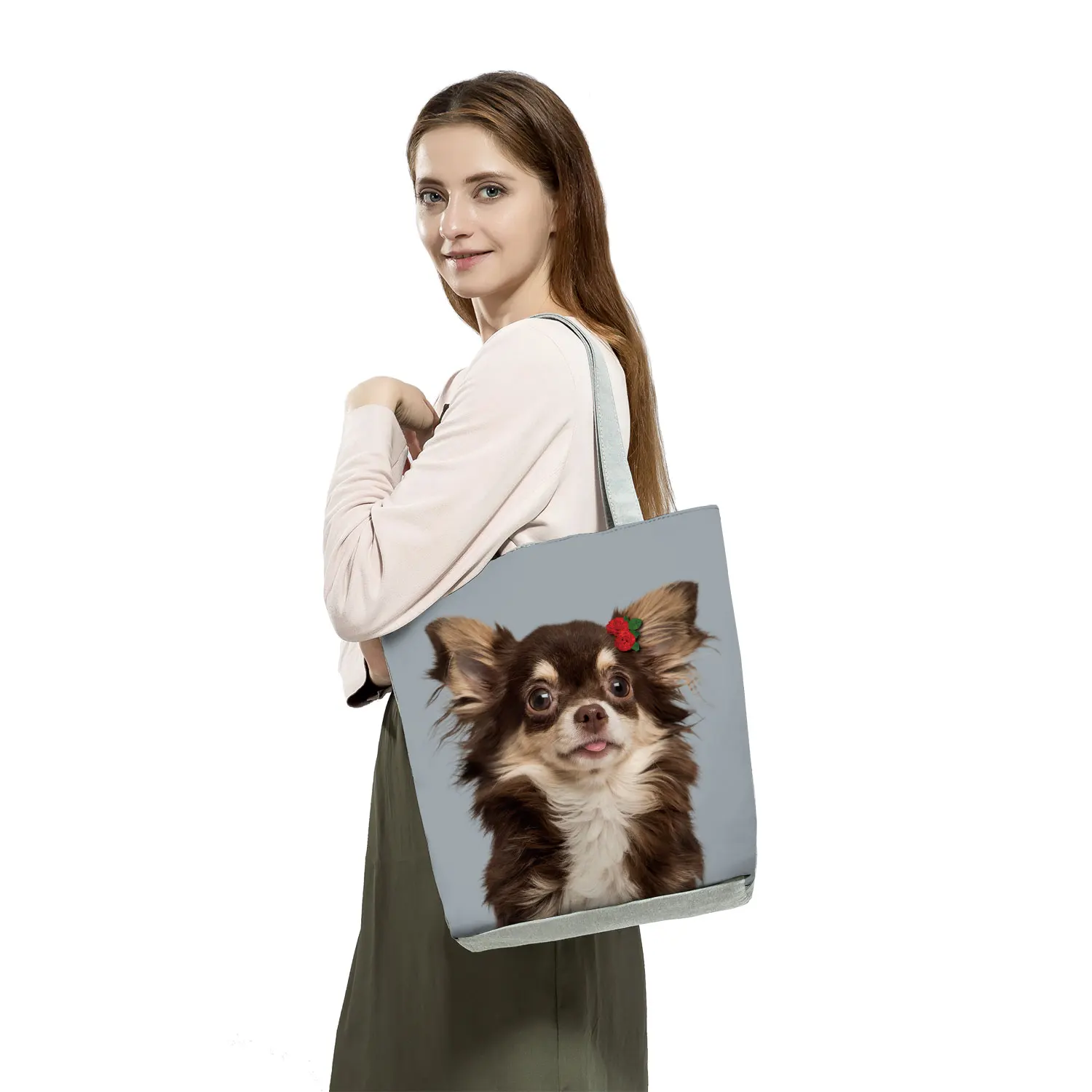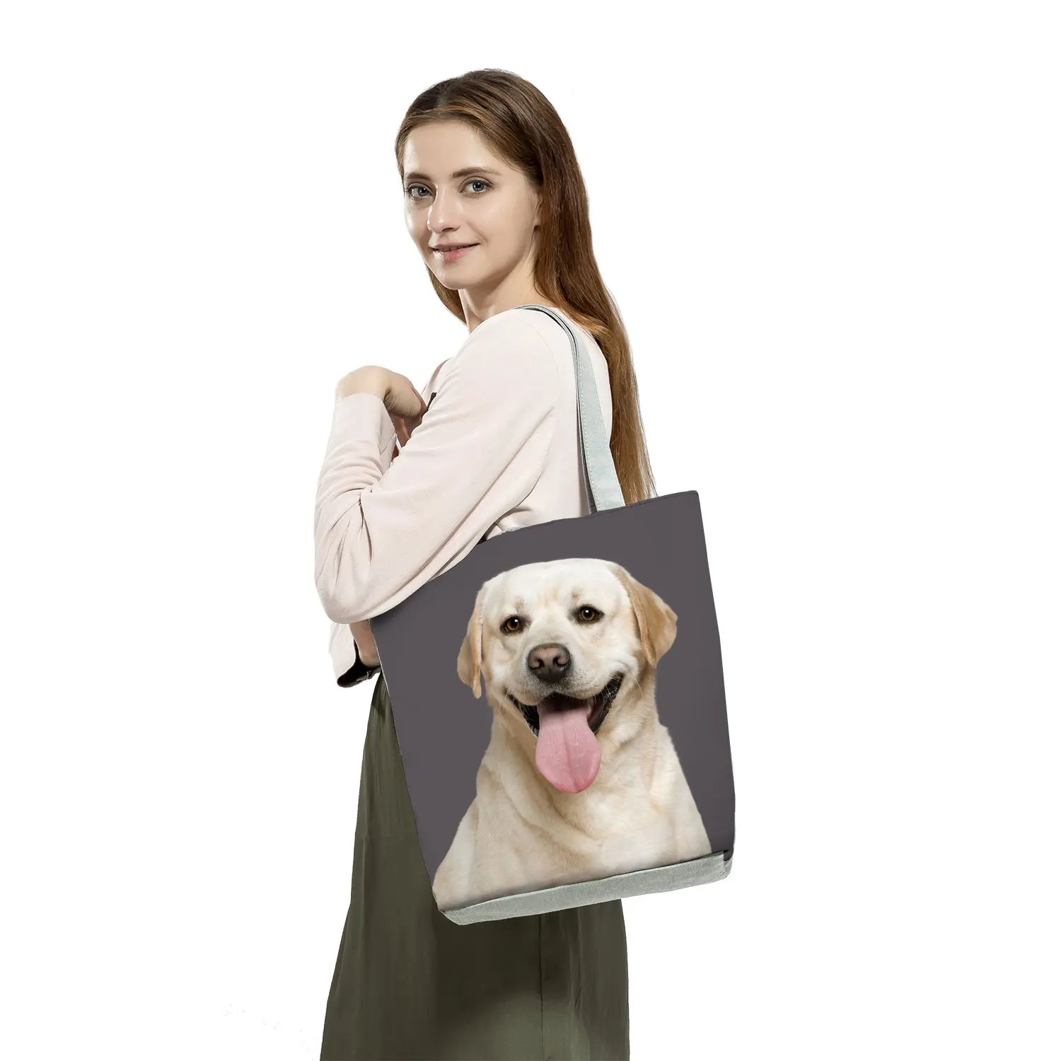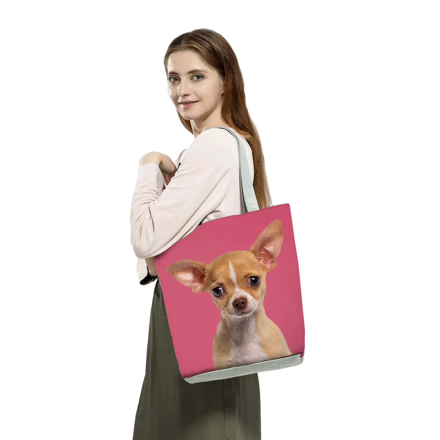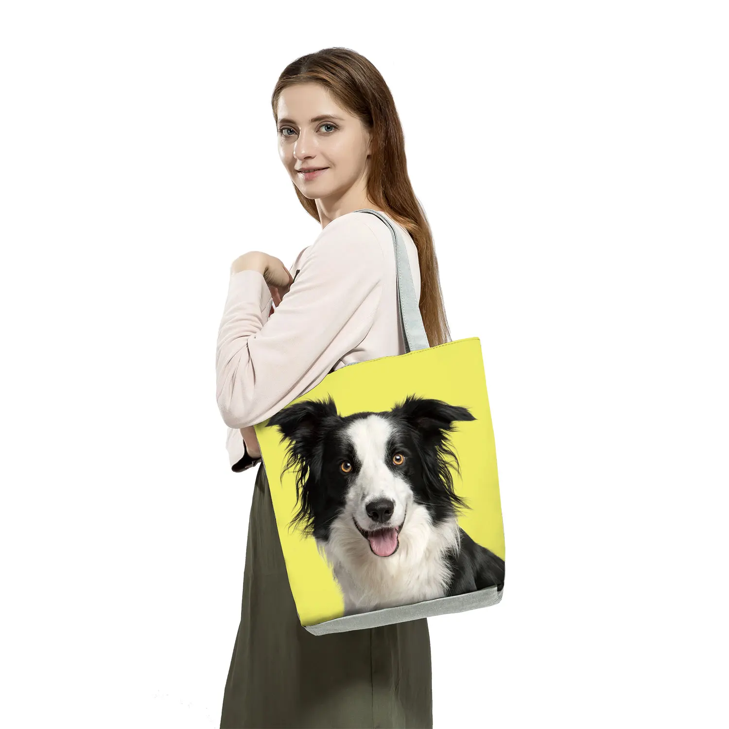 Animal Cats Dog Printed Handbags Eco Reusable Foldable Storage Practical Shopping Bag Cute Fashion Shoulder Bag Outdoor Tote Bag