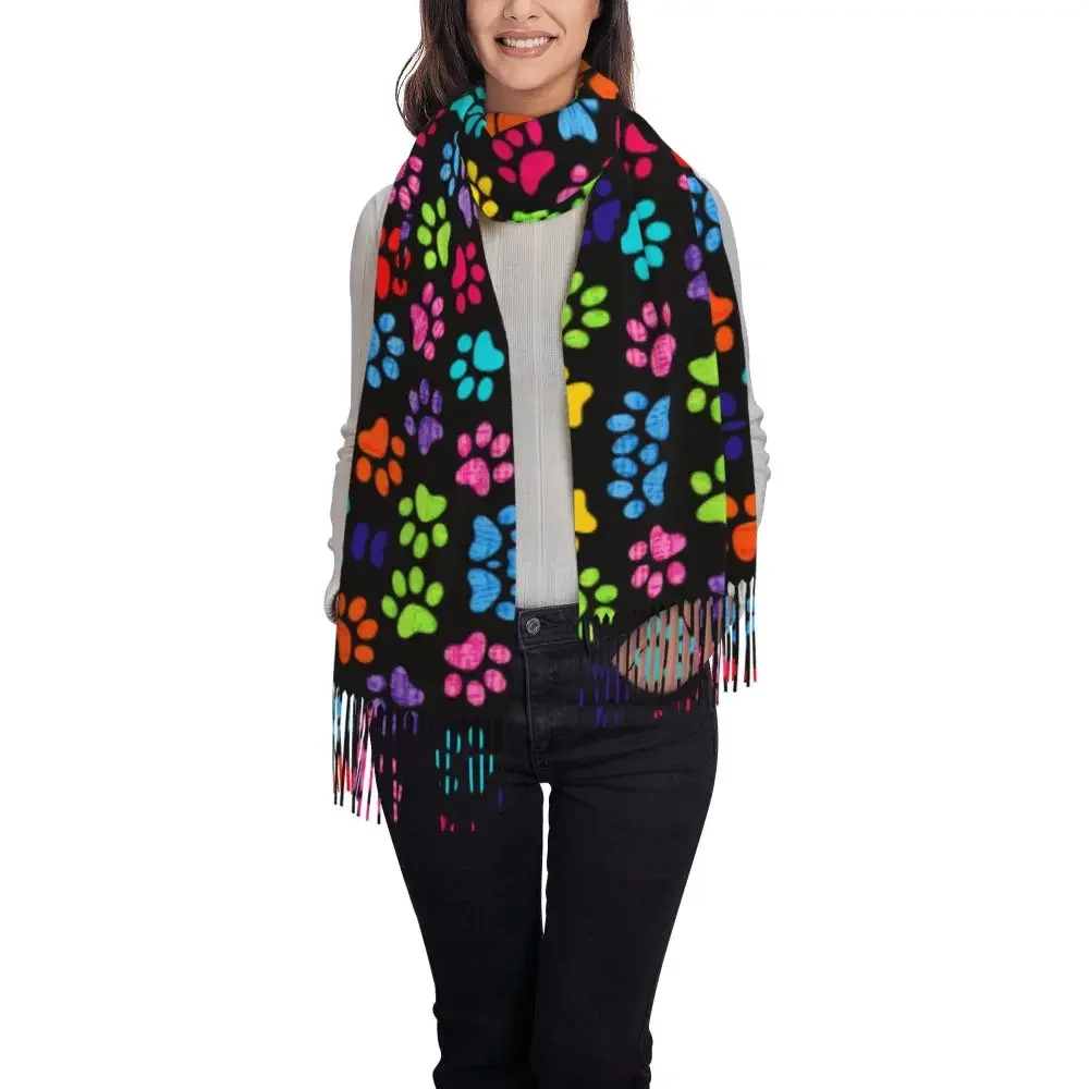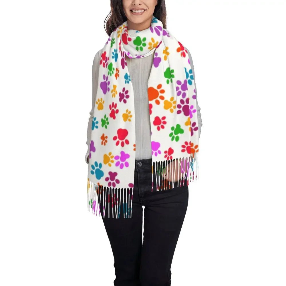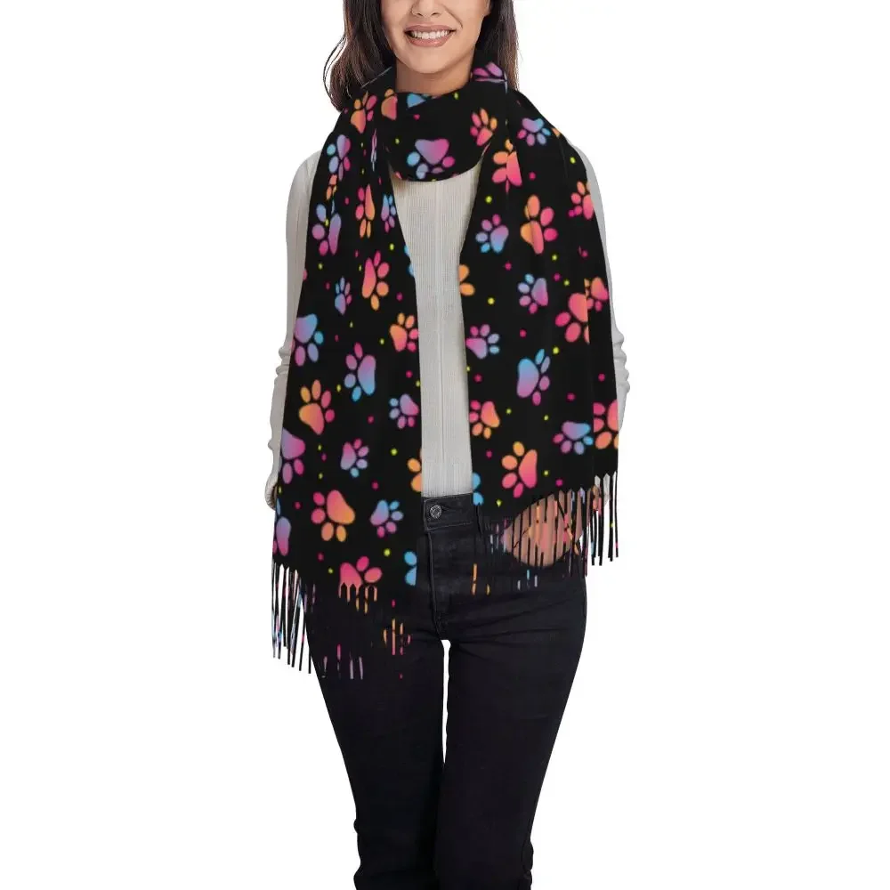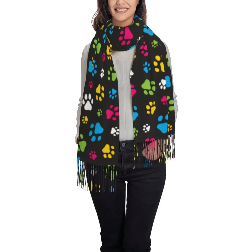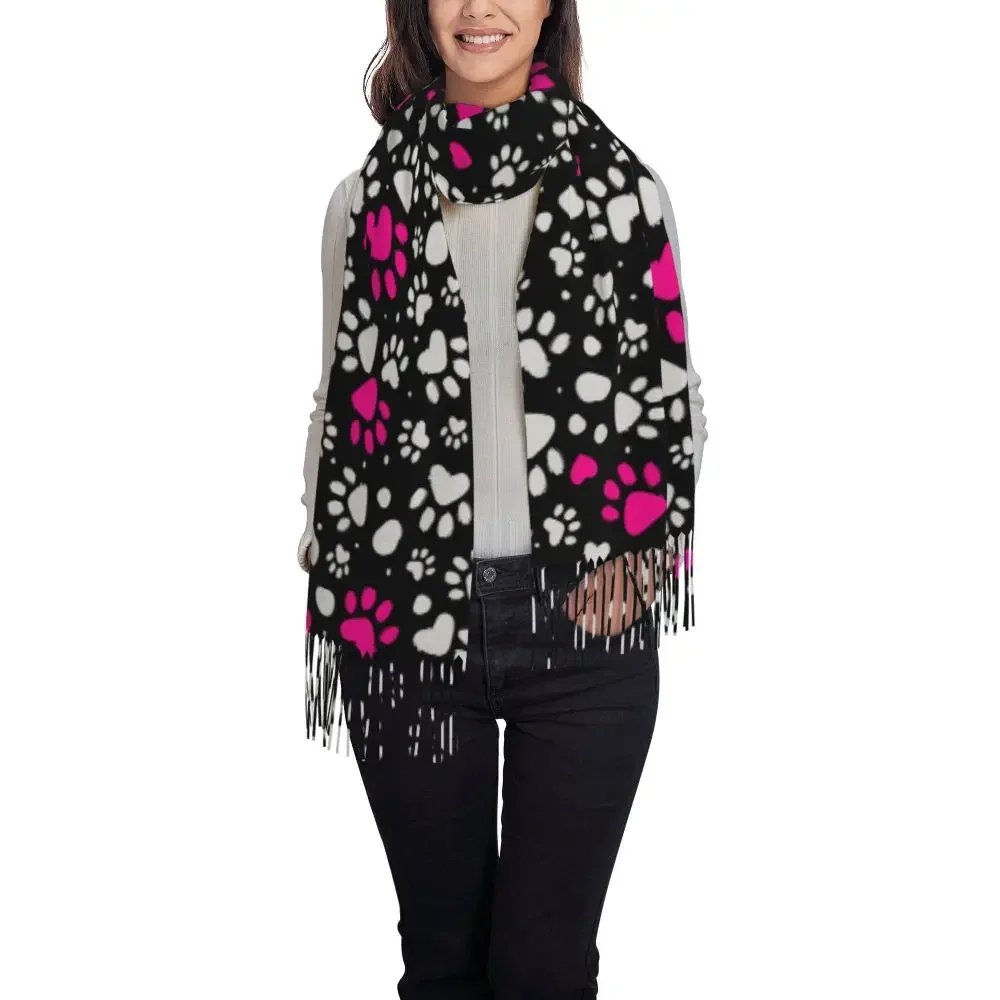 Custom Printed Animal Footprint Dog Paw Prints Scarf Women Men Winter Fall Warm Scarves Shawls Wraps