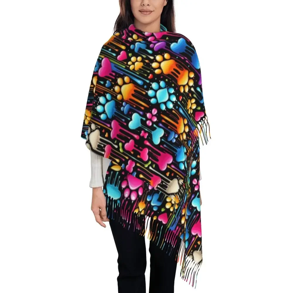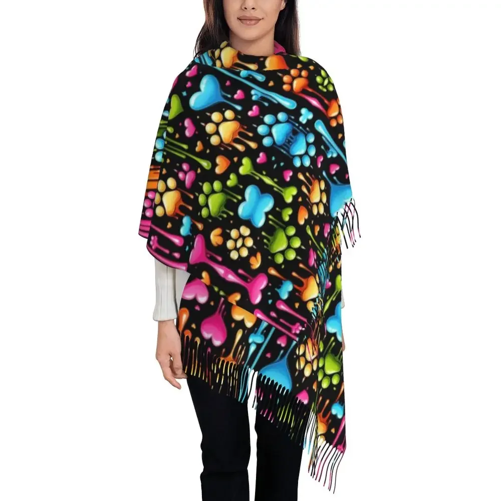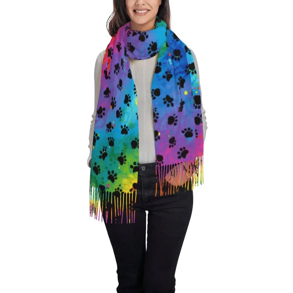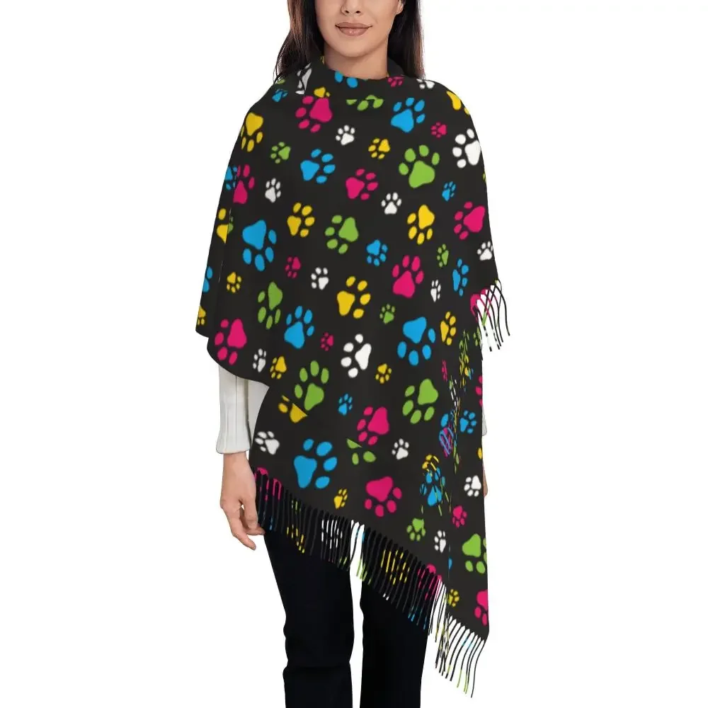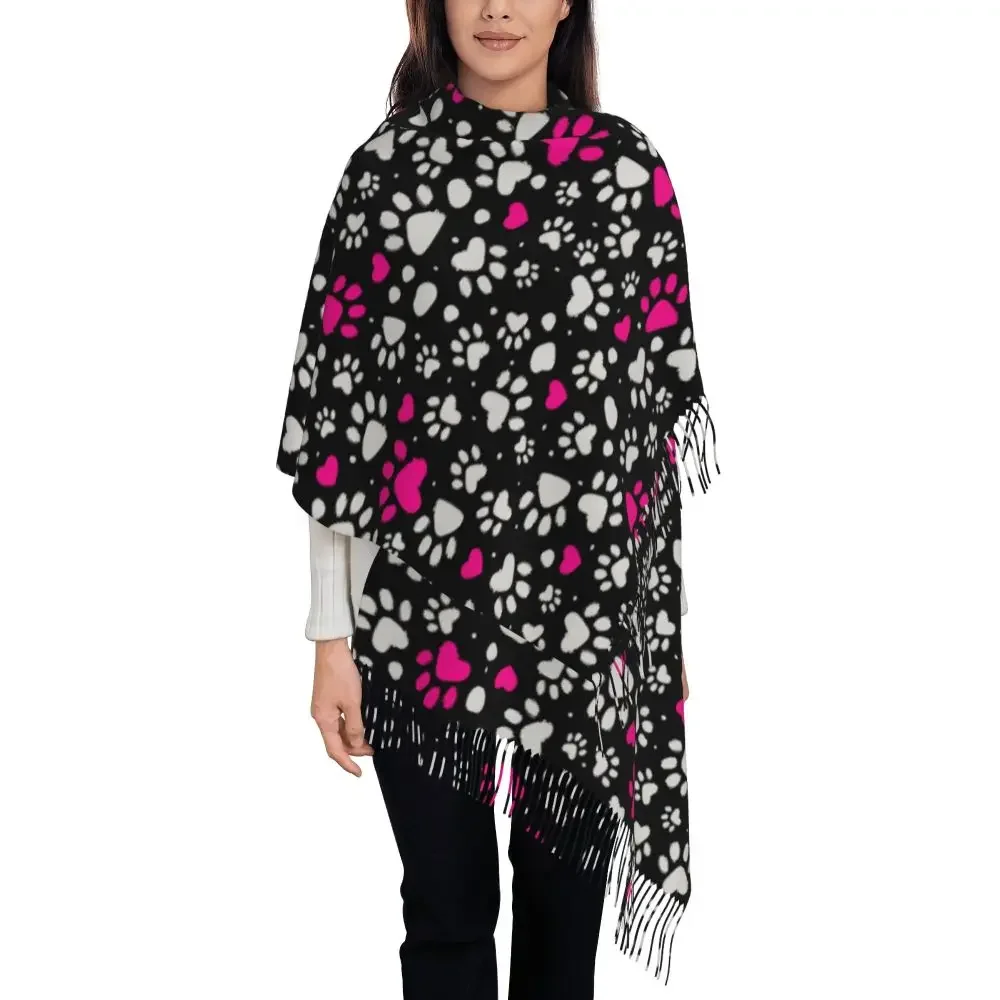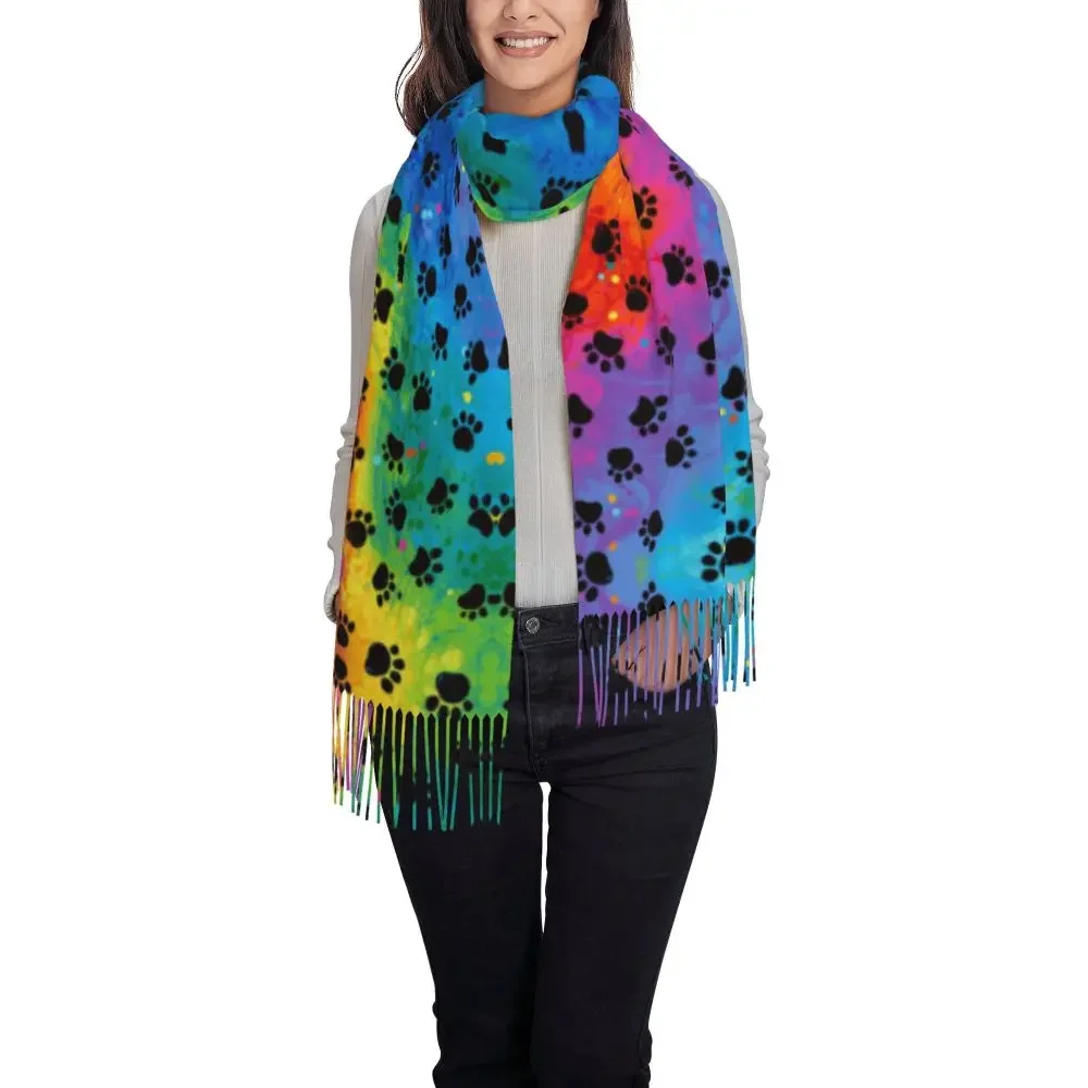 Custom Printed Animal Footprint Dog Paw Prints Scarf Women Men Winter Fall Warm Scarves Shawls Wraps
