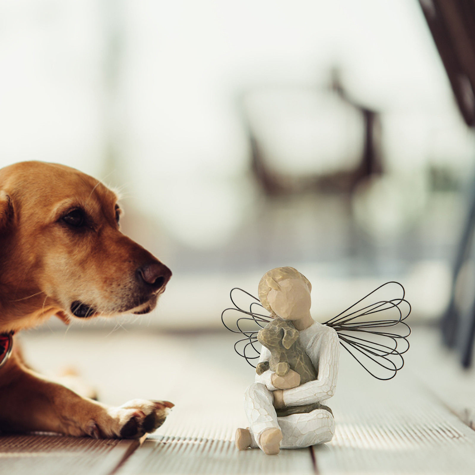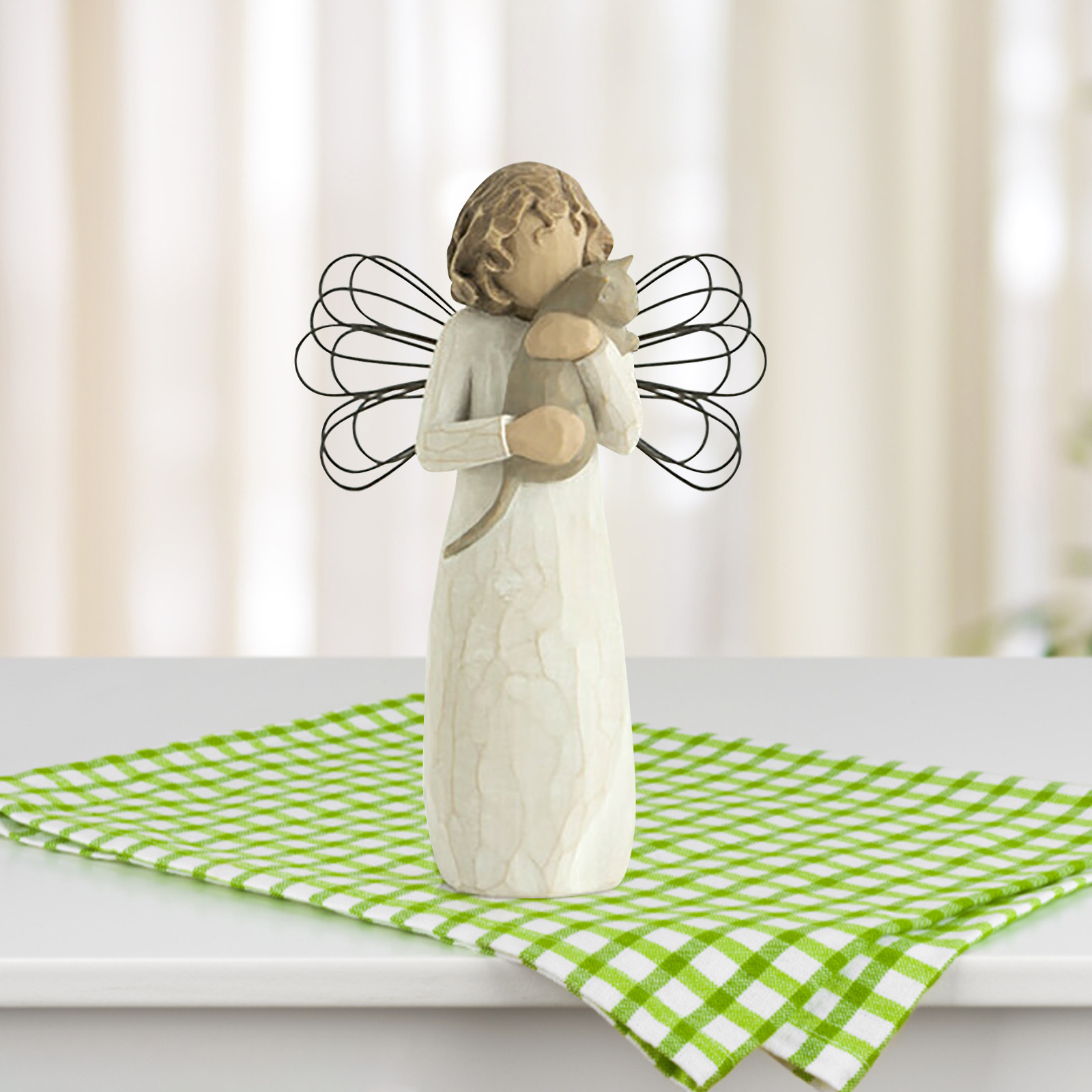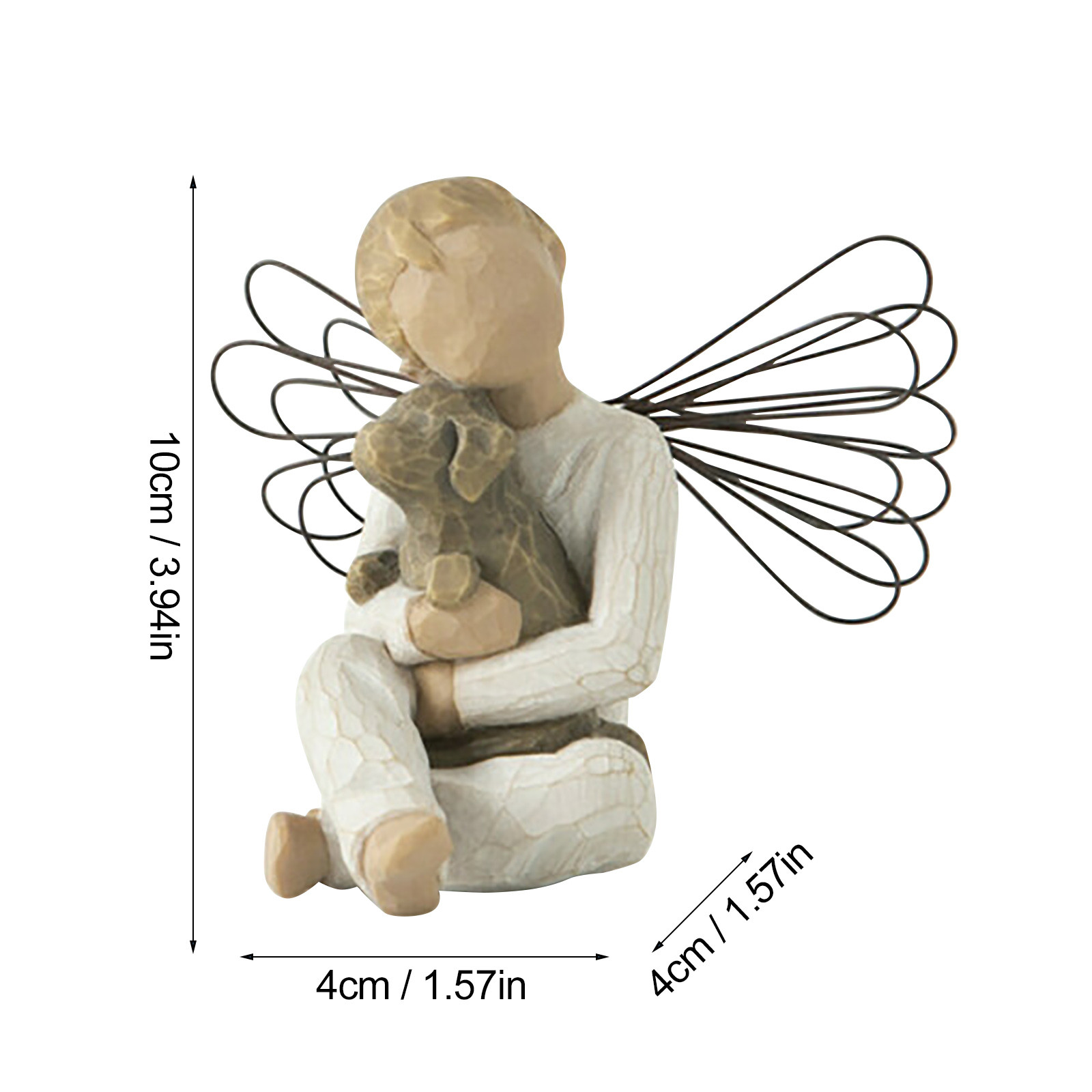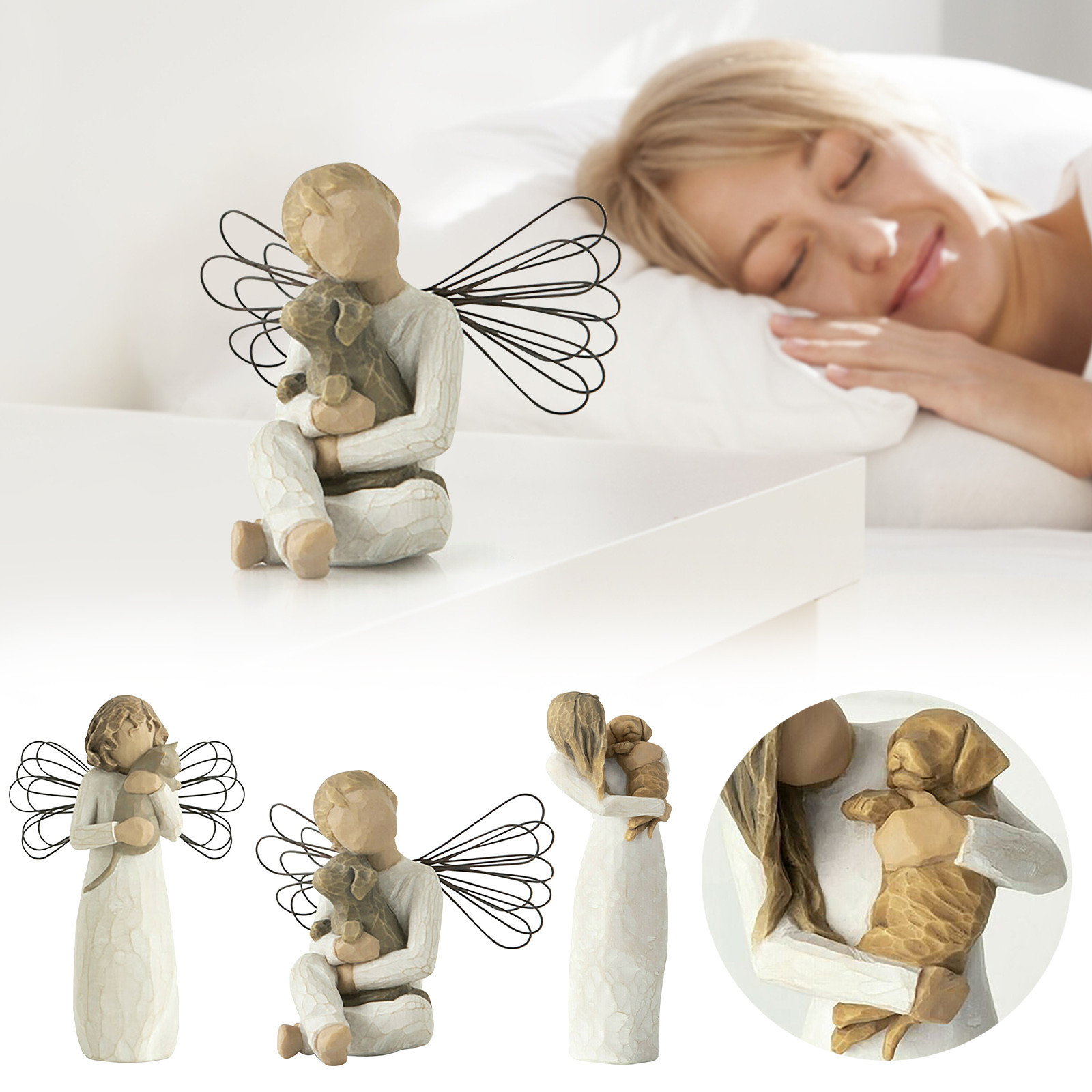 Animal Protector Angel Resin Figurine Embraces My Happiness Hand Carving Pets Arts Sculpture Statues Decoration