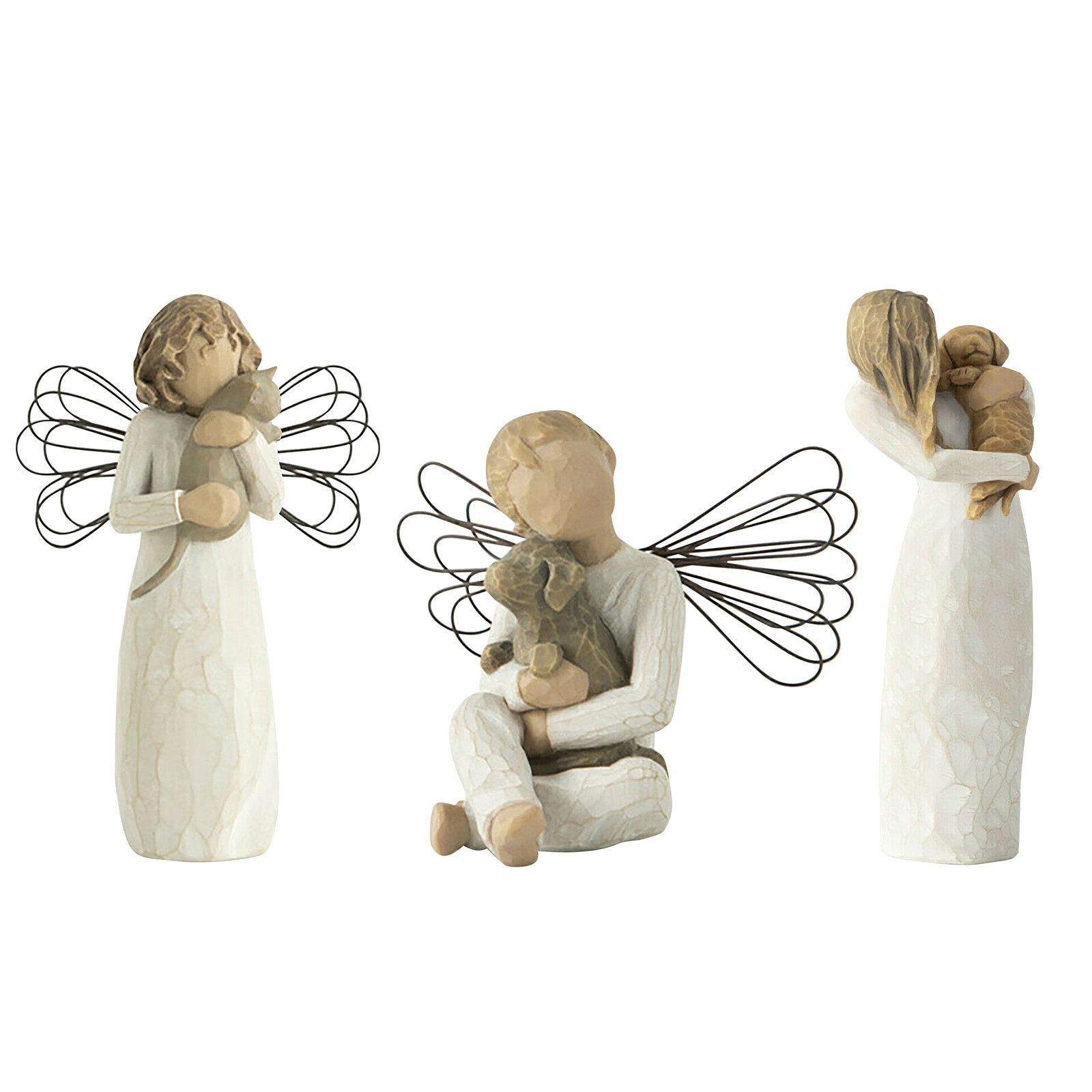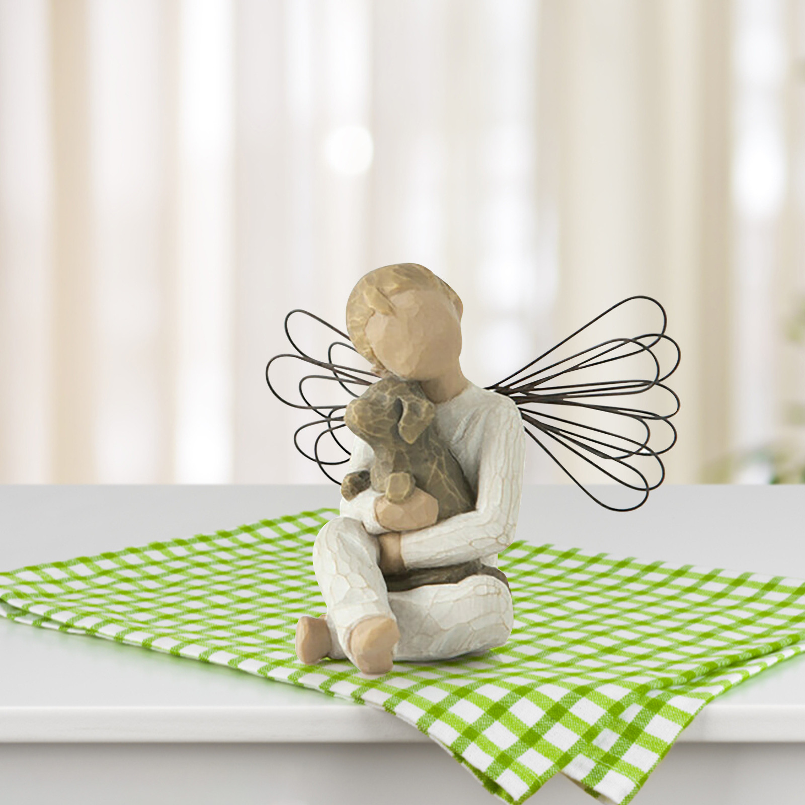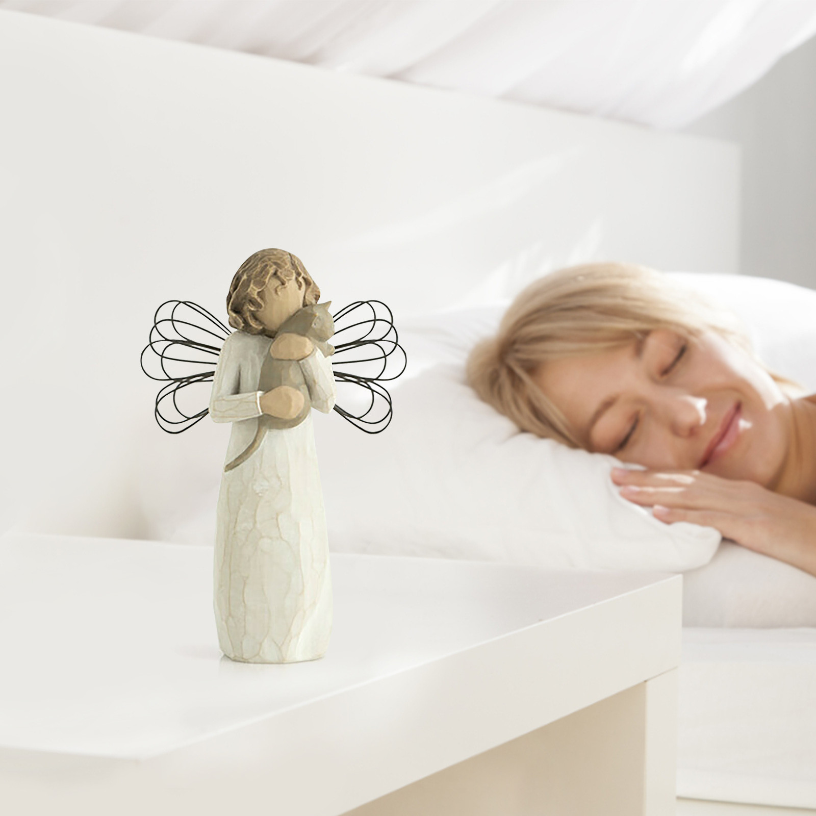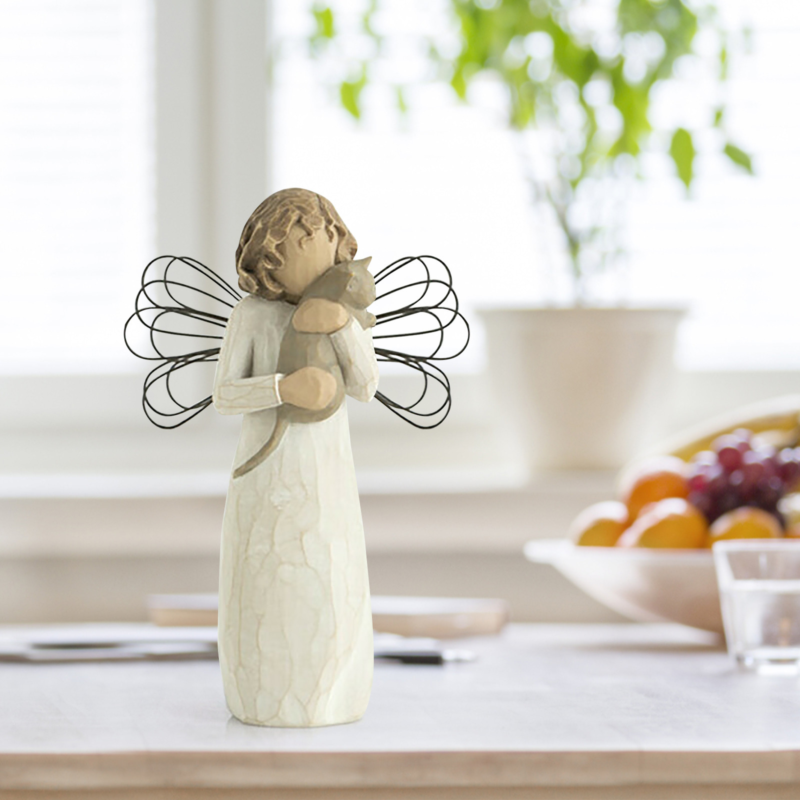 Animal Protector Angel Resin Figurine Embraces My Happiness Hand Carving Pets Arts Sculpture Statues Decoration