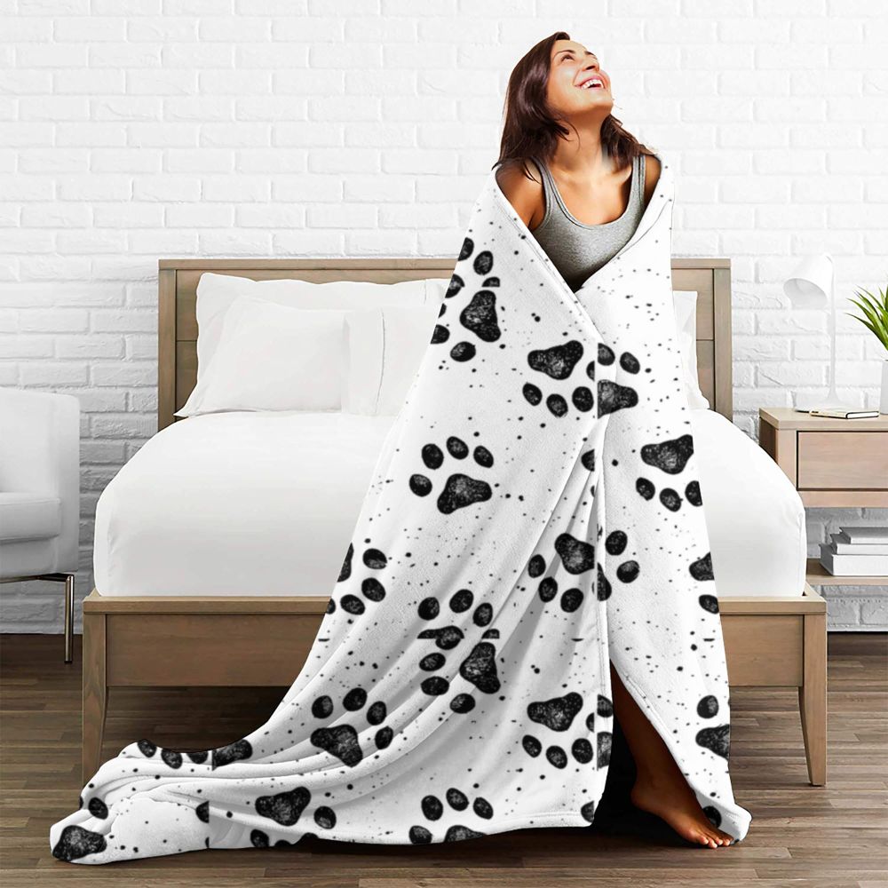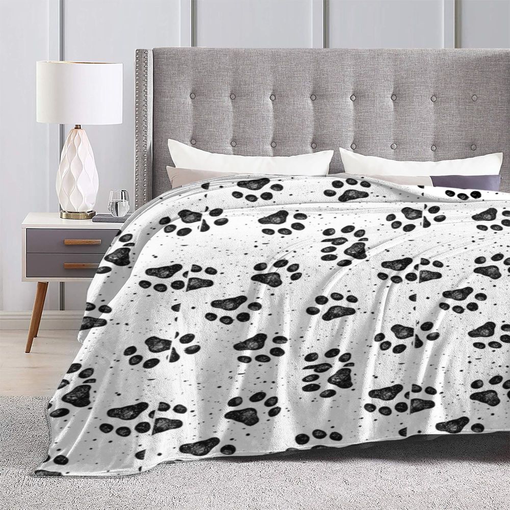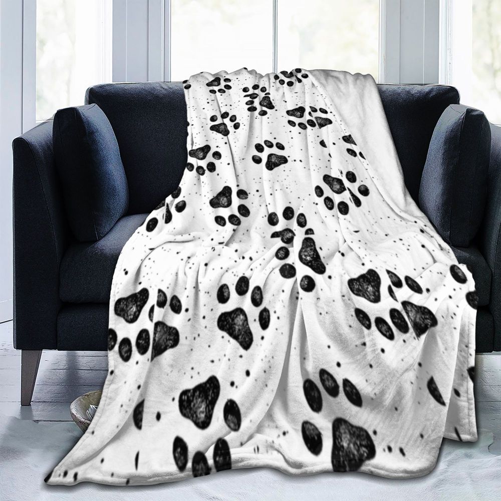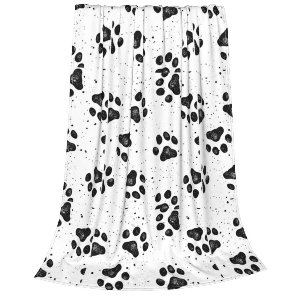 Black Dog Paw Blanket Animal Feet Travel Office Flannel Throw Blanket Soft Warm Outdoor