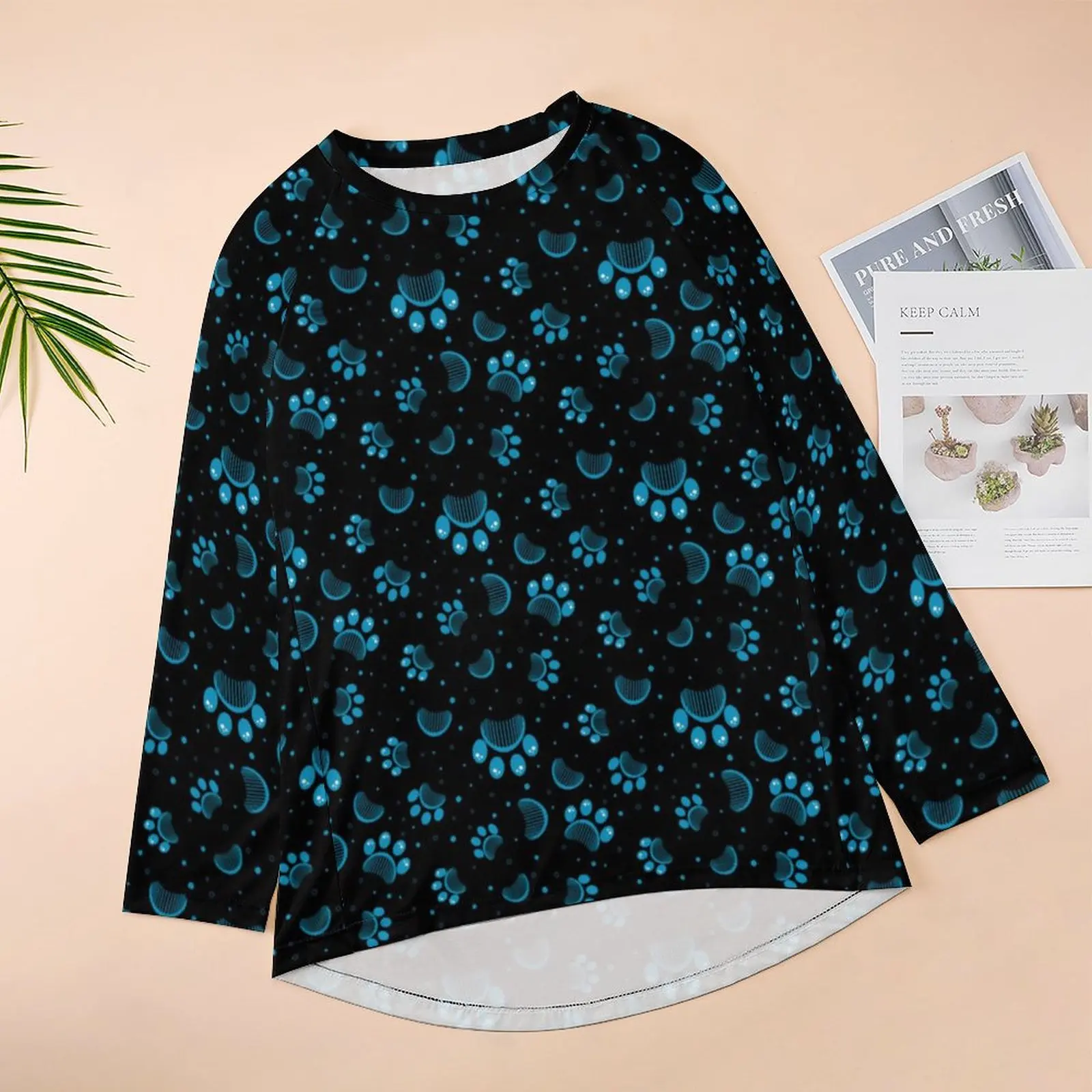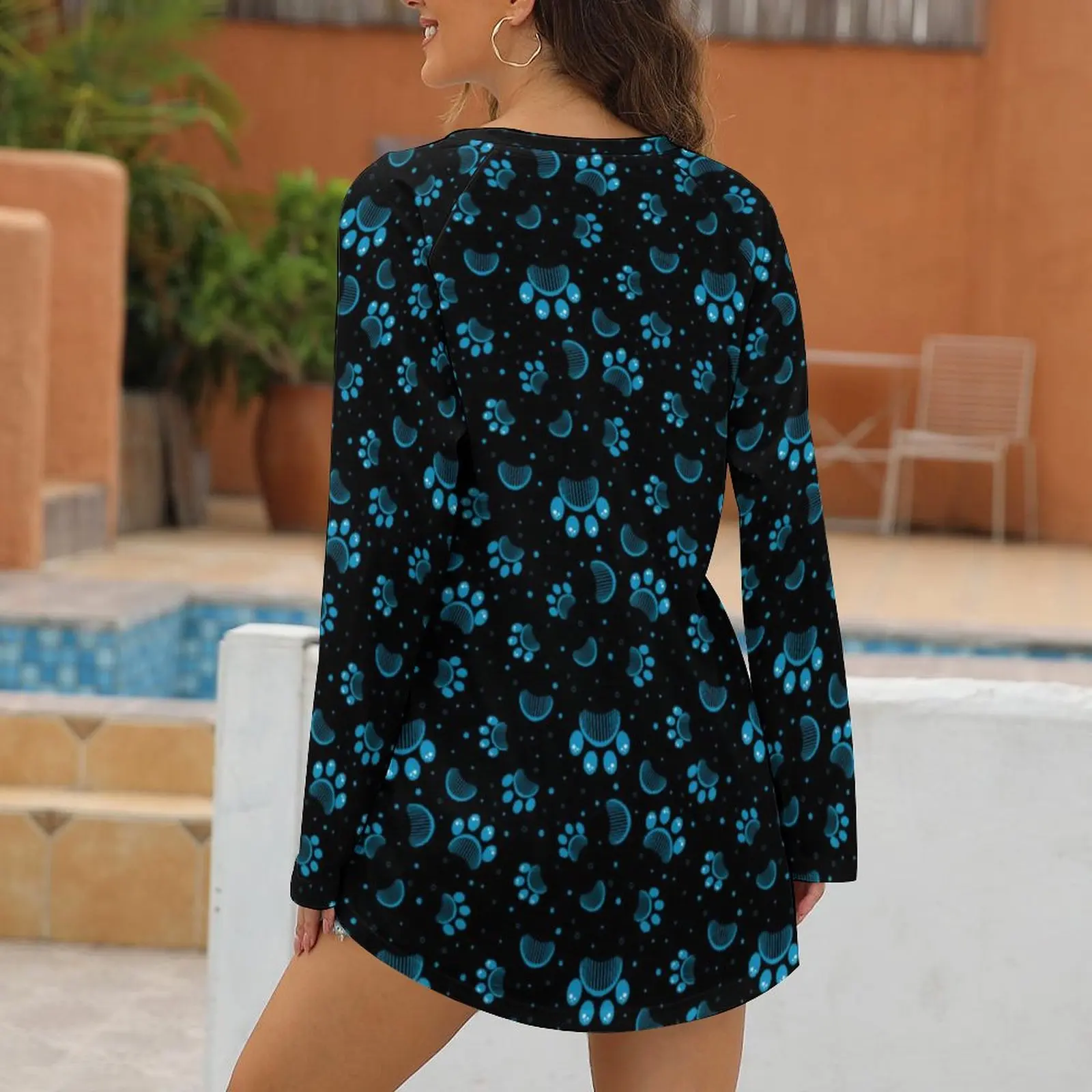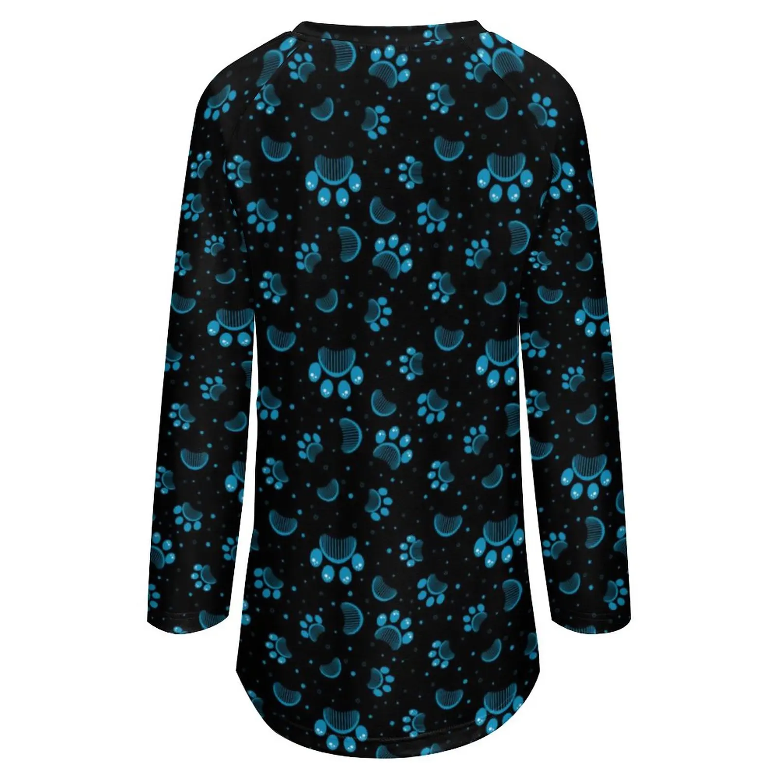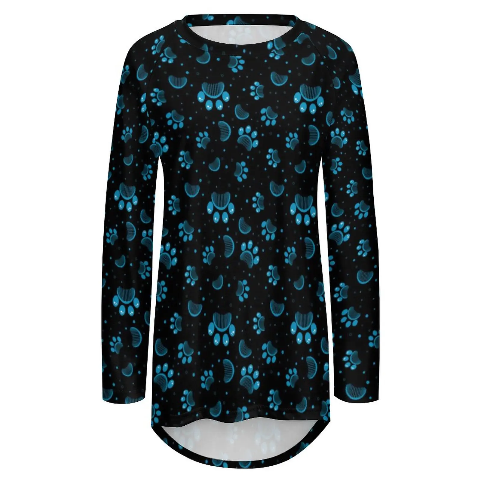 Blue Dog Paws T-Shirt Animal Print Trendy Long-Sleeve T Shirts Womens Street Fashion