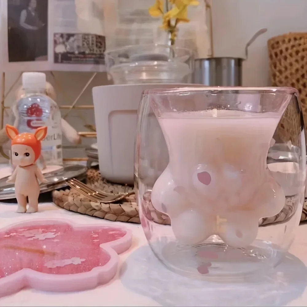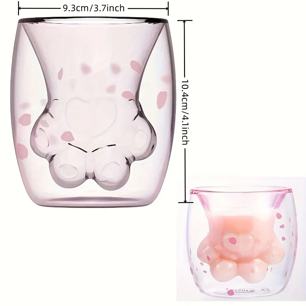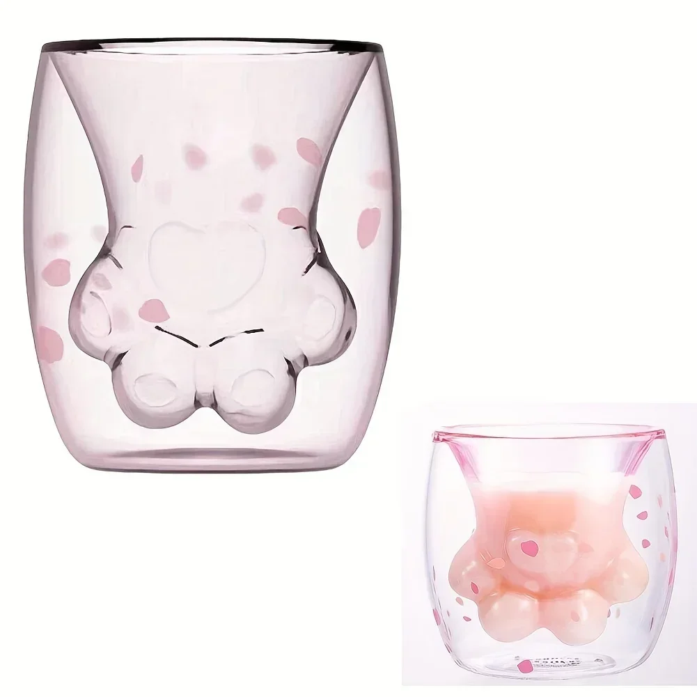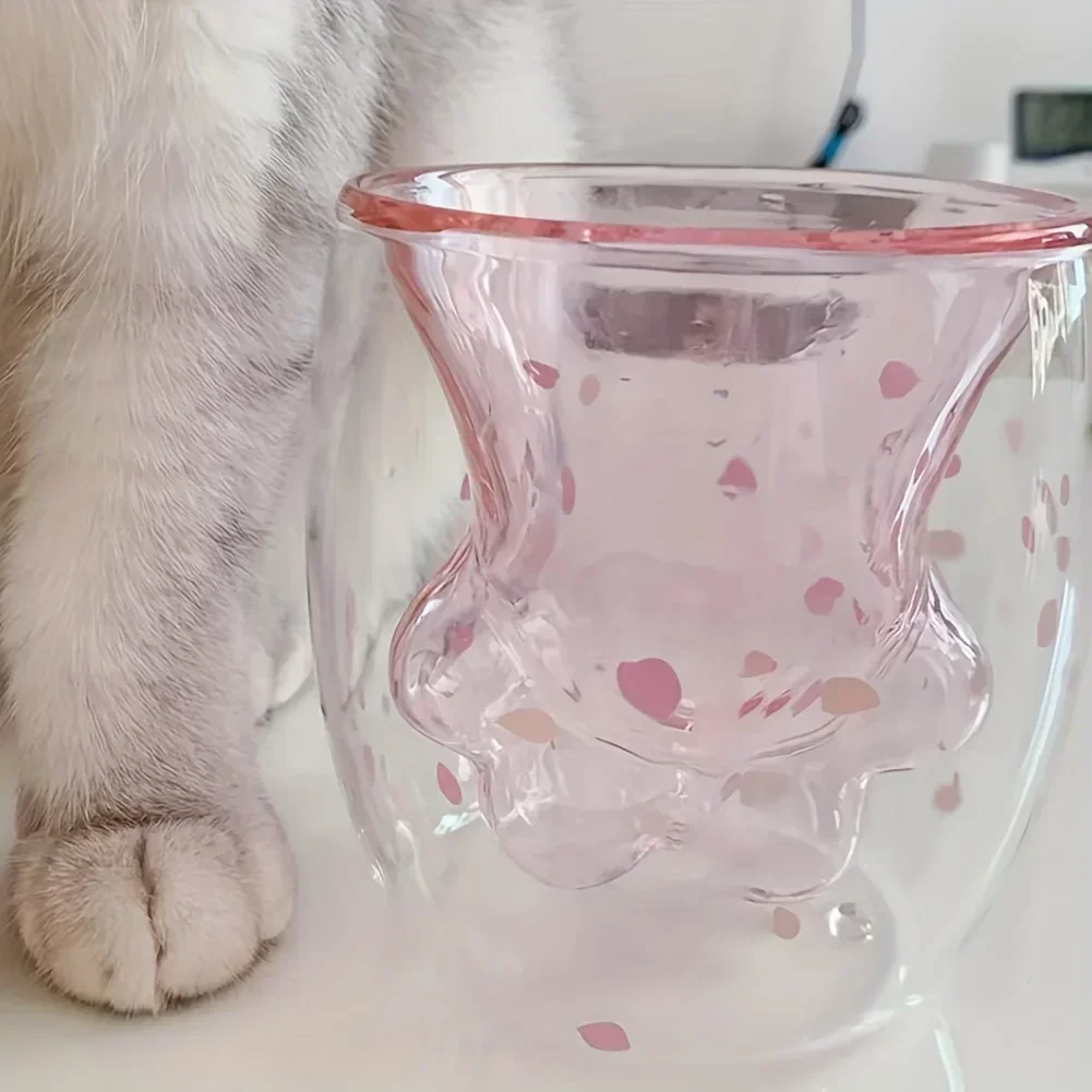 Cat Paw Glass Cup Sakura Double Wall Glass Cup Cat Claw Espresso Coffee Mug Heat-Resistant Handmade Creative Milk Mug