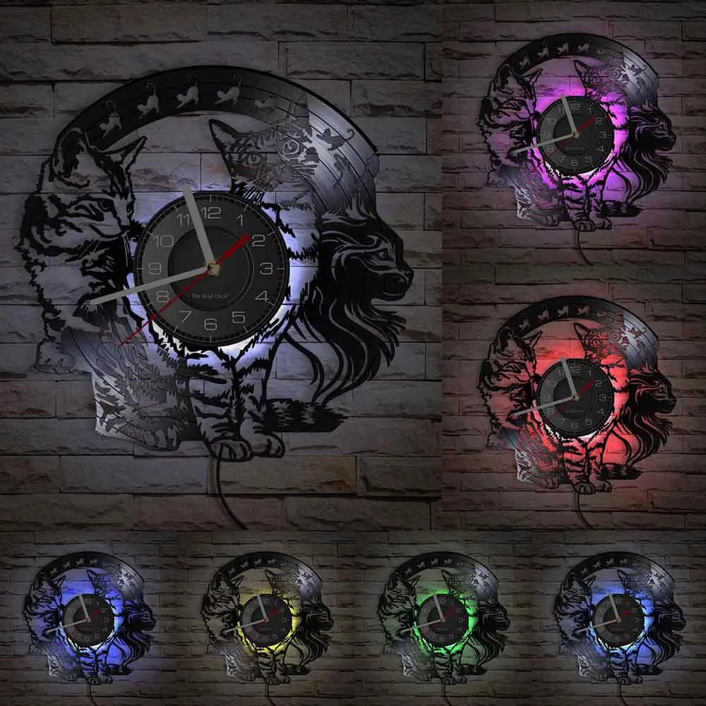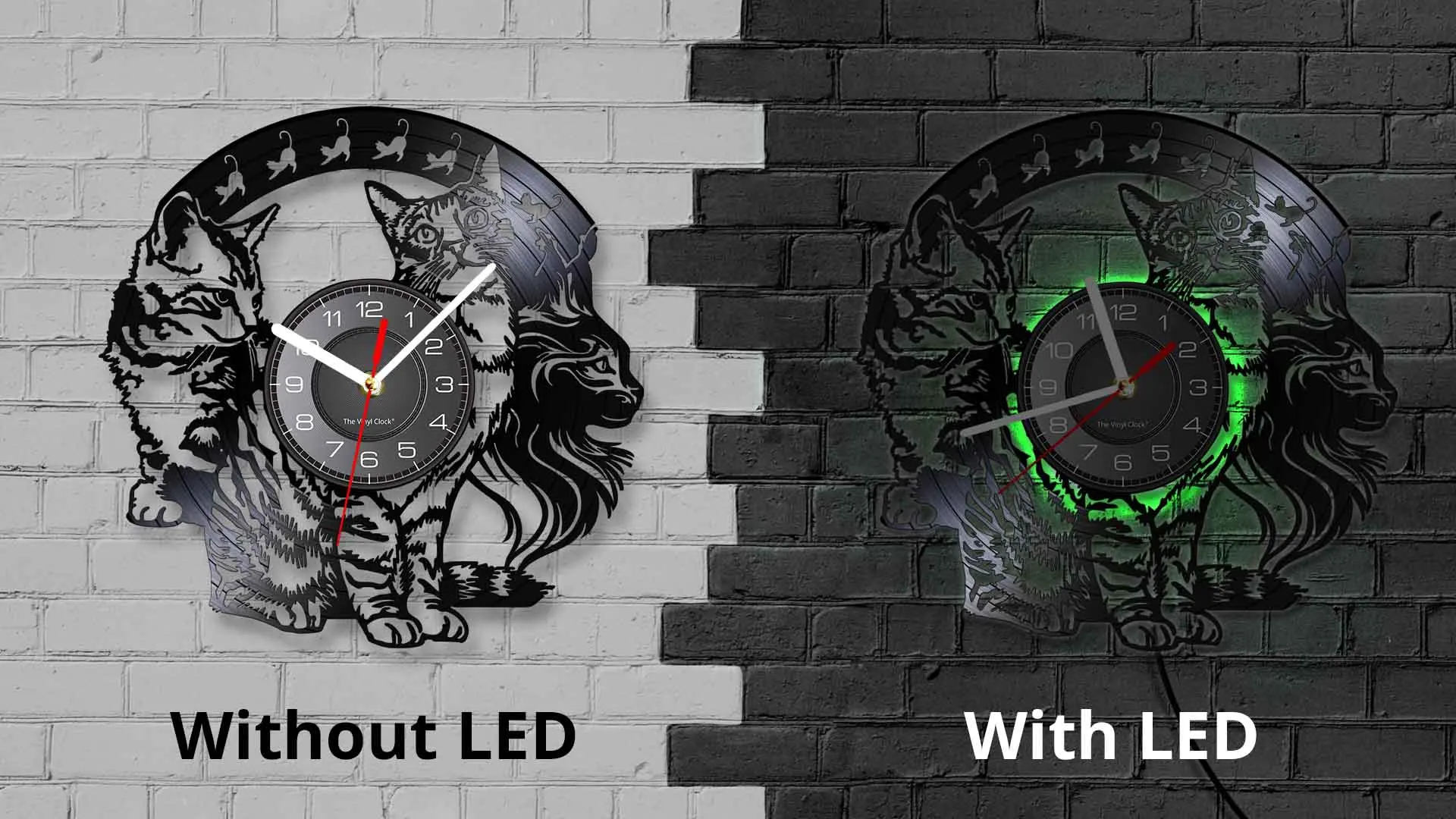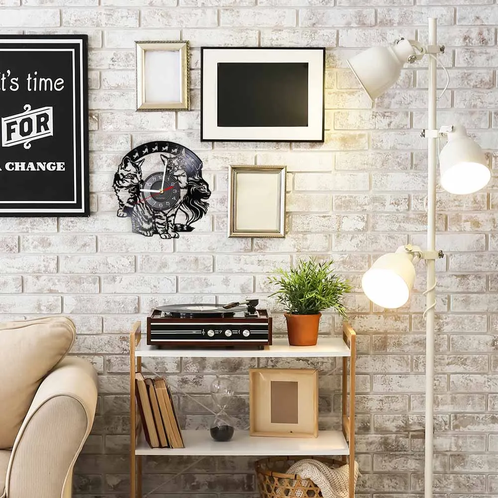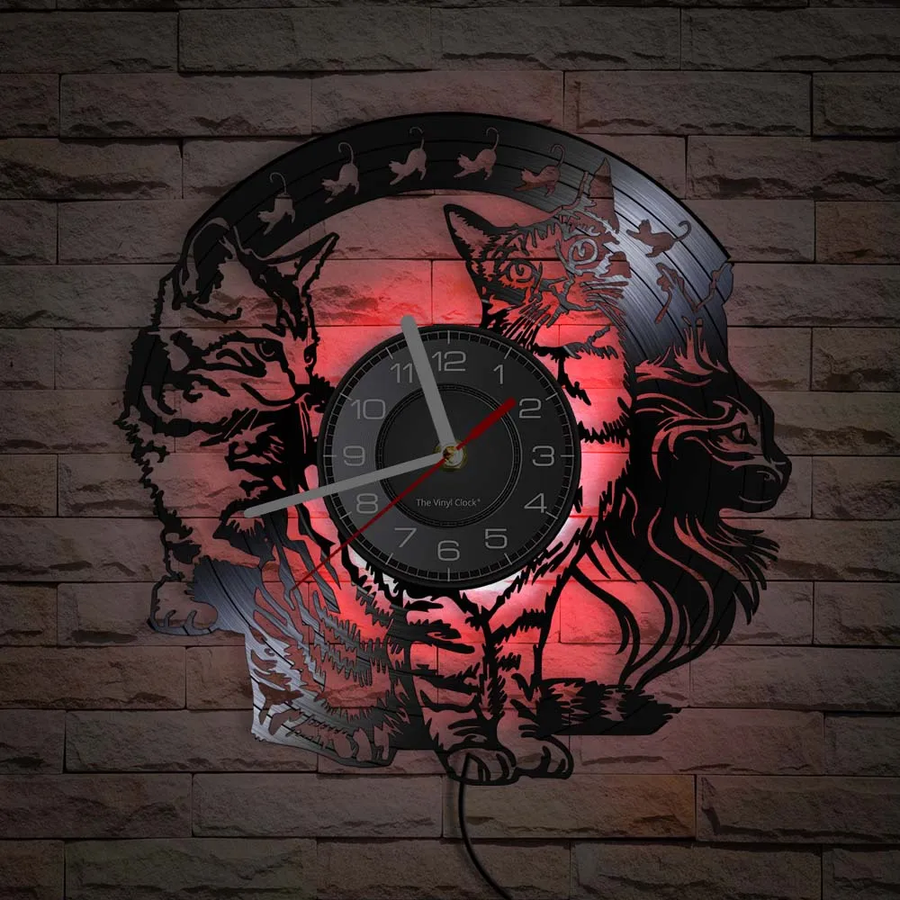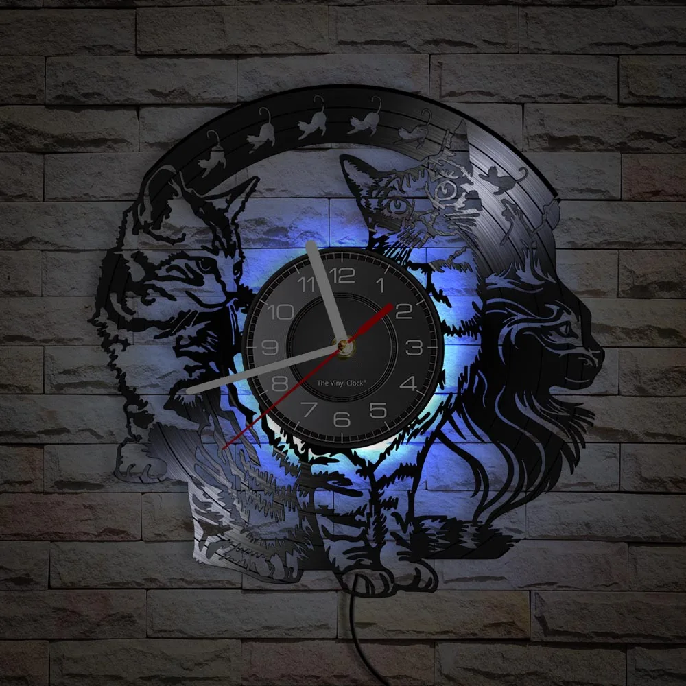 Cats Silhouette Vinyl Record Wall Clock Kitty Retro Artwork Clock Timepieces Re-purposed Vinyl Album Home Decor For Cat Lovers