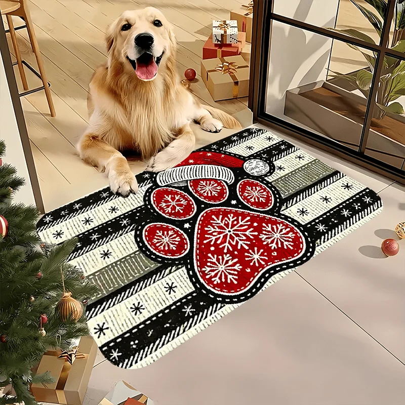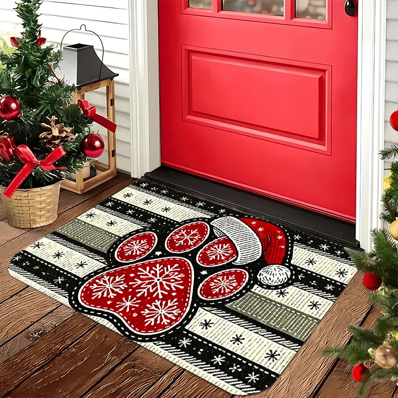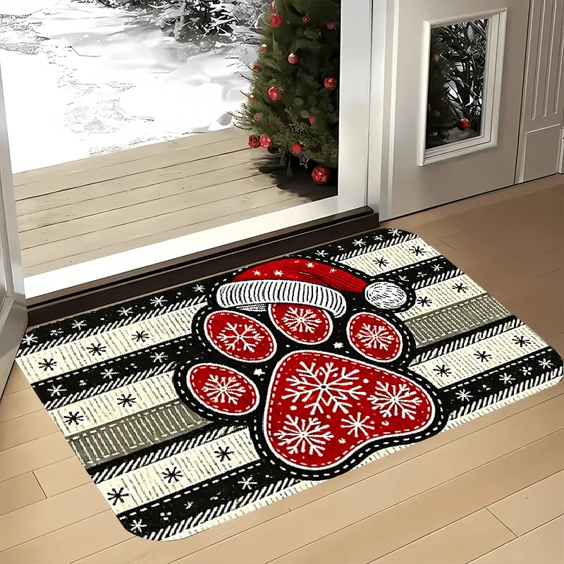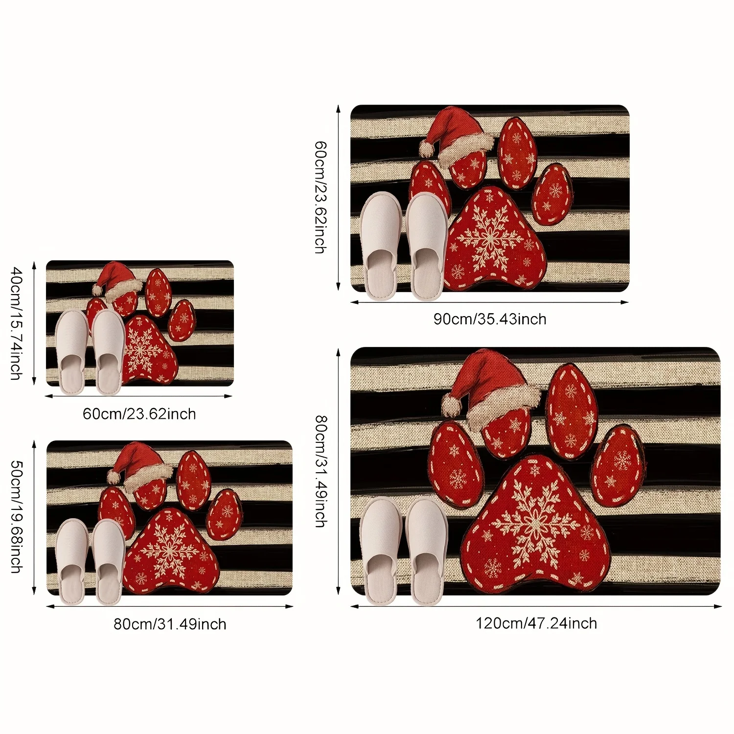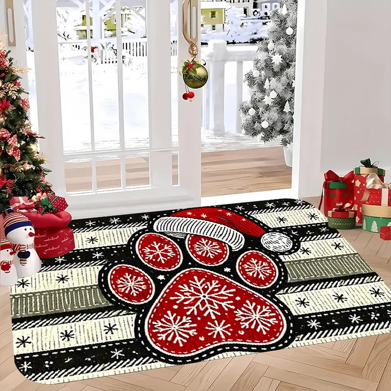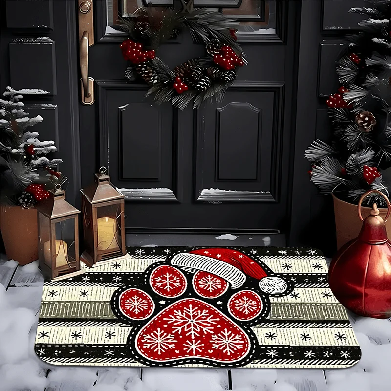 Christmas Carpet Puppy Paw Print Doormat Festive Welcome Mat Warm Living Room Carpet Winter Bedroom Rug Soft Home Dec