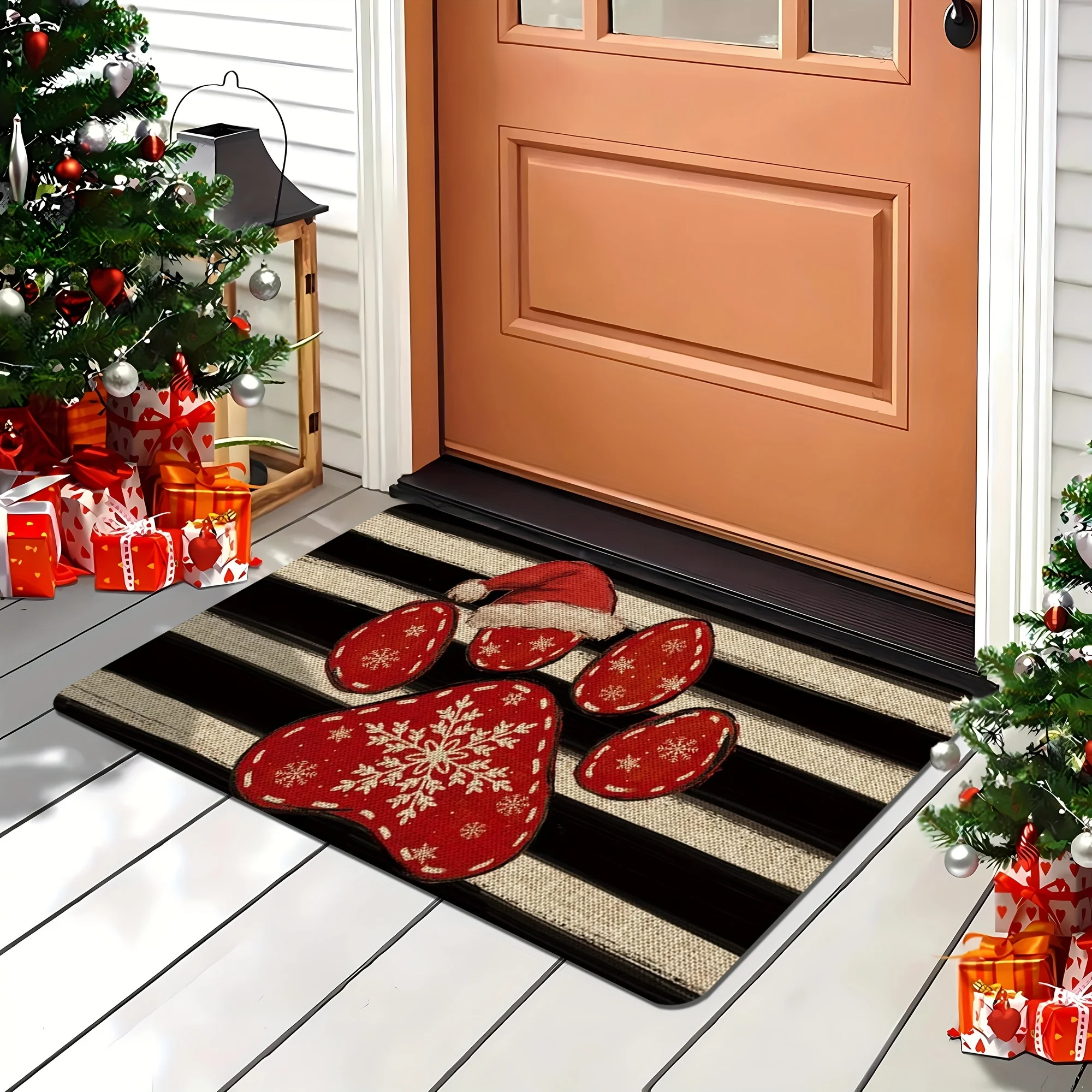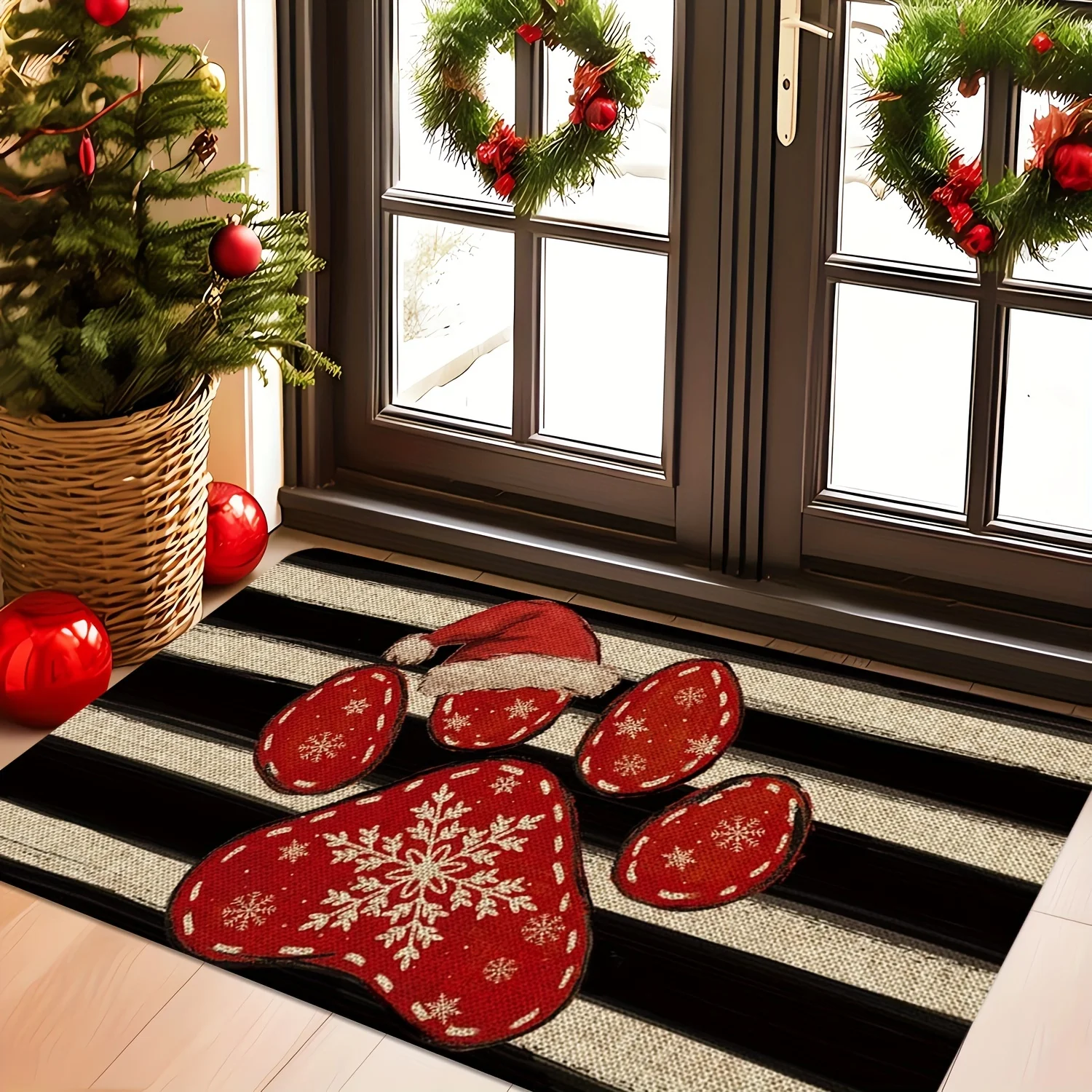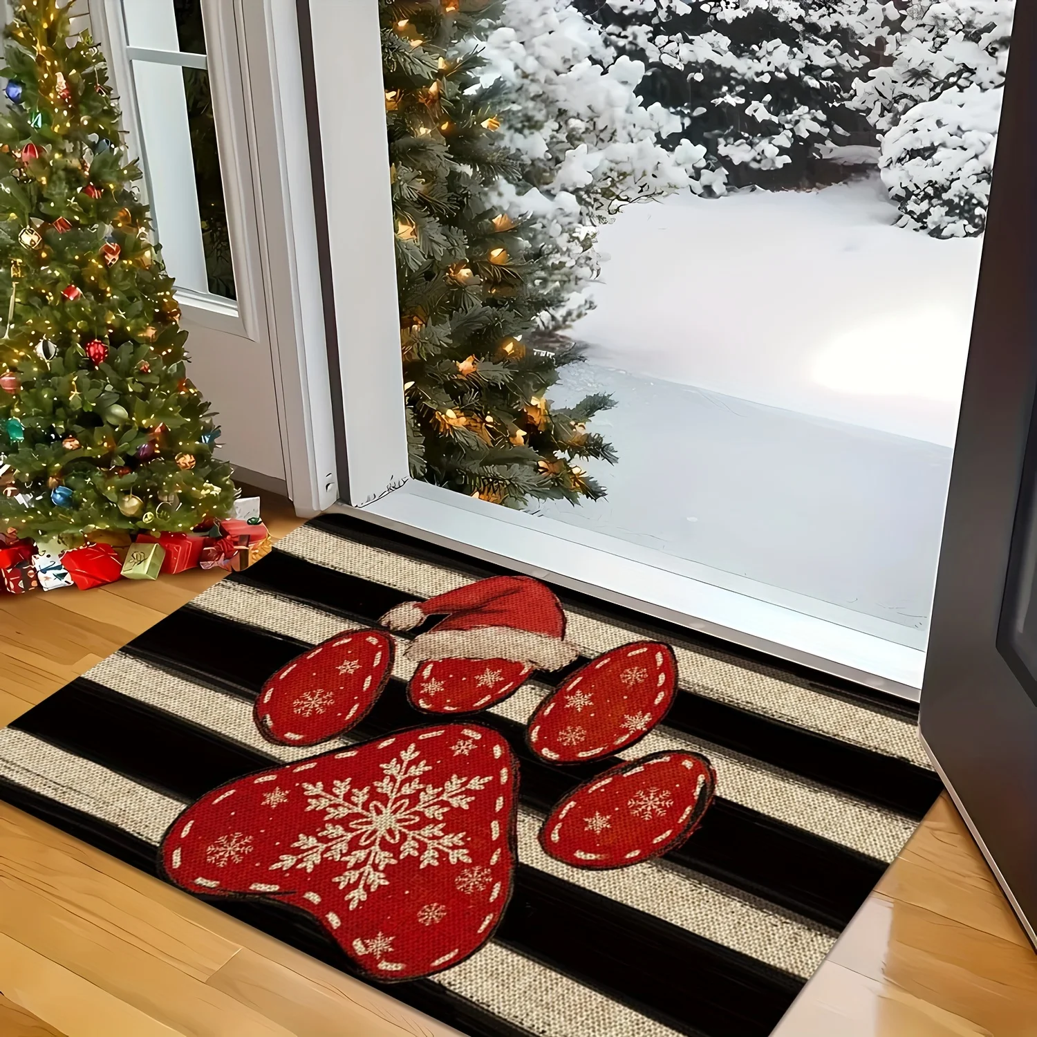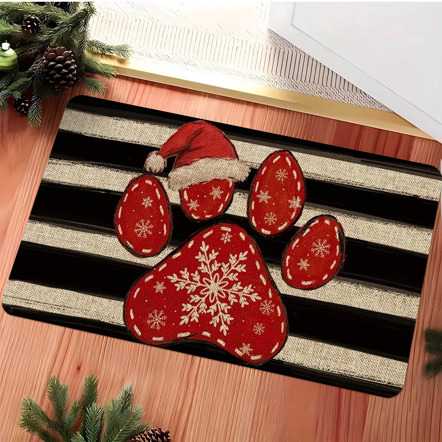 Christmas Carpet Puppy Paw Print Doormat Festive Welcome Mat Warm Living Room Carpet Winter Bedroom Rug Soft Home Dec