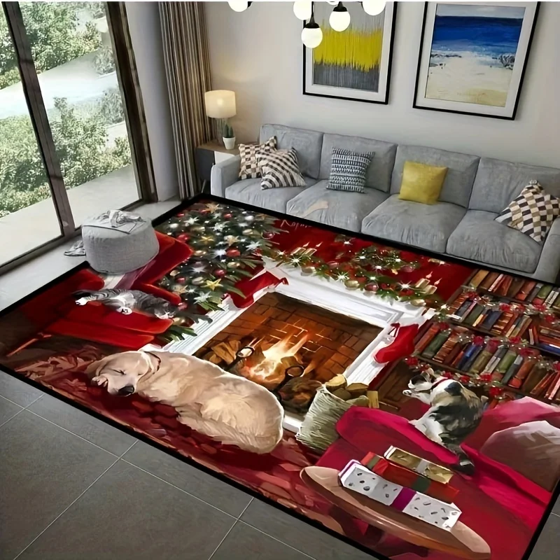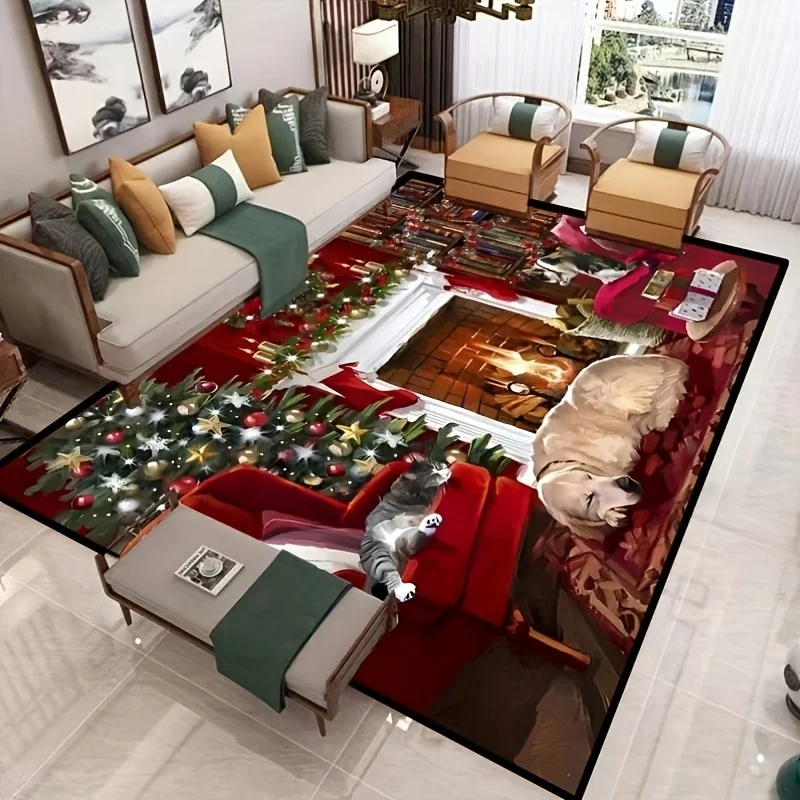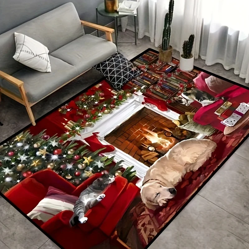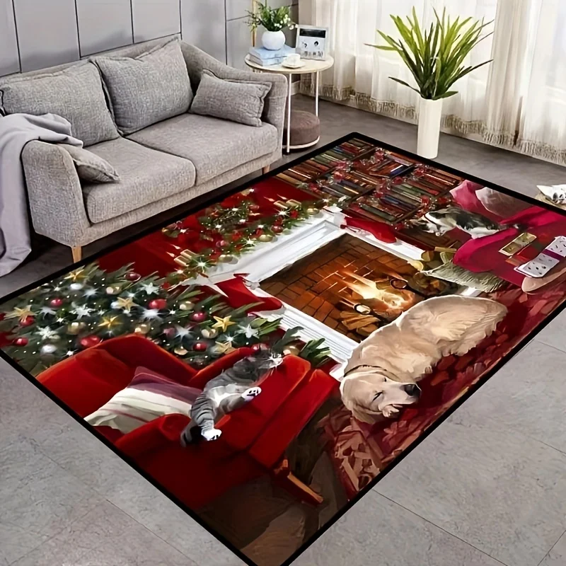 VIKAMA Christmas-Themed Rug For Living Room, Home Decor, Vacation Home,Christmas Decorations-Non-Slip, Soft, Machine-Washable