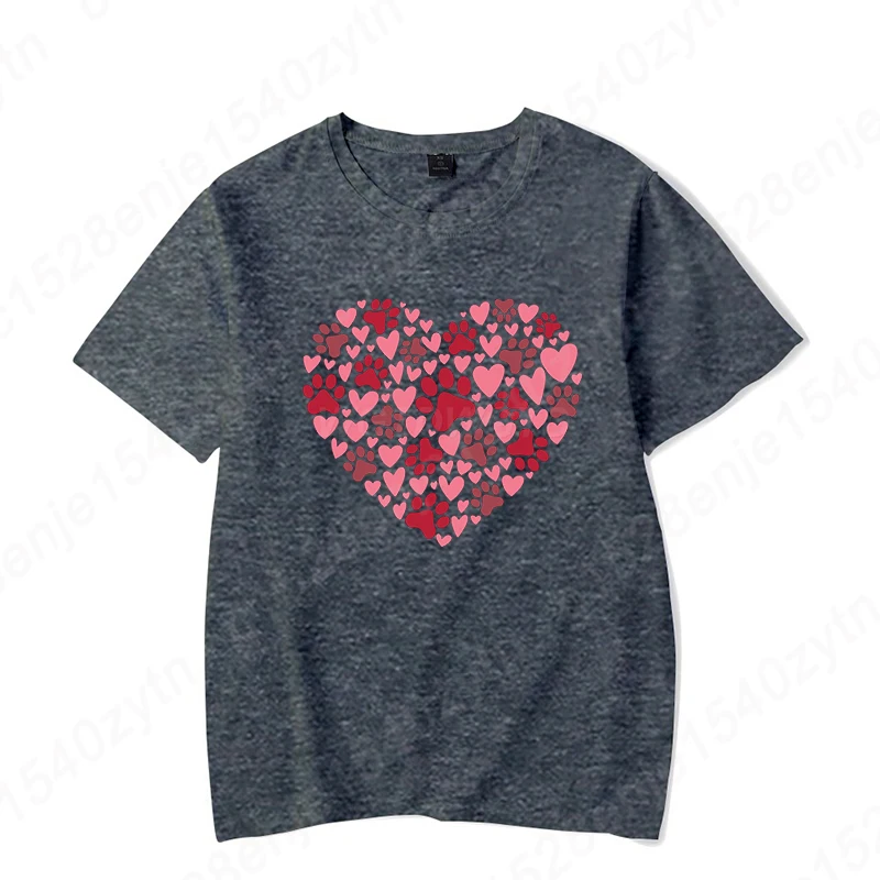 Cool Valentine's Day Dog Paw Heart Print T-shirt For Women Summer Fashion Casual T Shirt Short Sleeve Creative Tops