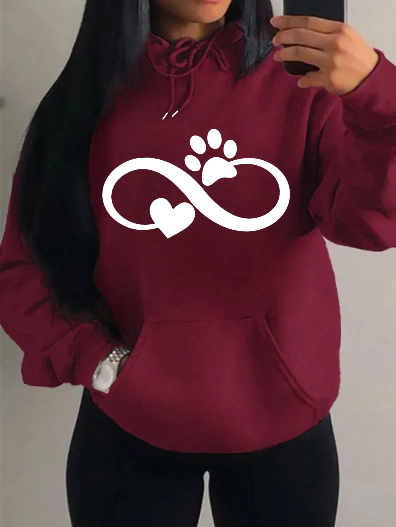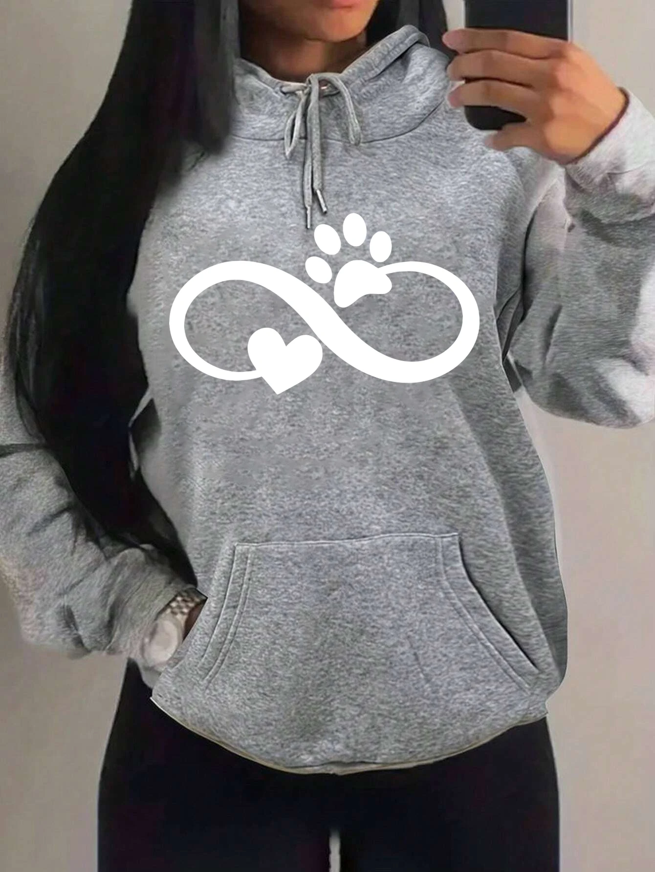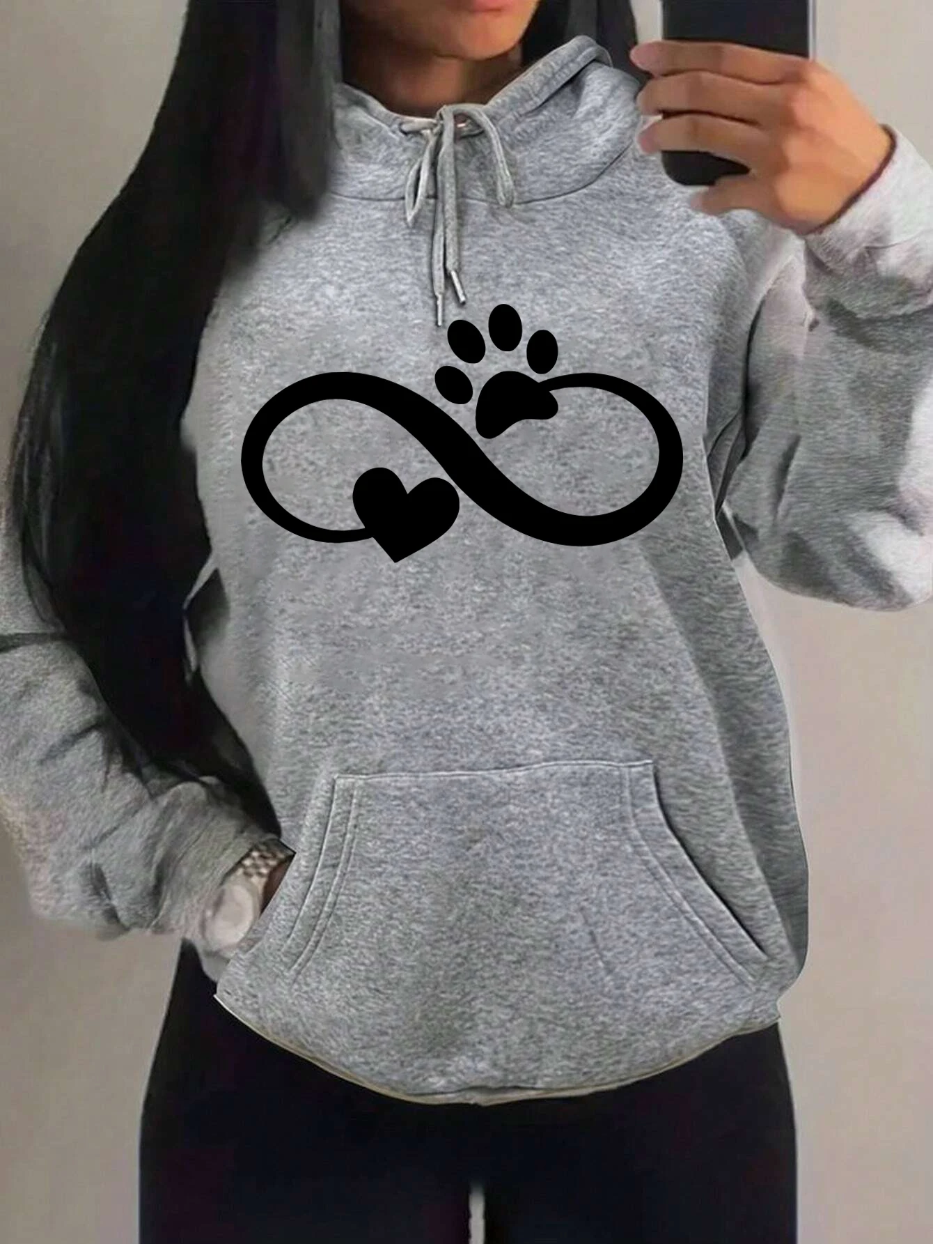 Creative Cat Palm And Love Creative Design Heart Pattern Hoodies Women Fashion Casual Hoody Hip Hop Fleece Streetwear Loose