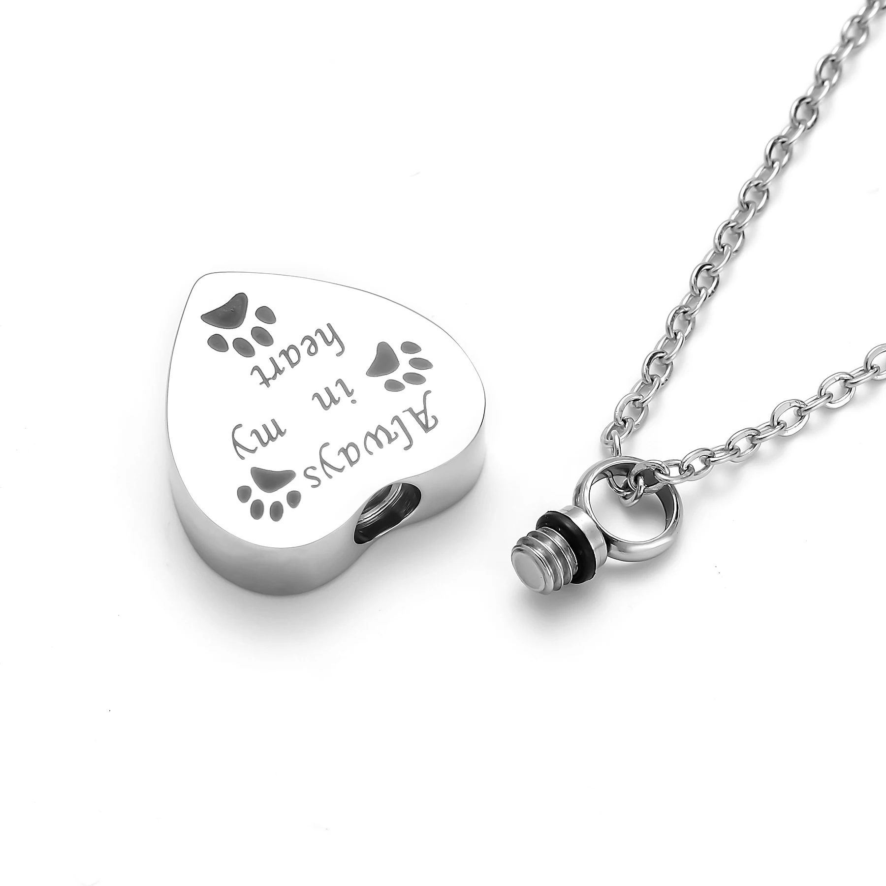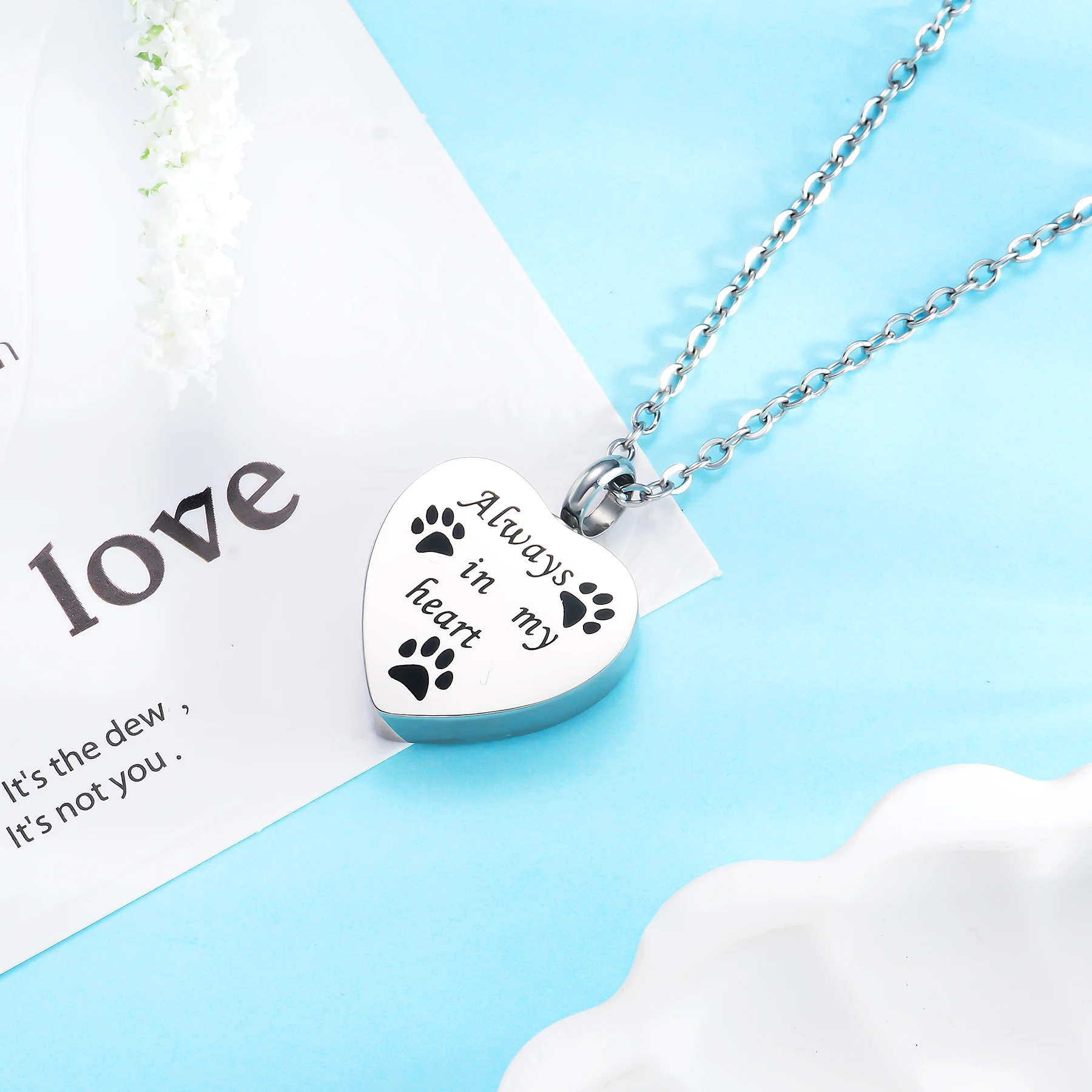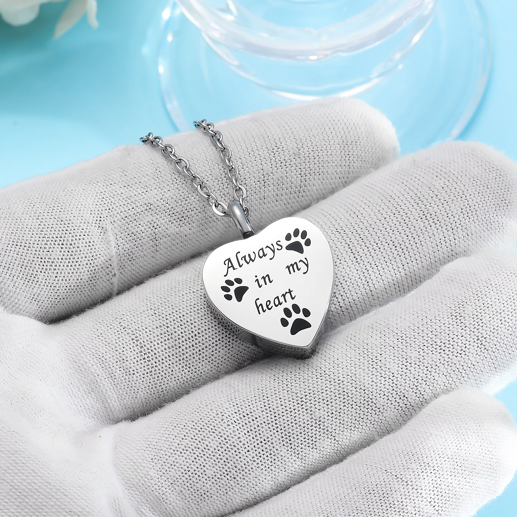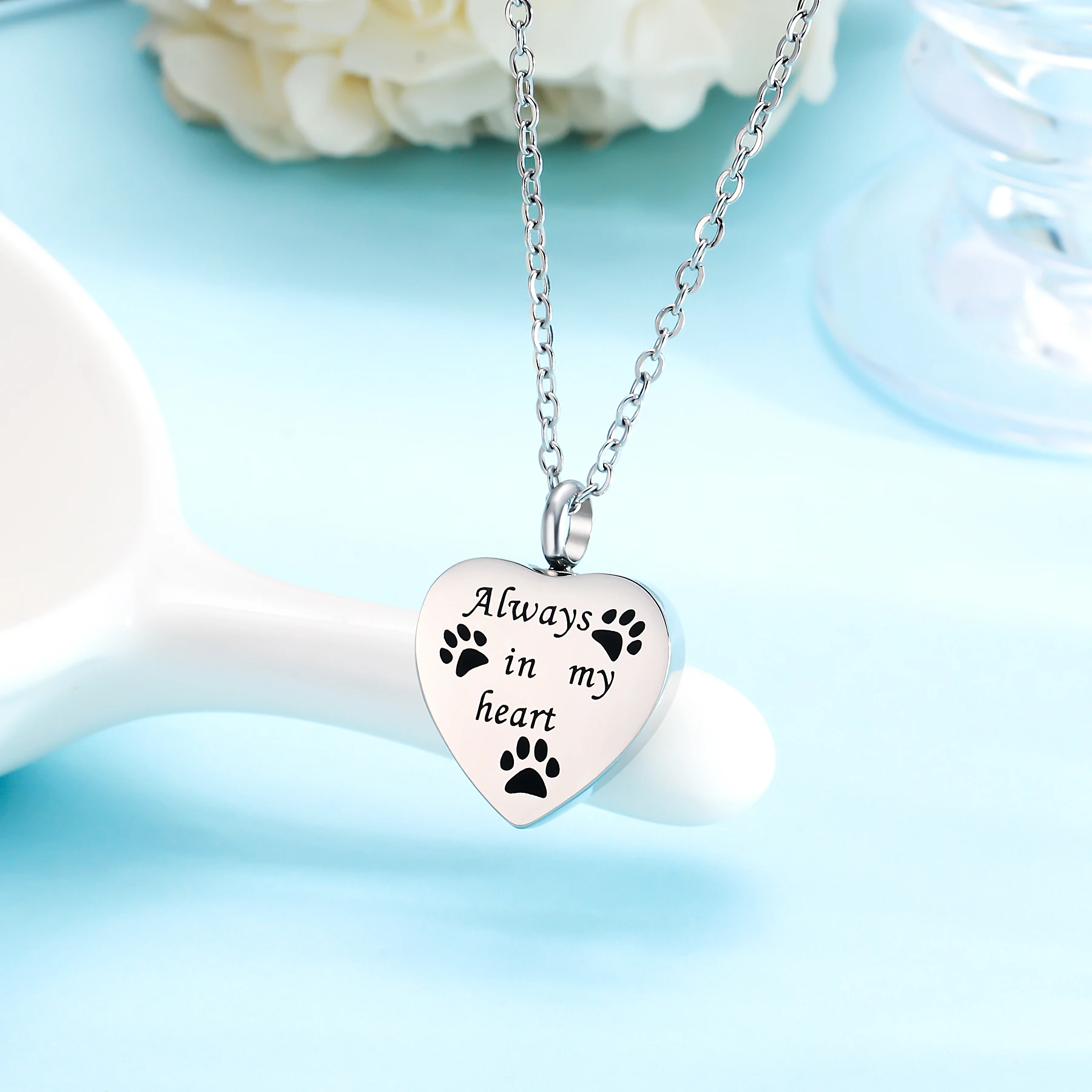Cremation Jewelry for Ashes Always in my heart Stainless Steel Heart Pet Paw Keepsake Pendant Memorial Urn Necklace
