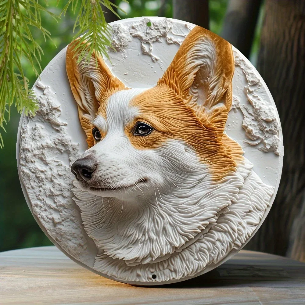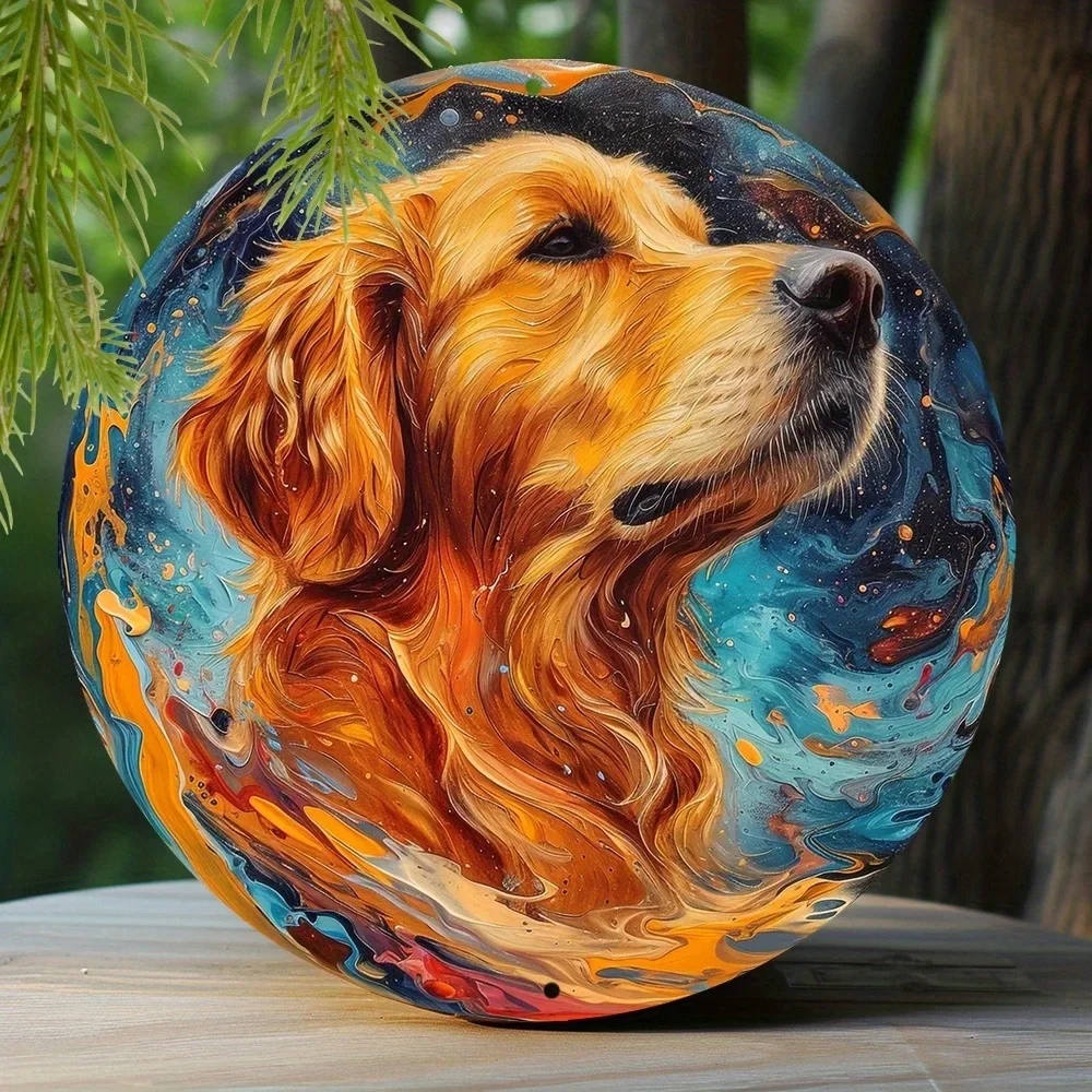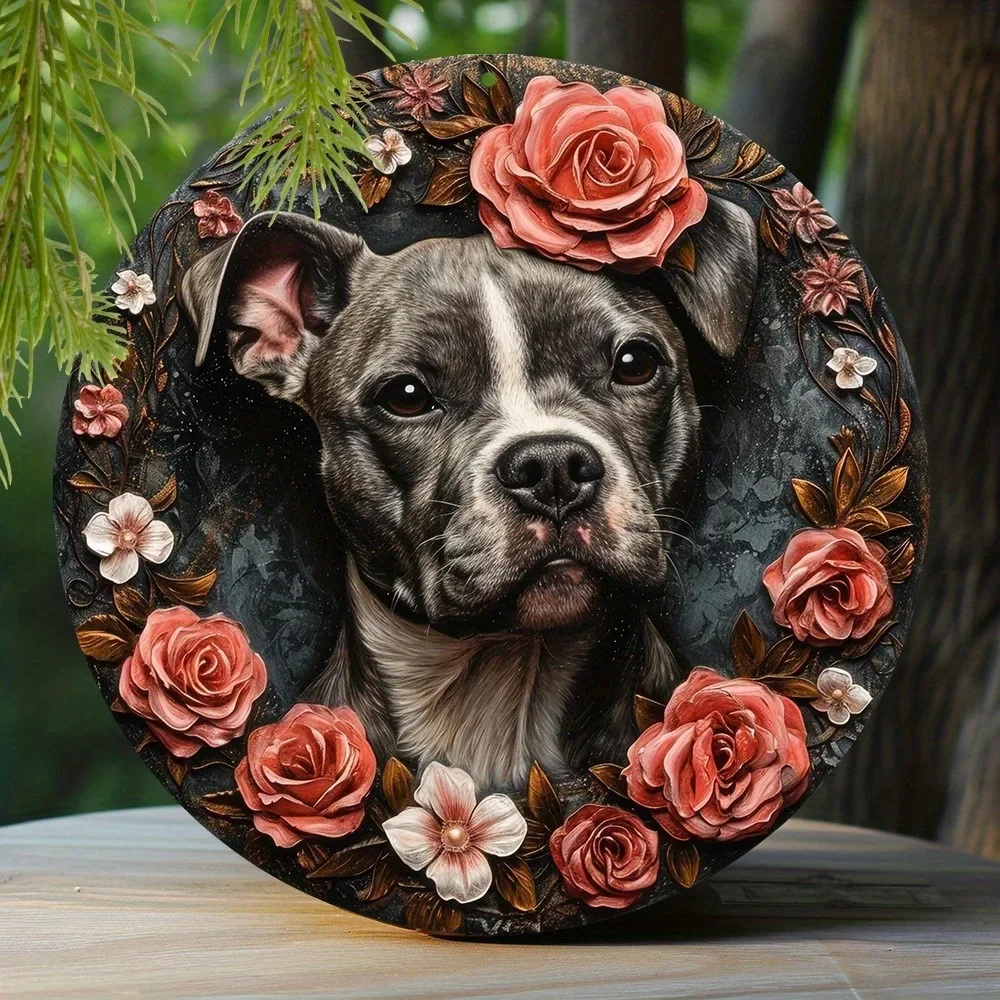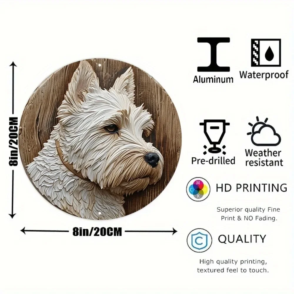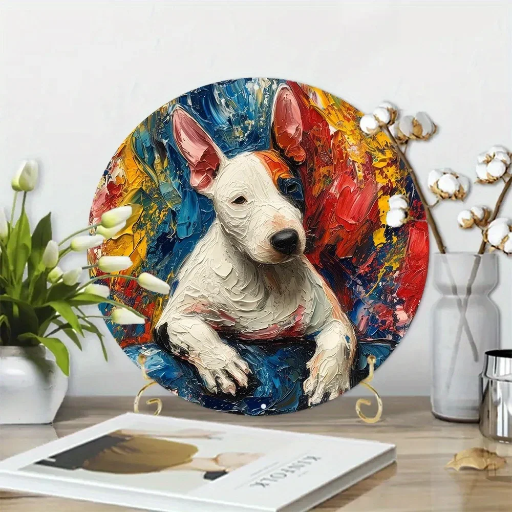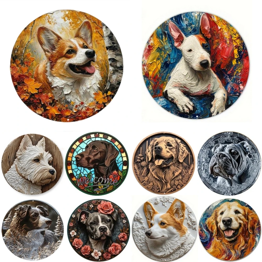 Cute Dog Gift Mask Theme Round Metal Aluminum Sign Art Desktop Decorative Plates For Bar Cafe Club Yard Home Office Wall Decor