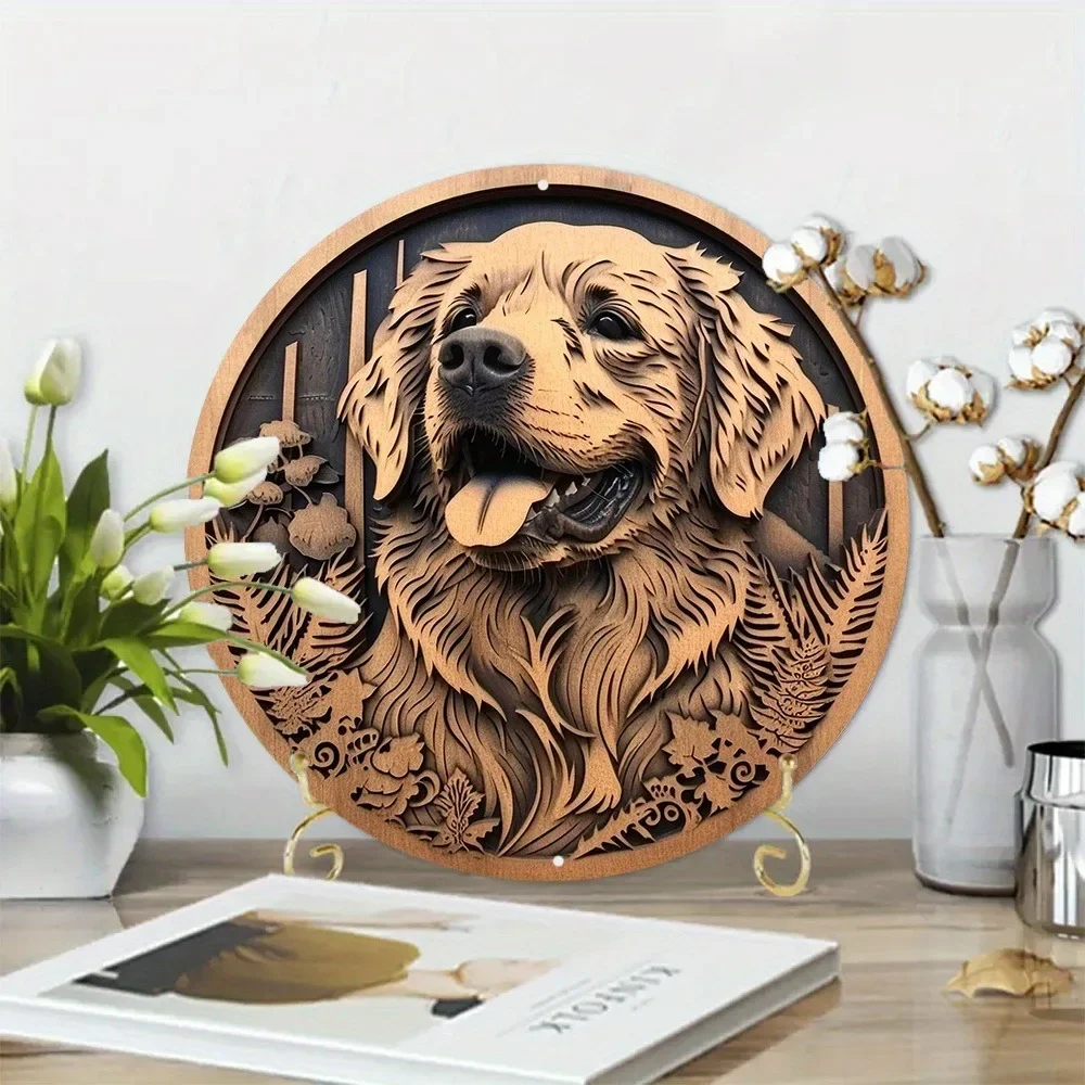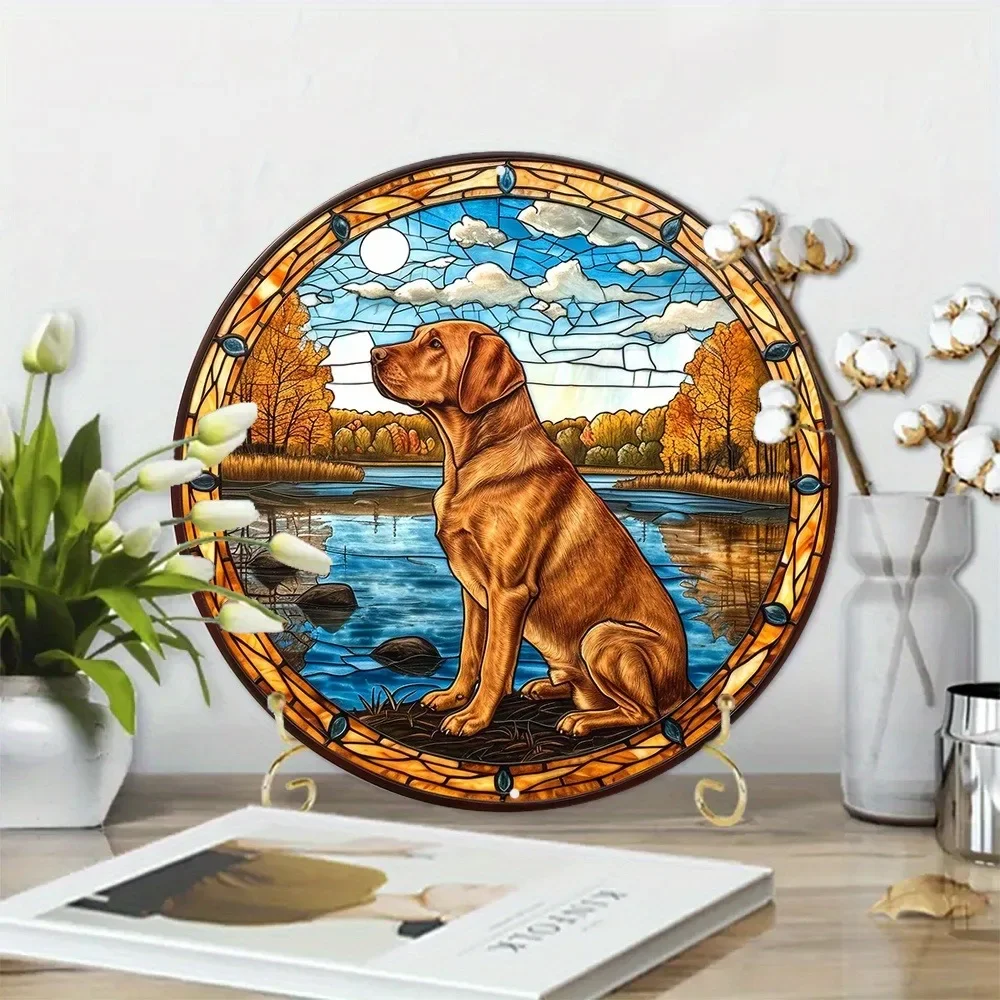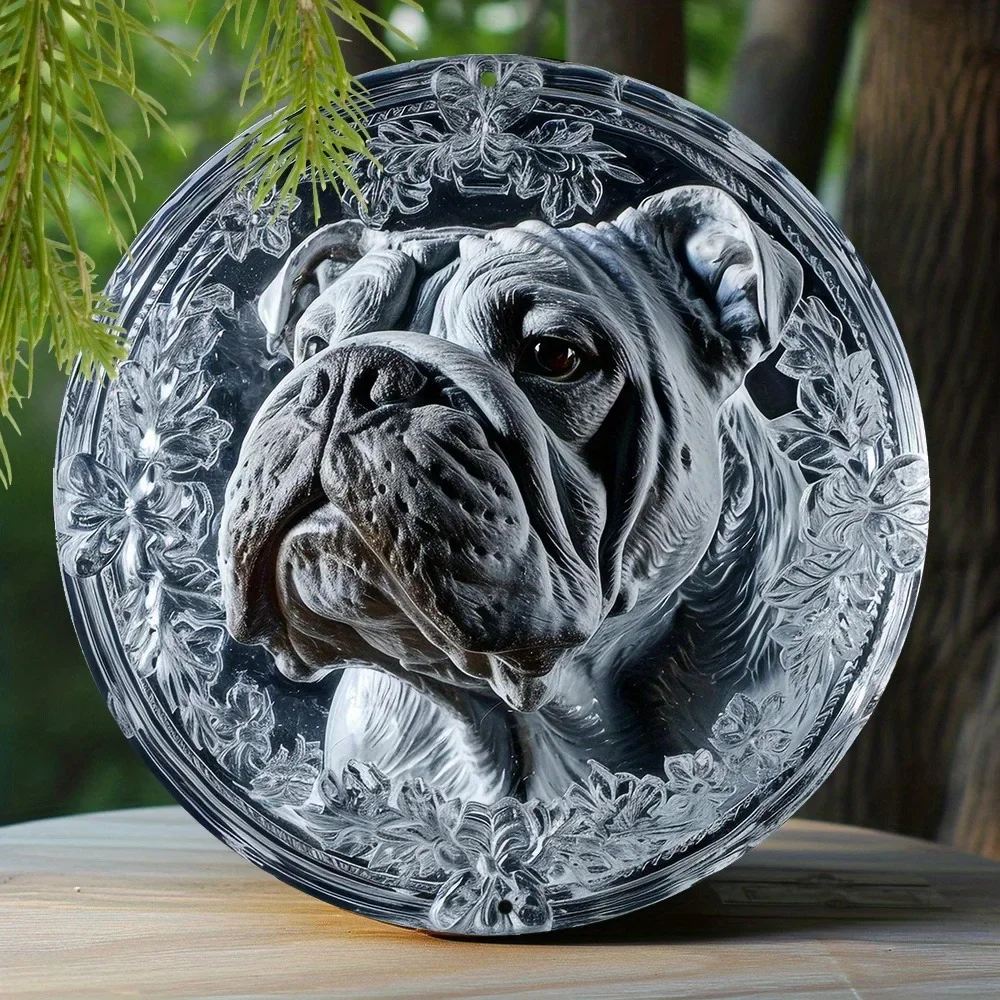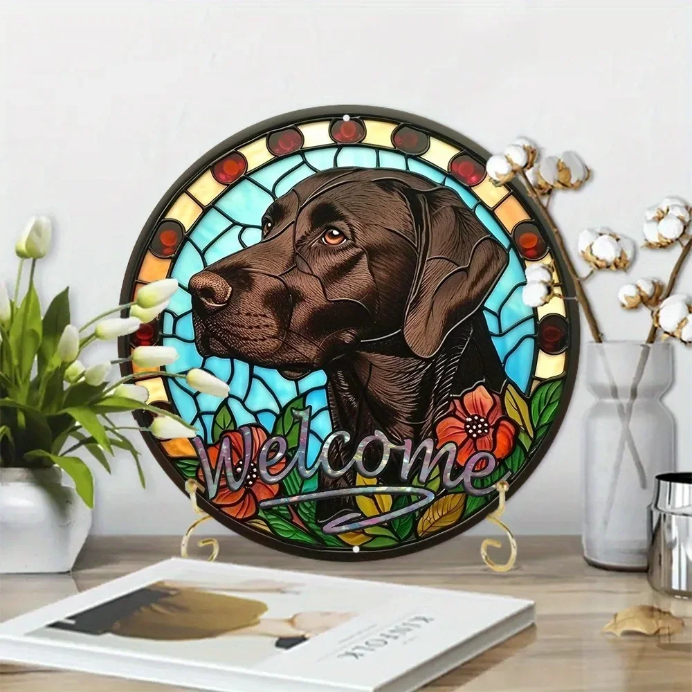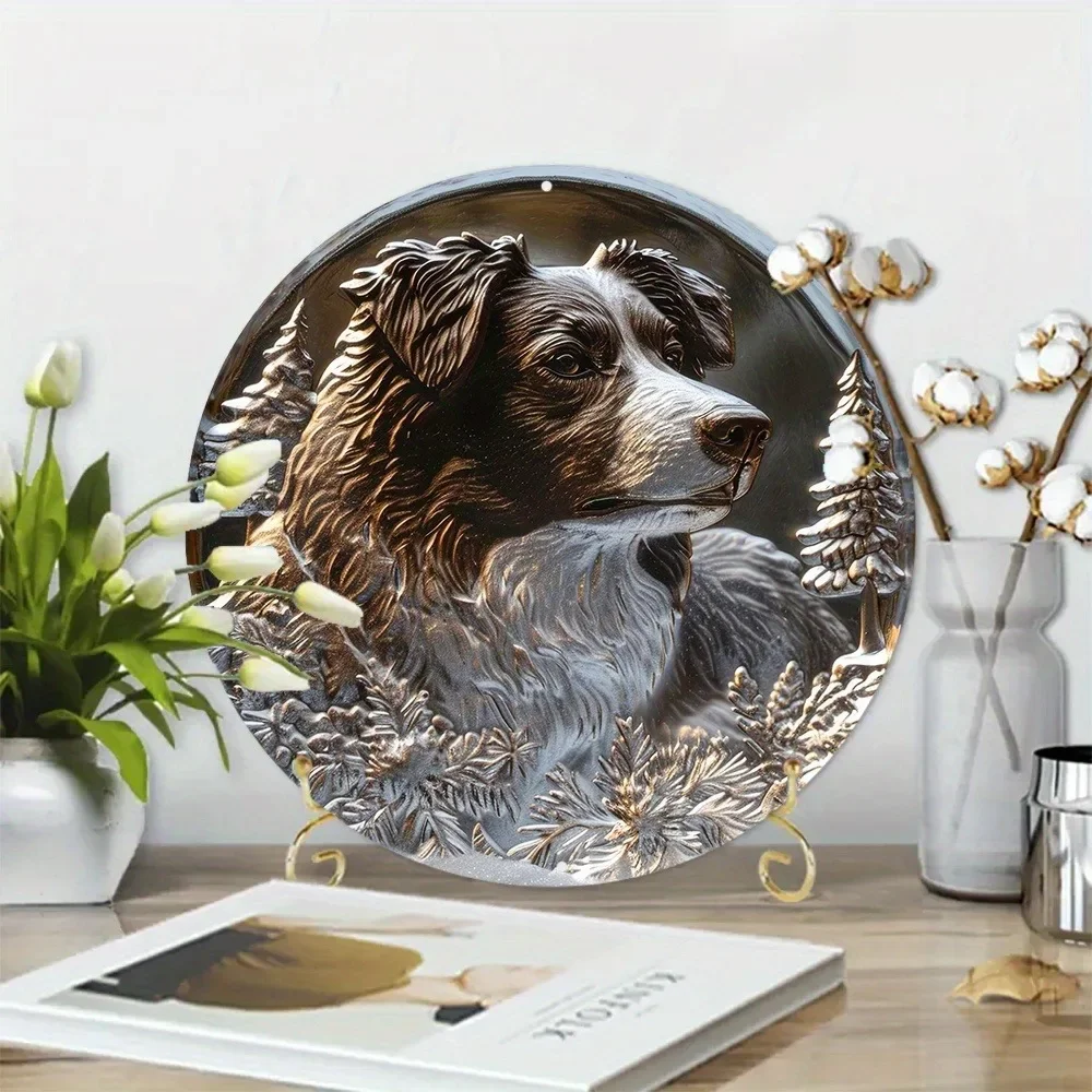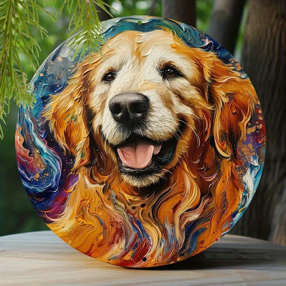 Cute Dog Gift Mask Theme Round Metal Aluminum Sign Art Desktop Decorative Plates For Bar Cafe Club Yard Home Office Wall Decor