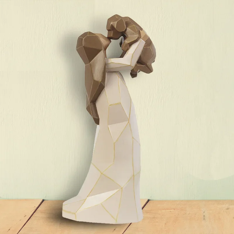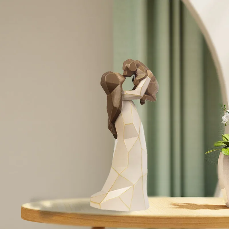 Creative Resin Ornament Cute Girl Hugs Dog Sculpture Geometric Crafts Desktop Decoration Room Layout Home Decorations Small Gift