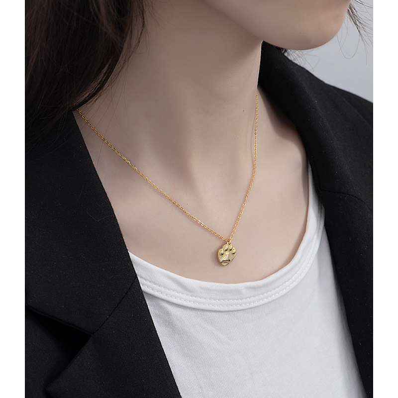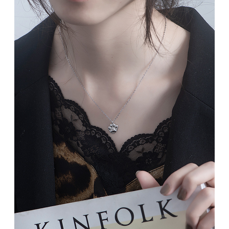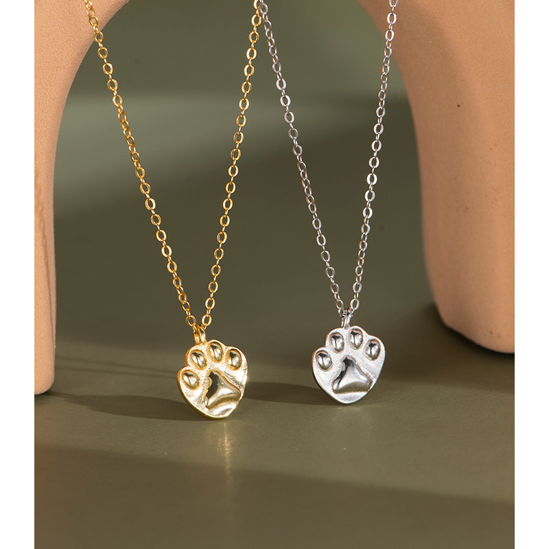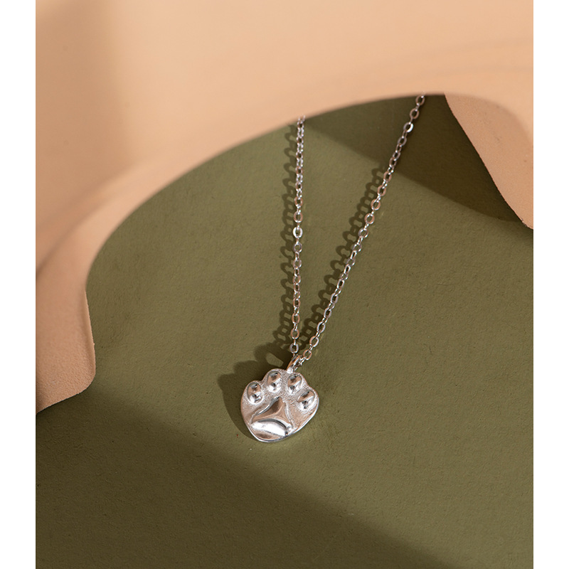Simple Dog and Cat Paw Print S925 Sterling Silver Necklace
