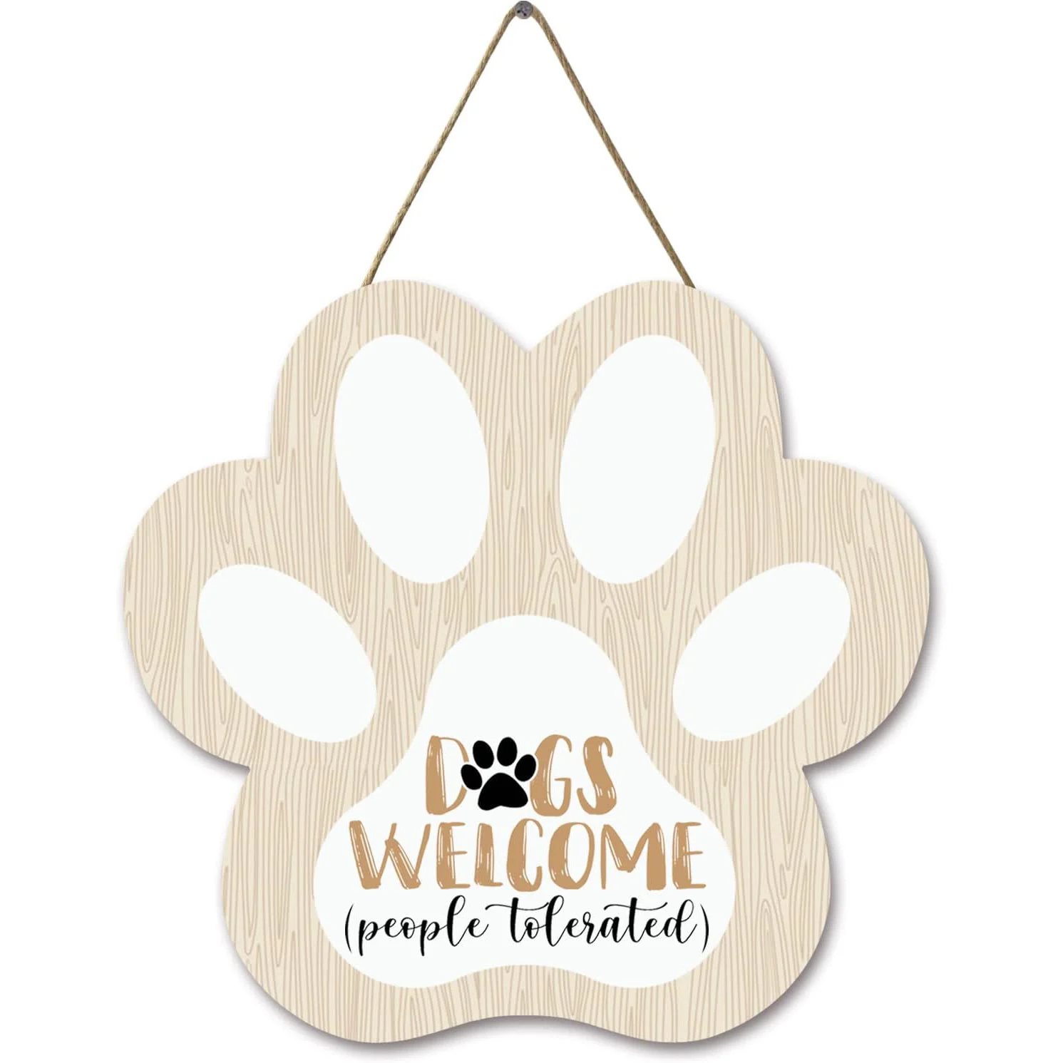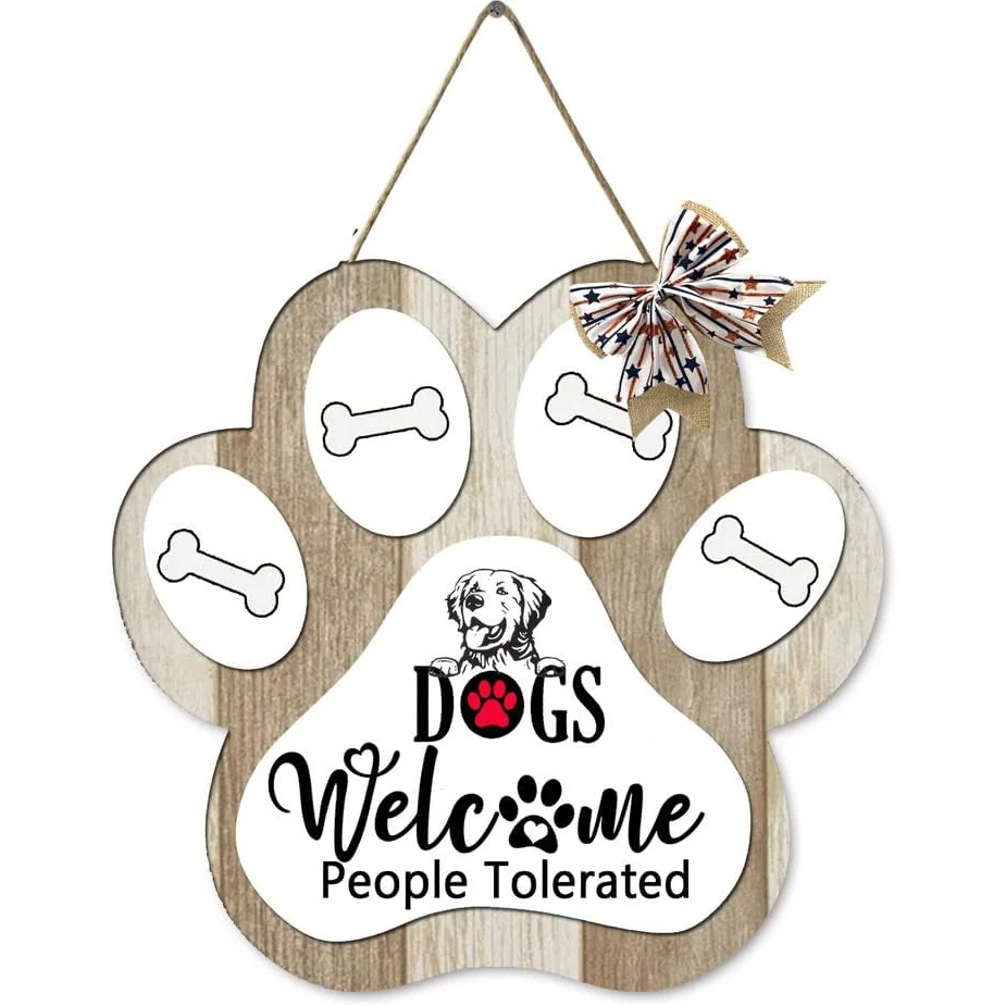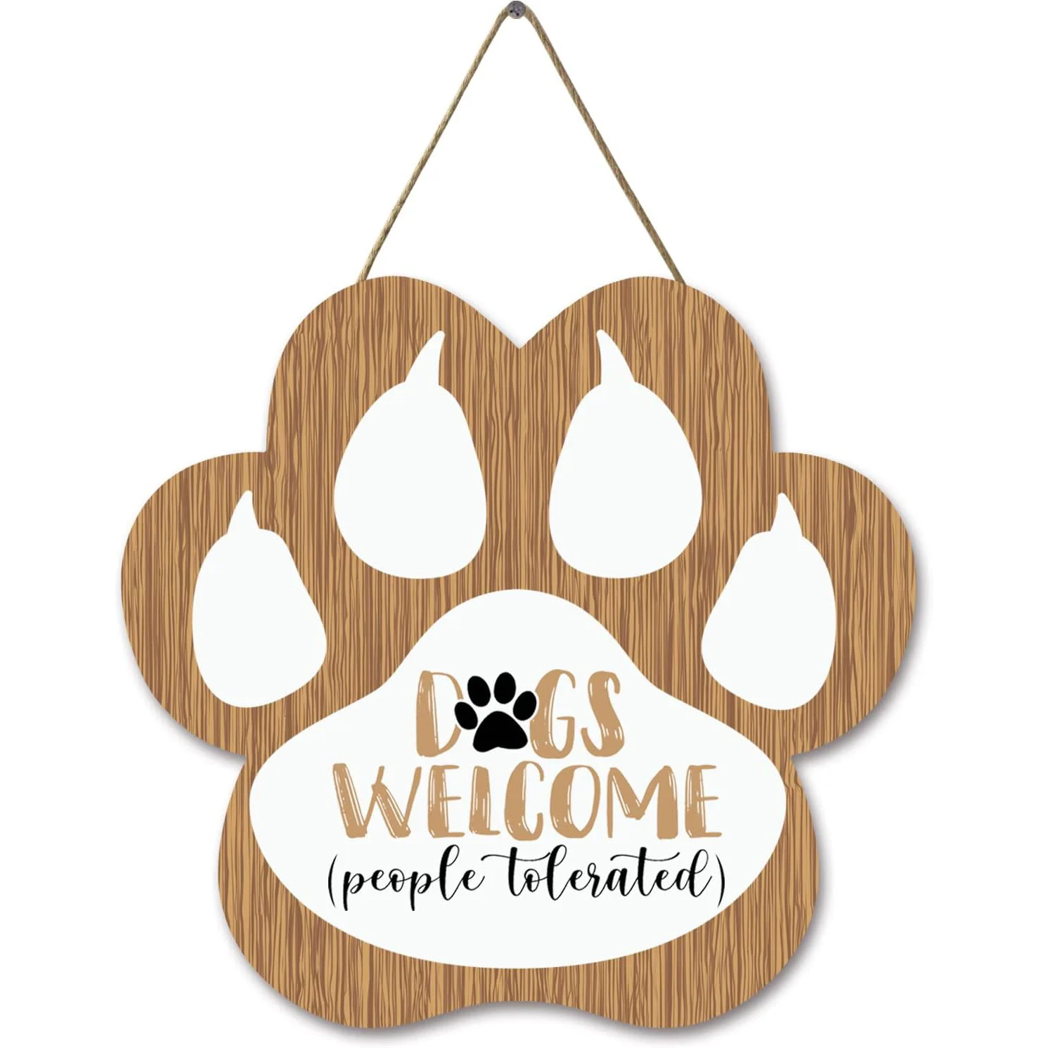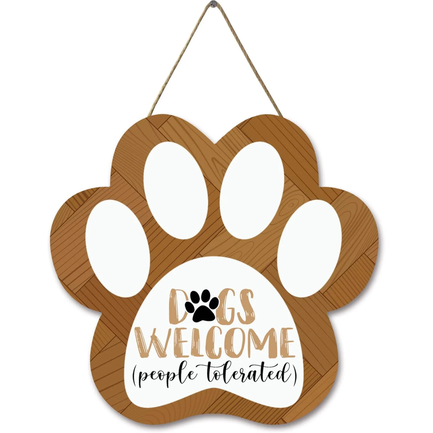 Dog Welcome Sign Dog Welcome People Tolerated Plaque Hanging Dog Paw Sign For Home Decoration Front Door Dogs Spot Plaque Wooden