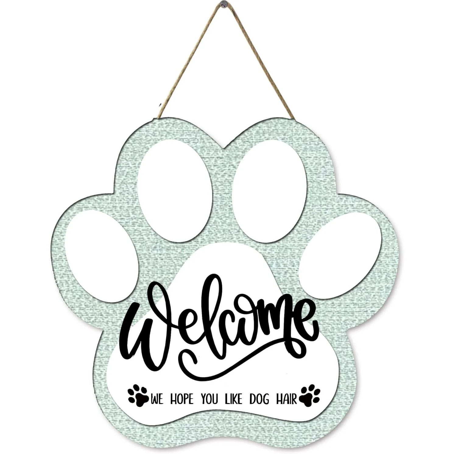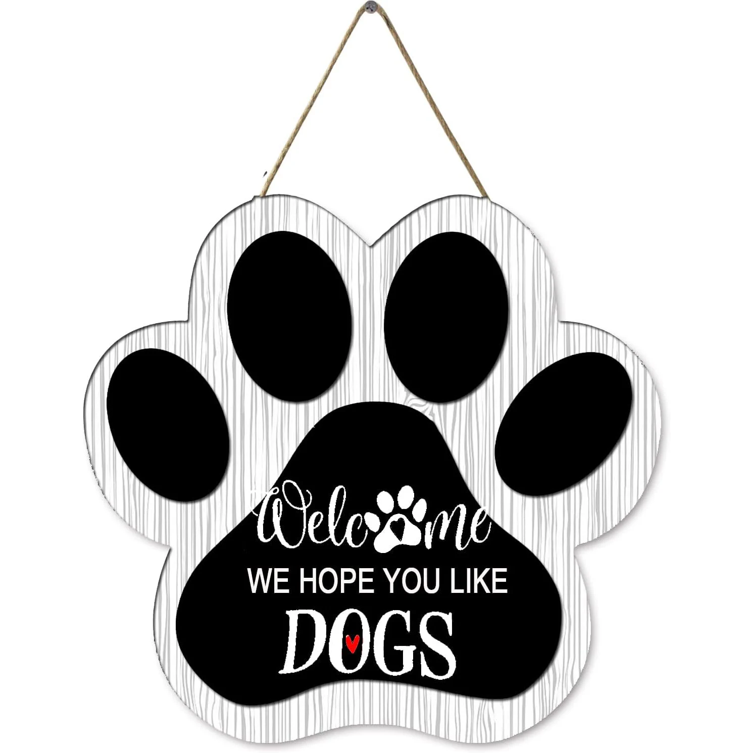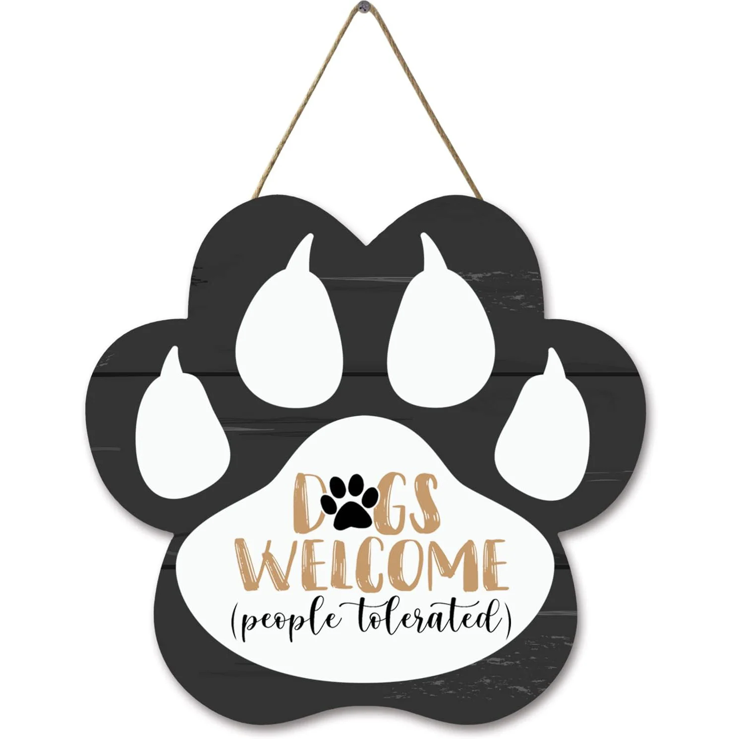 Dog Welcome Sign Dog Welcome People Tolerated Plaque Hanging Dog Paw Sign For Home Decoration Front Door Dogs Spot Plaque Wooden