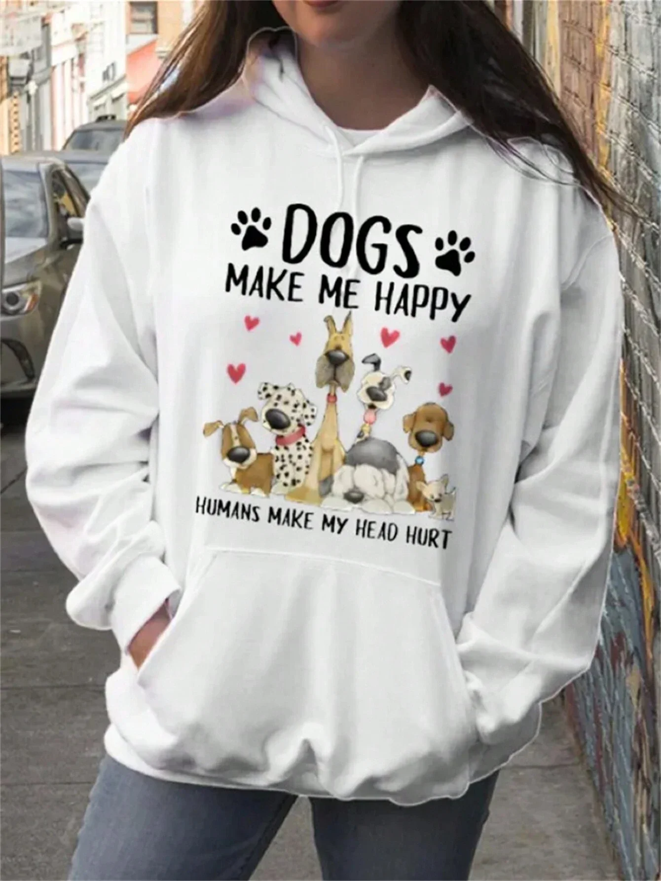 Dogs Make Me Happy Printing Women Hoodies Harajuku Crewneck Hoodie Fashion Oversize Casual Hoody Autumn Comfortable Tracksuit