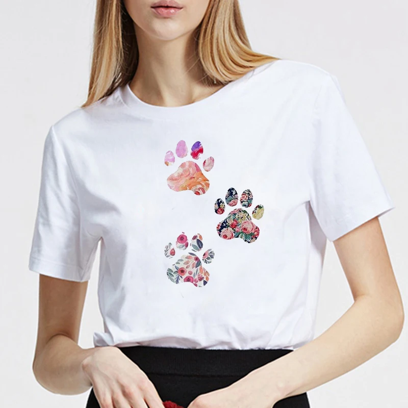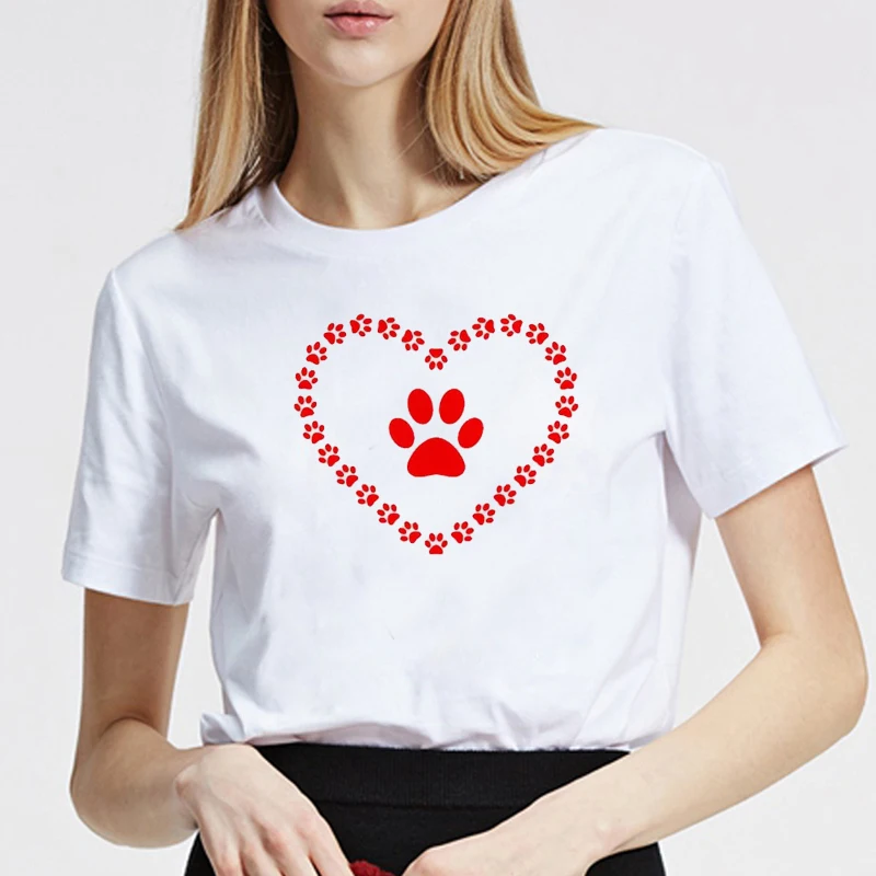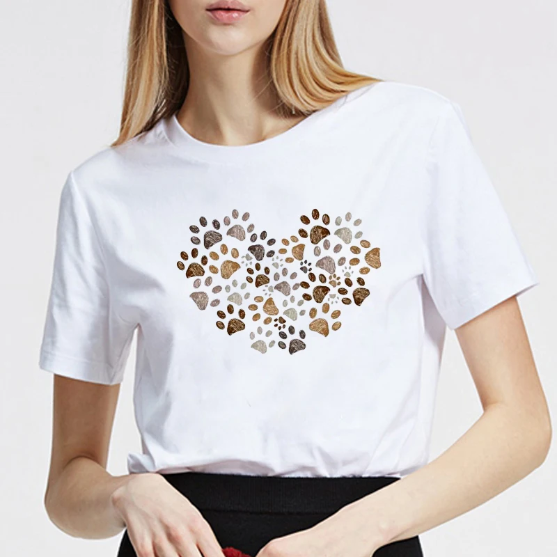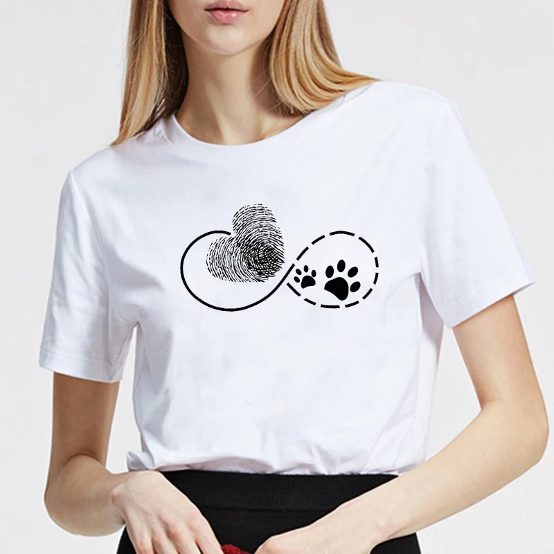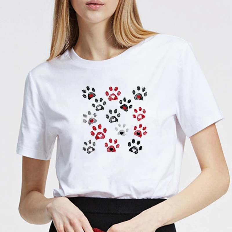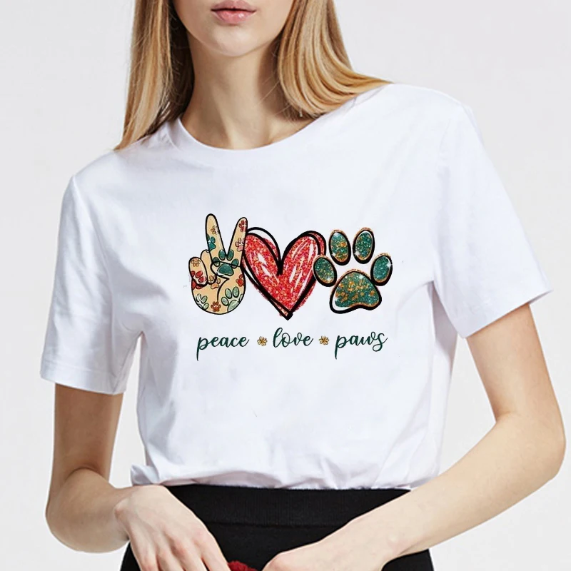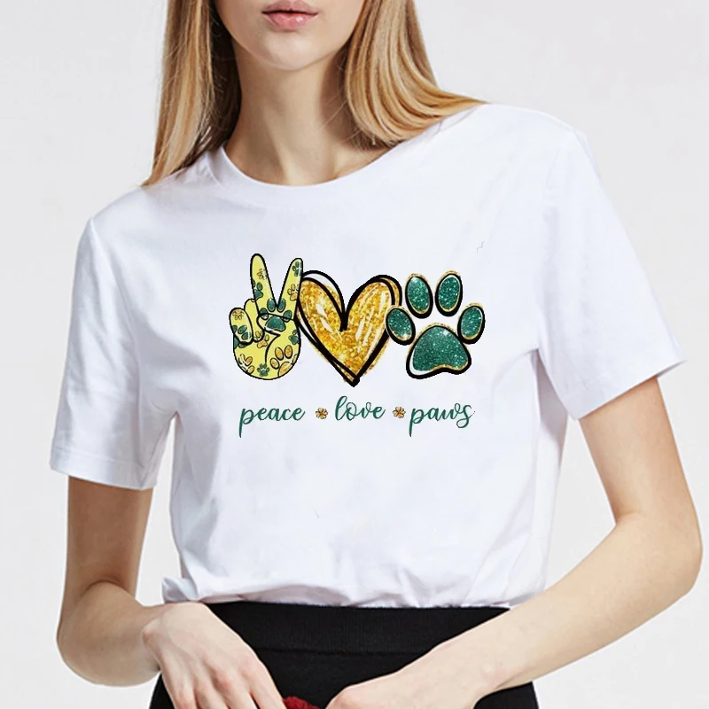 Dogs Paws T Shirt Peace Love Casual O-neck Short Sleeves T-shirt Plus Size Female Tee