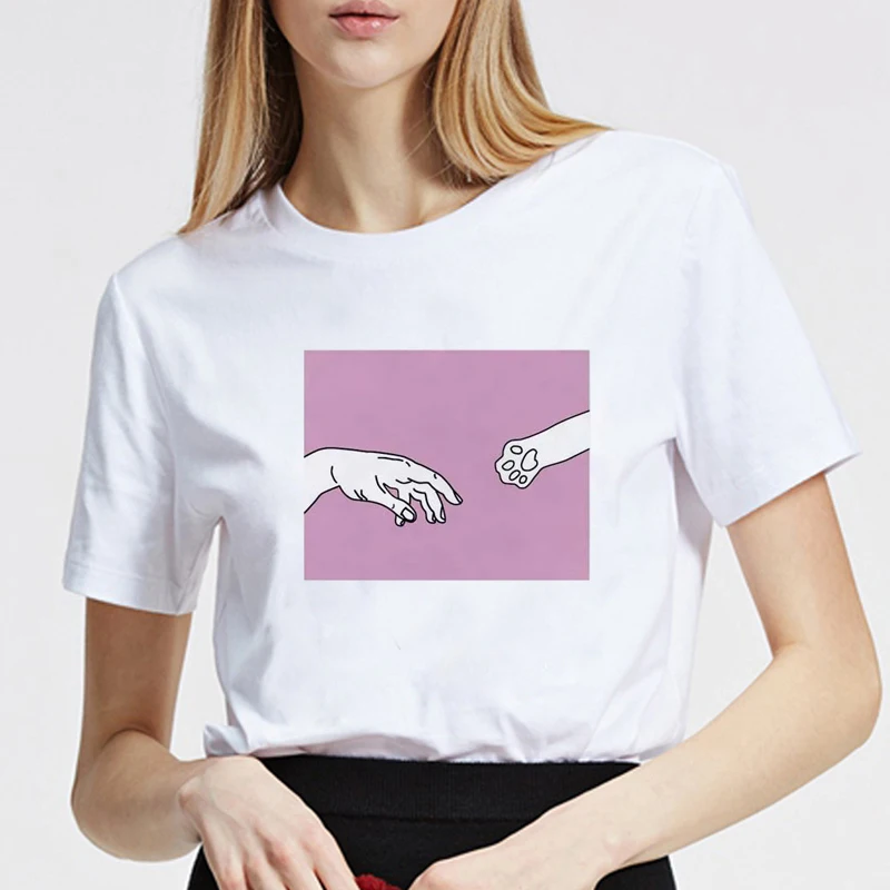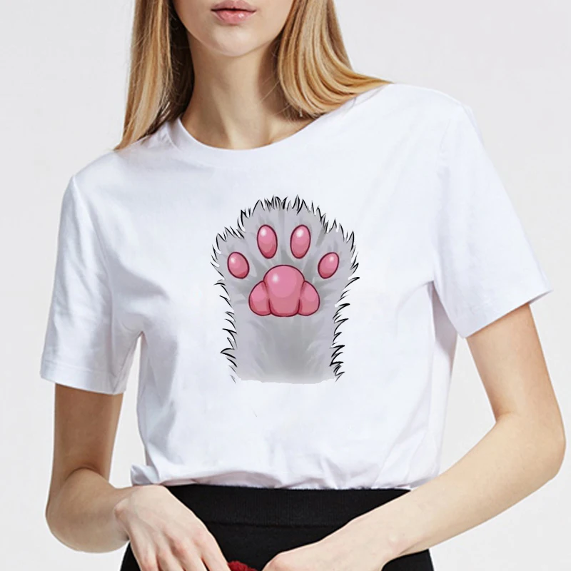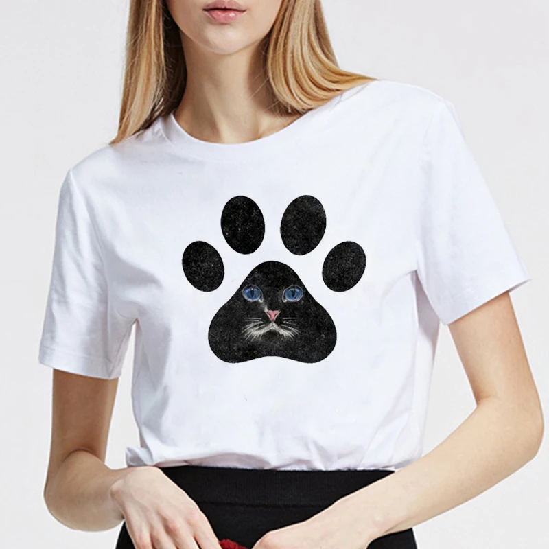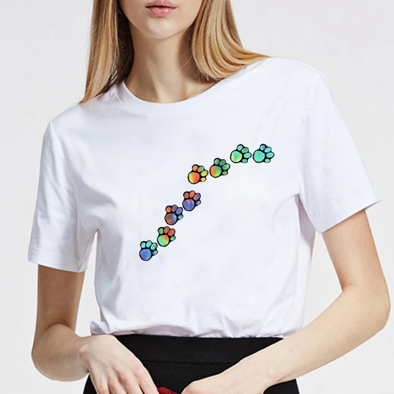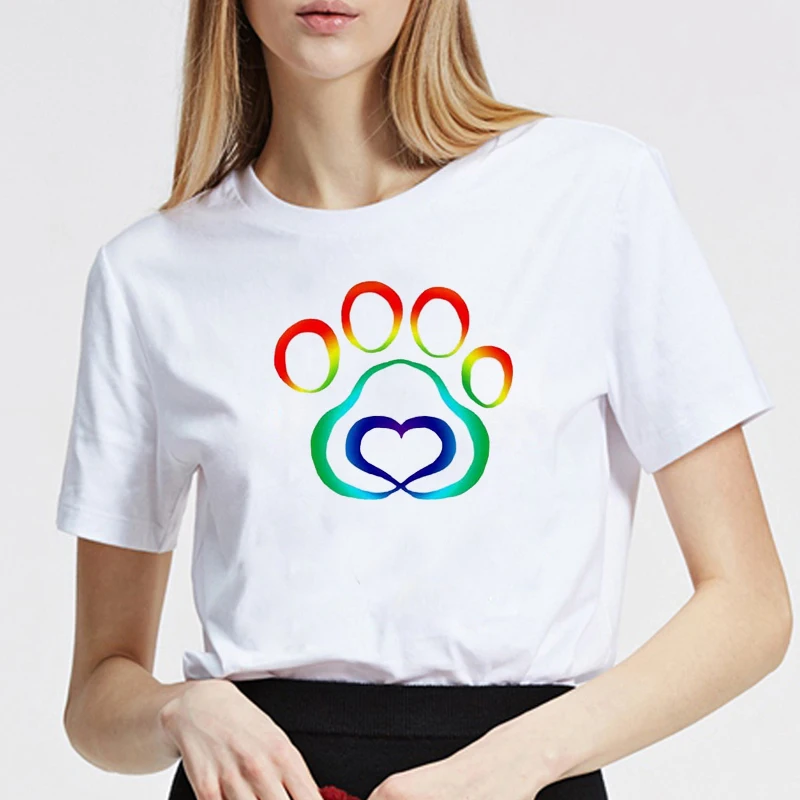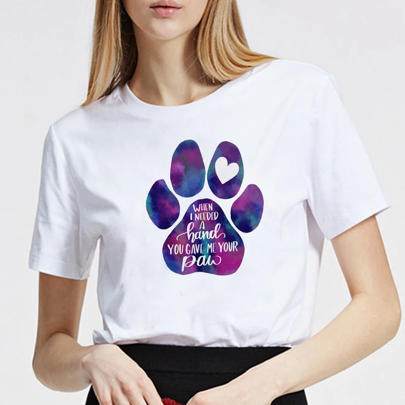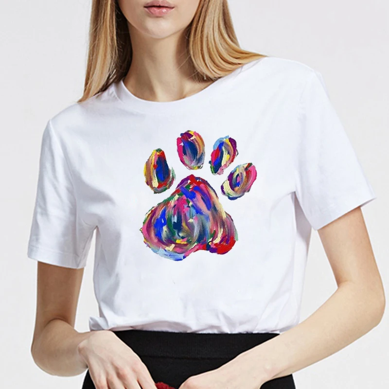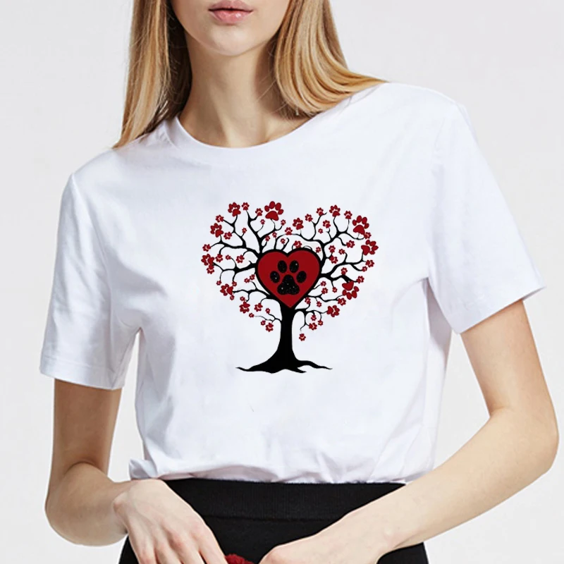 Dogs Paws T Shirt Peace Love Casual O-neck Short Sleeves T-shirt Plus Size Female Tee