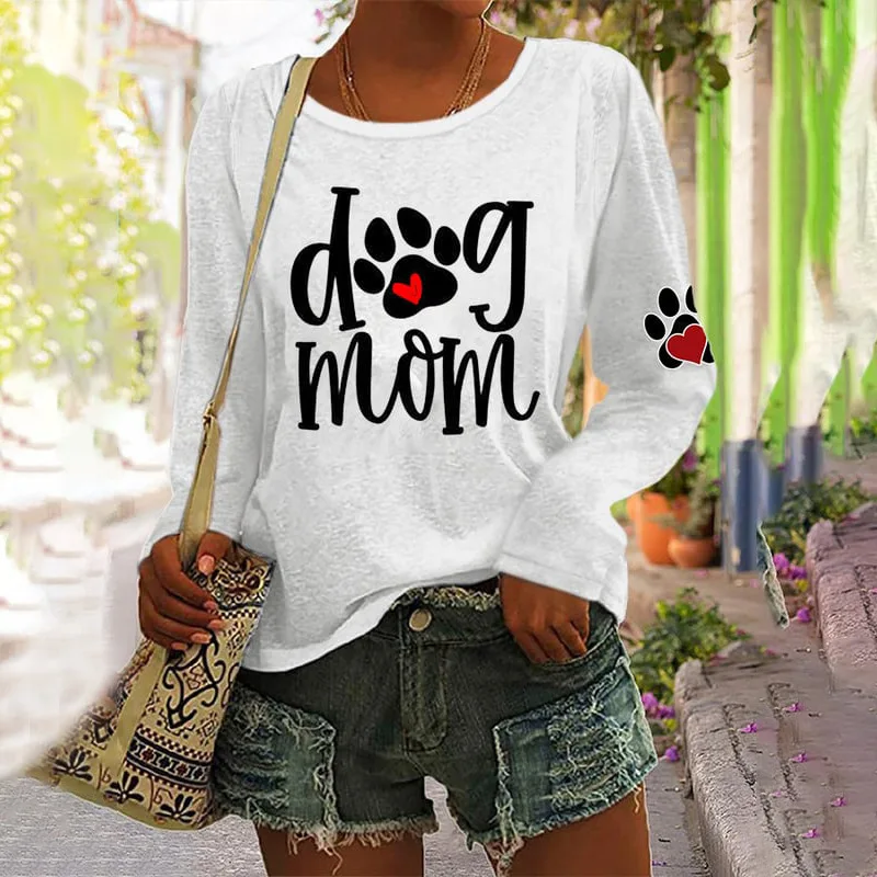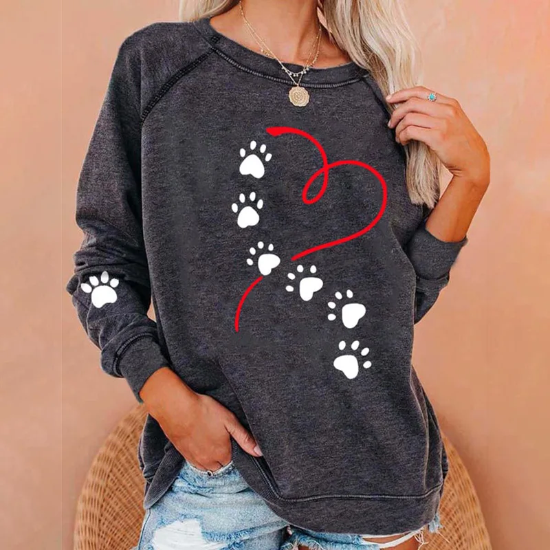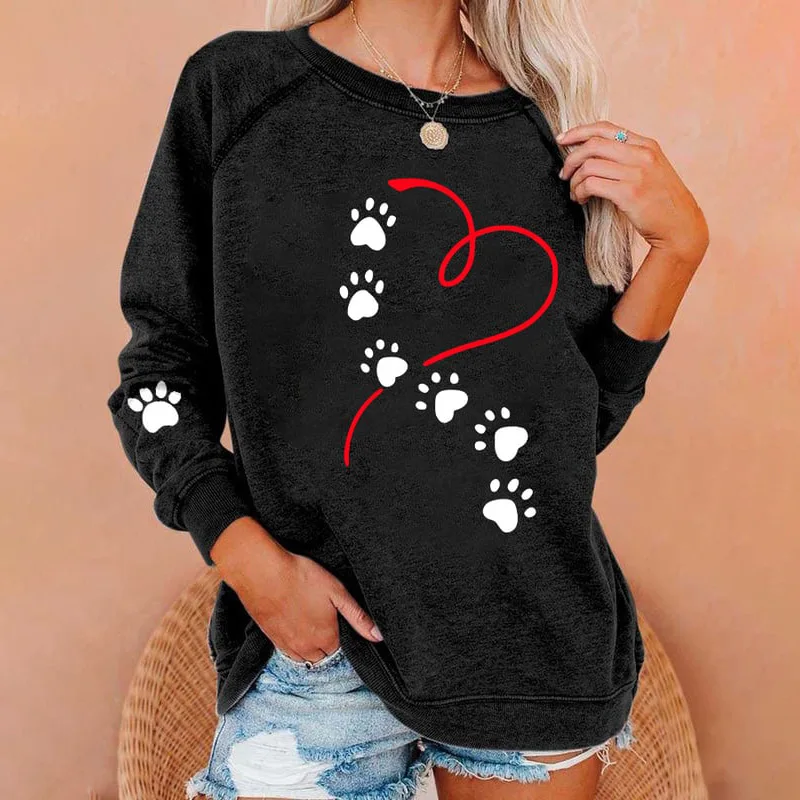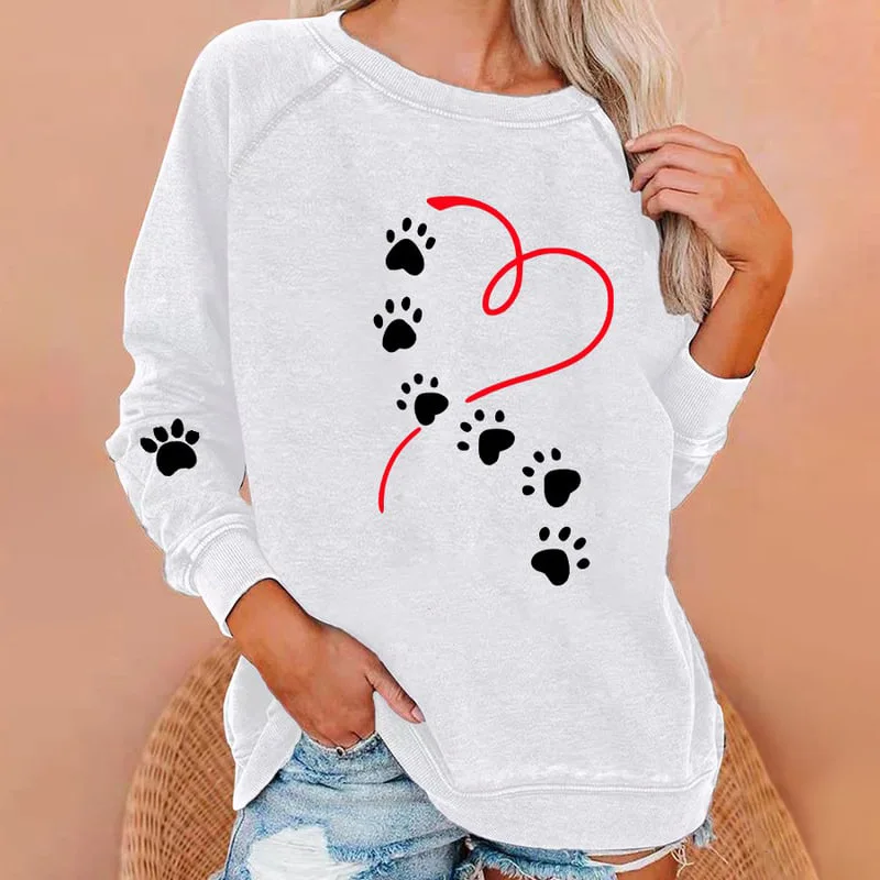 Fashion Women‘s Long Sleeves T-Shirt 3d Dog Paw Print Tops Casual Daily Pullovers Summer New Lady Oversized Long Sleeves Tees