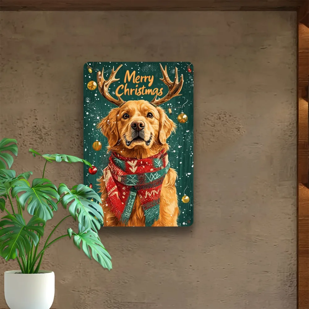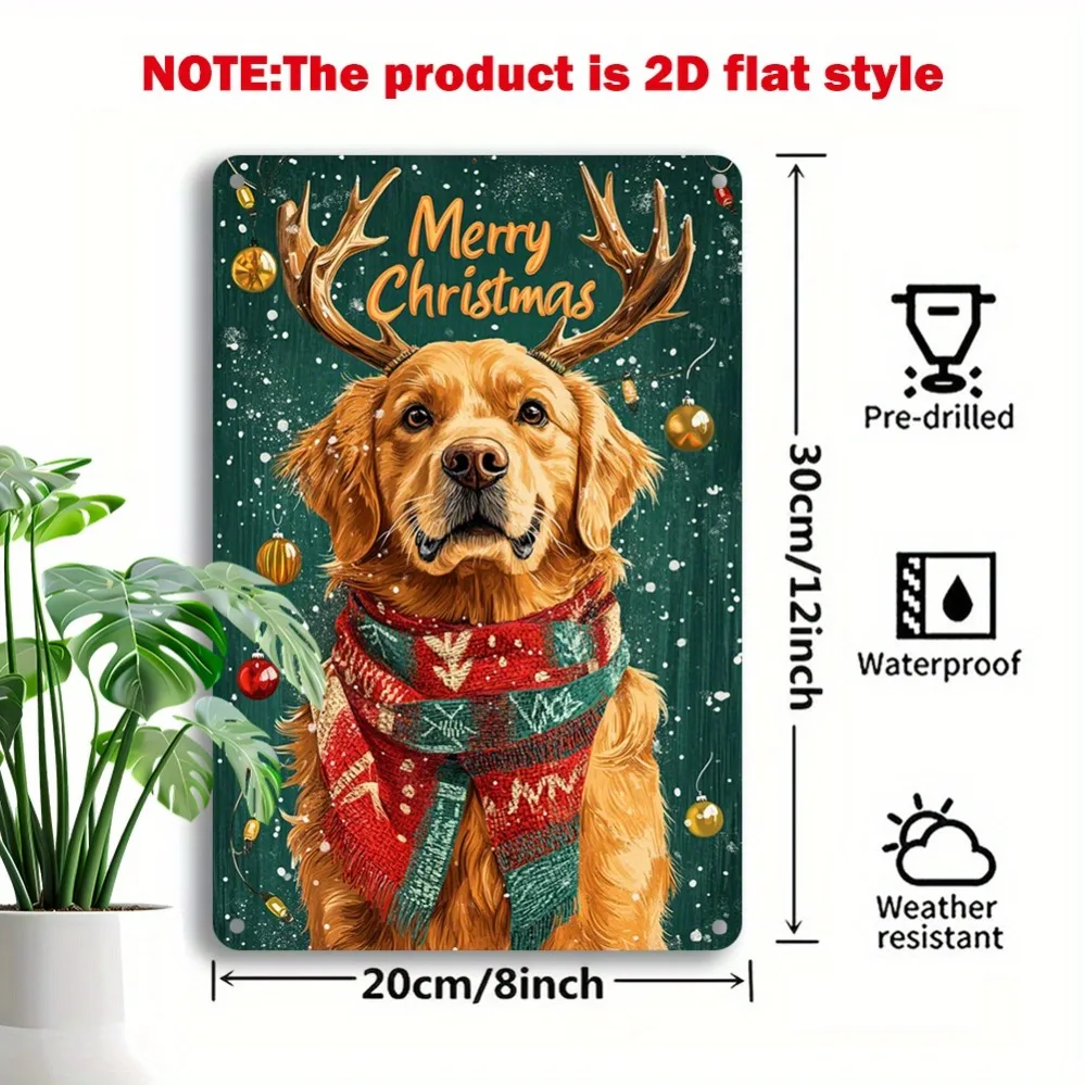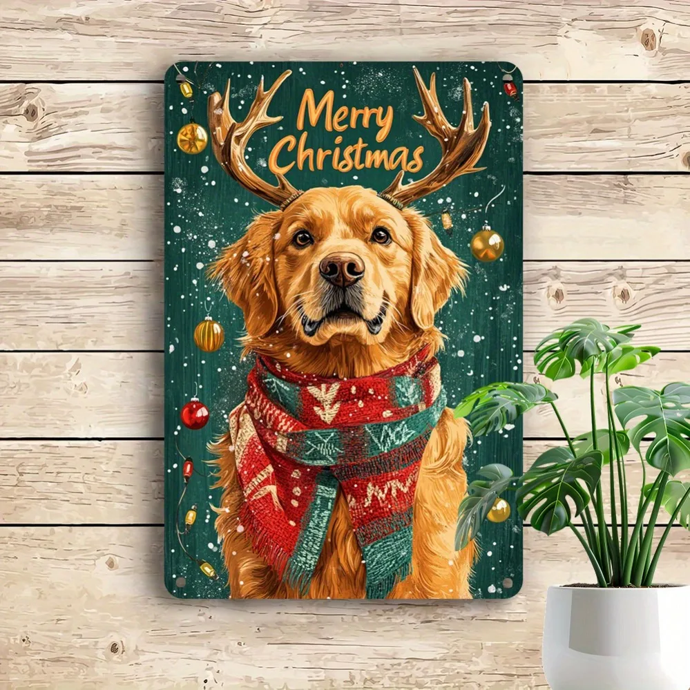 Vintage Golden Retriever Christmas Tin Sign - Reusable Aluminum Wall Decor for Home Garden 8x12 Inch 1PC Mixed Color