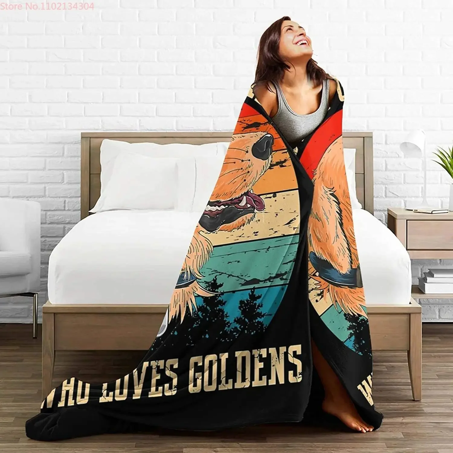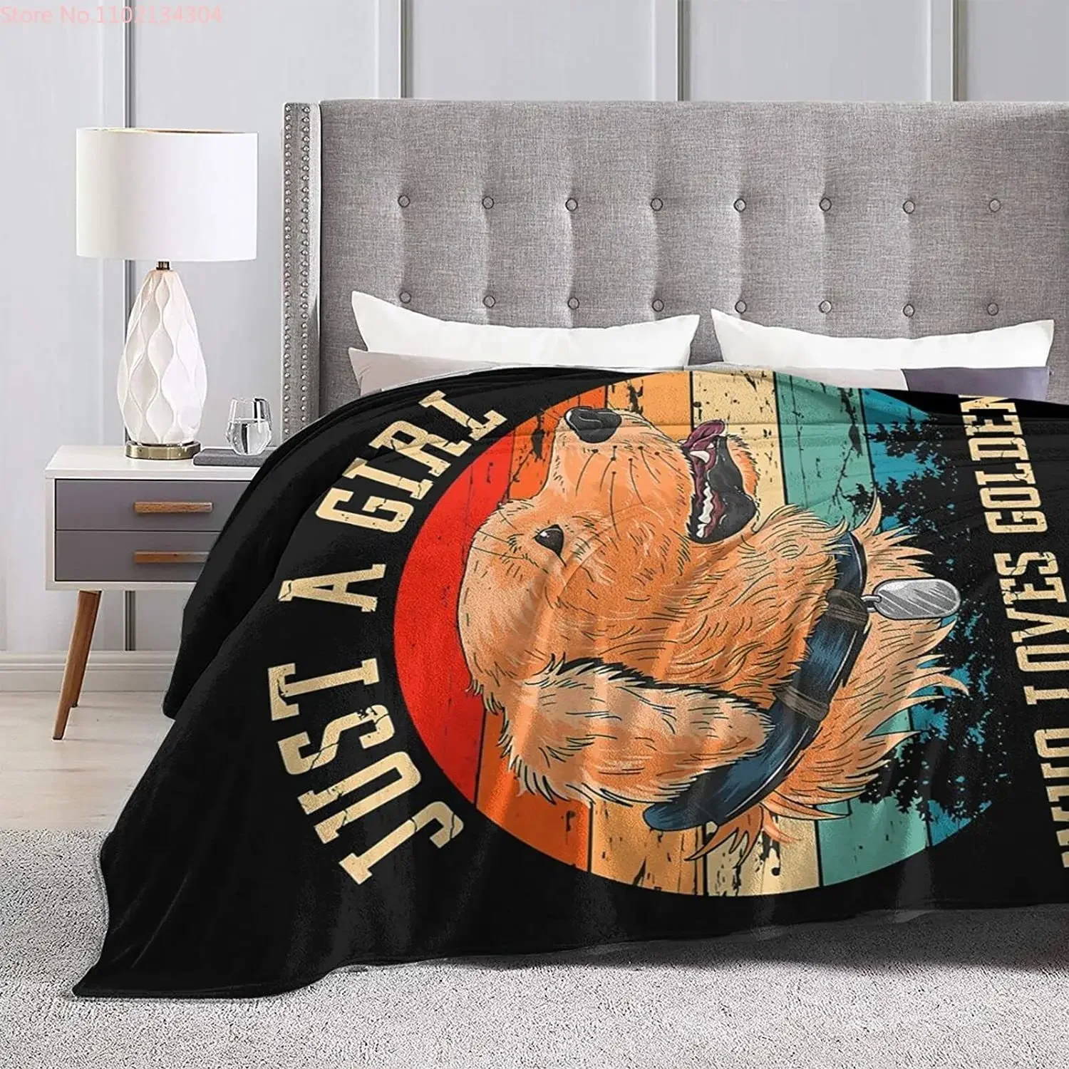 Just A Girl Who Loves Golden Retriever Blanket for All Season Warm Fuzzy Dog Print Throw Blanket for Bed