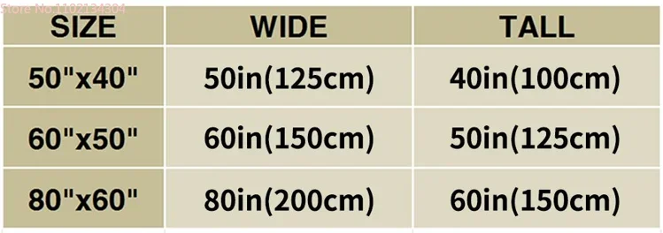 [Size description] There are three sizes to choose from, 50"x40"=125*100cm, 60"x50"=150*125cm, 80"x60"=200*150cm.