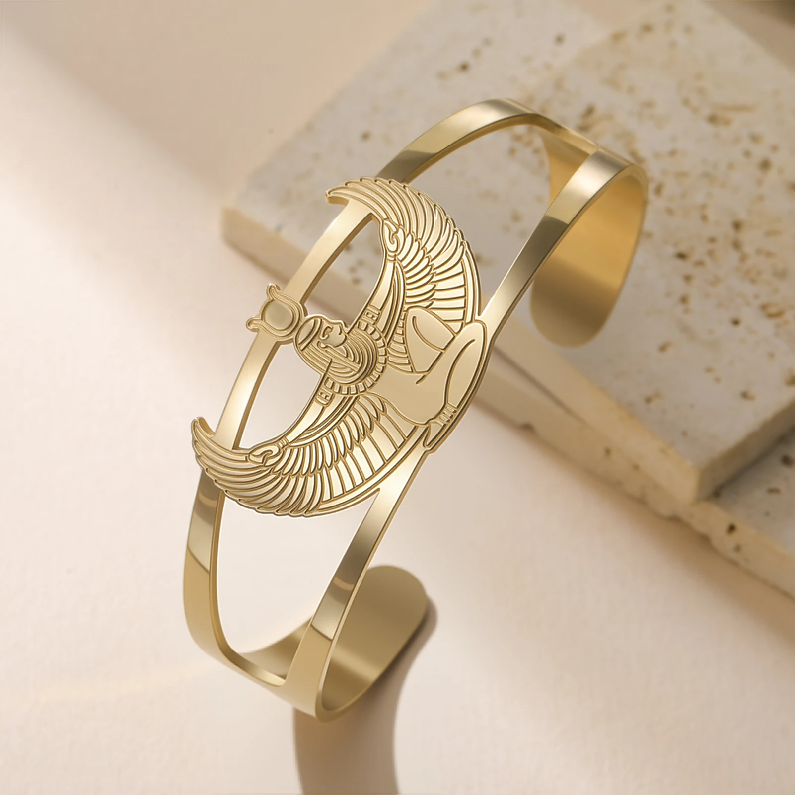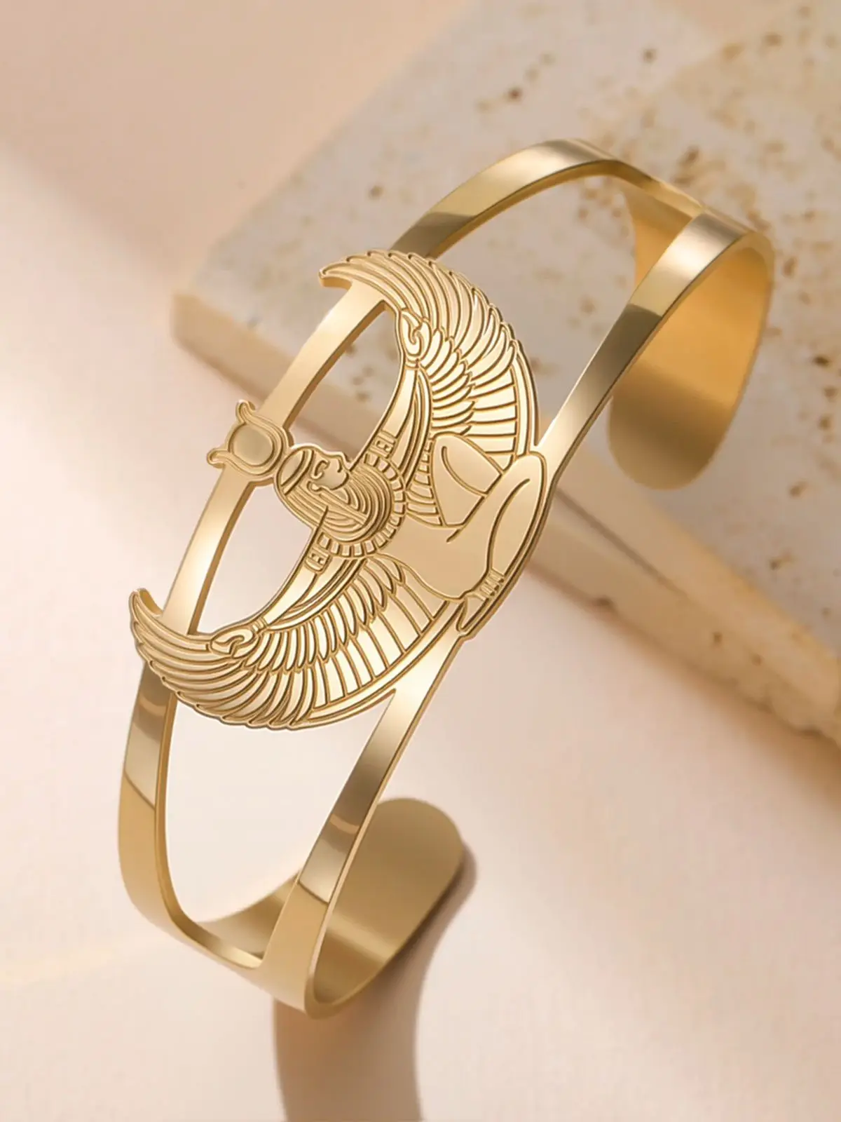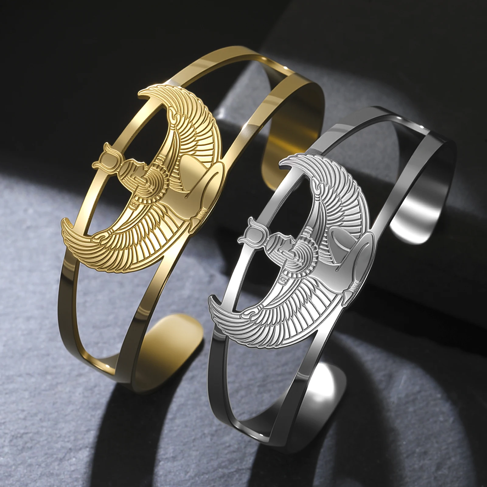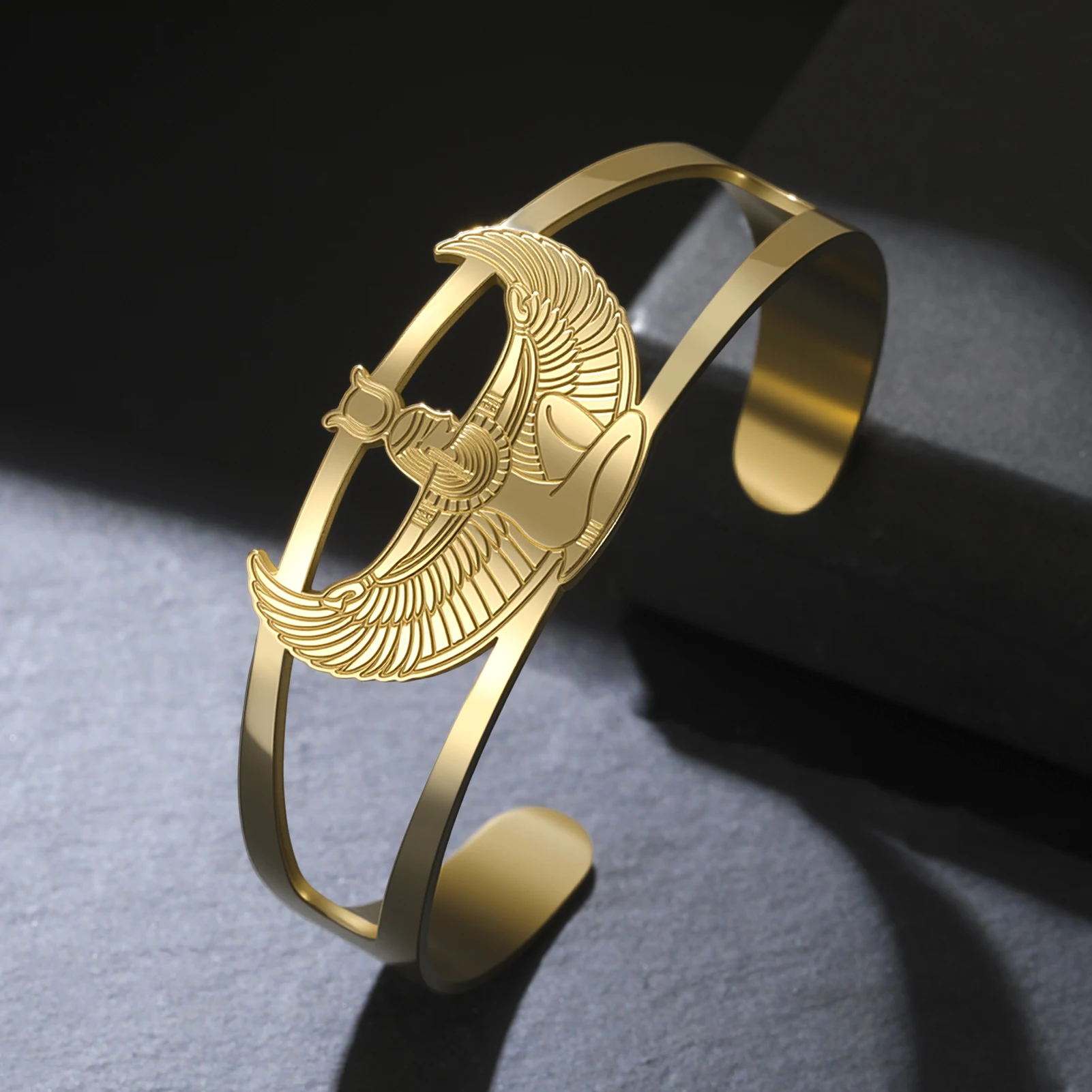 Kkjoy Stainless Steel Vulture of the Goddess Nekhbert Bracelets for Women Men Pendant Religion Bracelet Lover Jewelry Wholesale