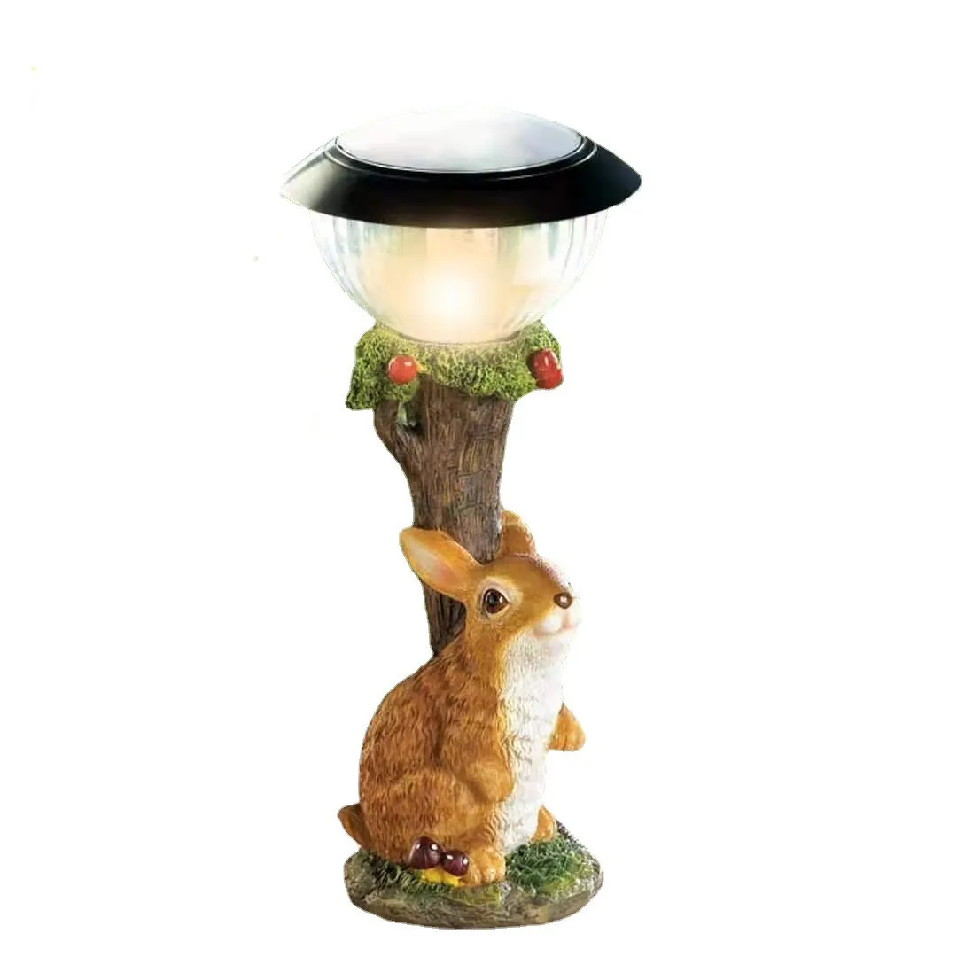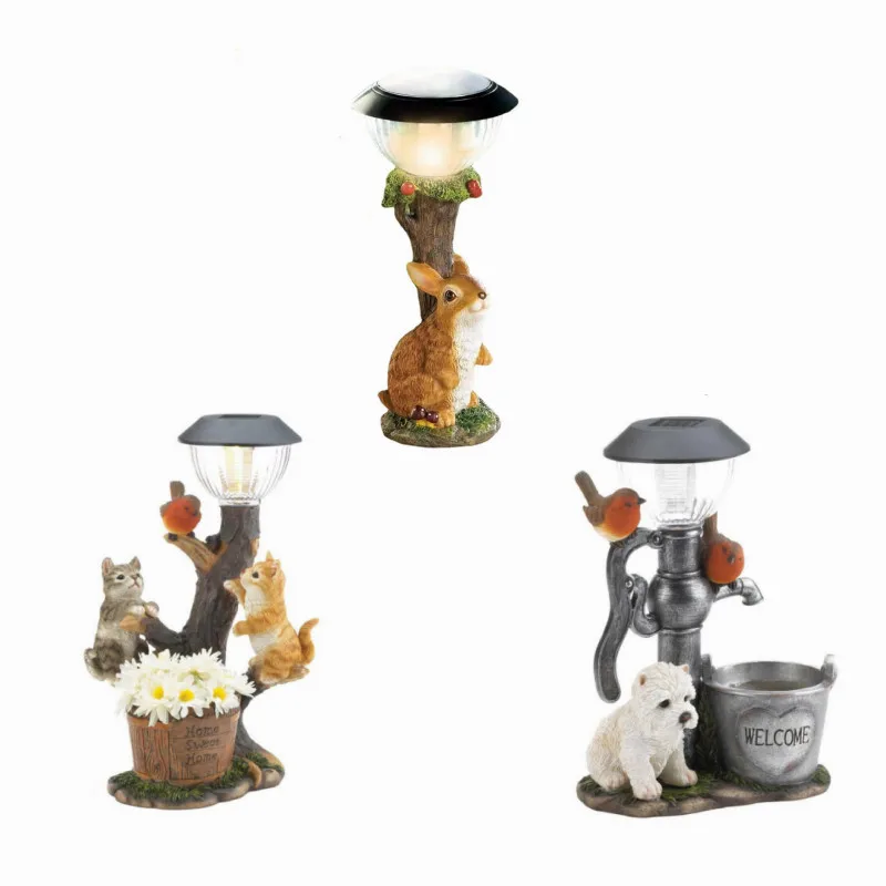 LED Solar Lights Mini Animal Resin Craft Statue Lantern Ornaments Solar Led Lights Outdoor Balcony Cat Dog Rabbit Garden Lights