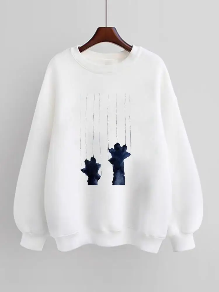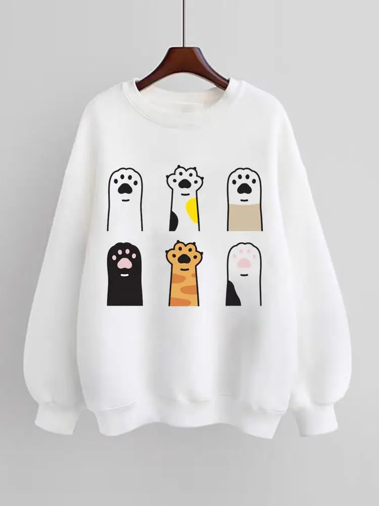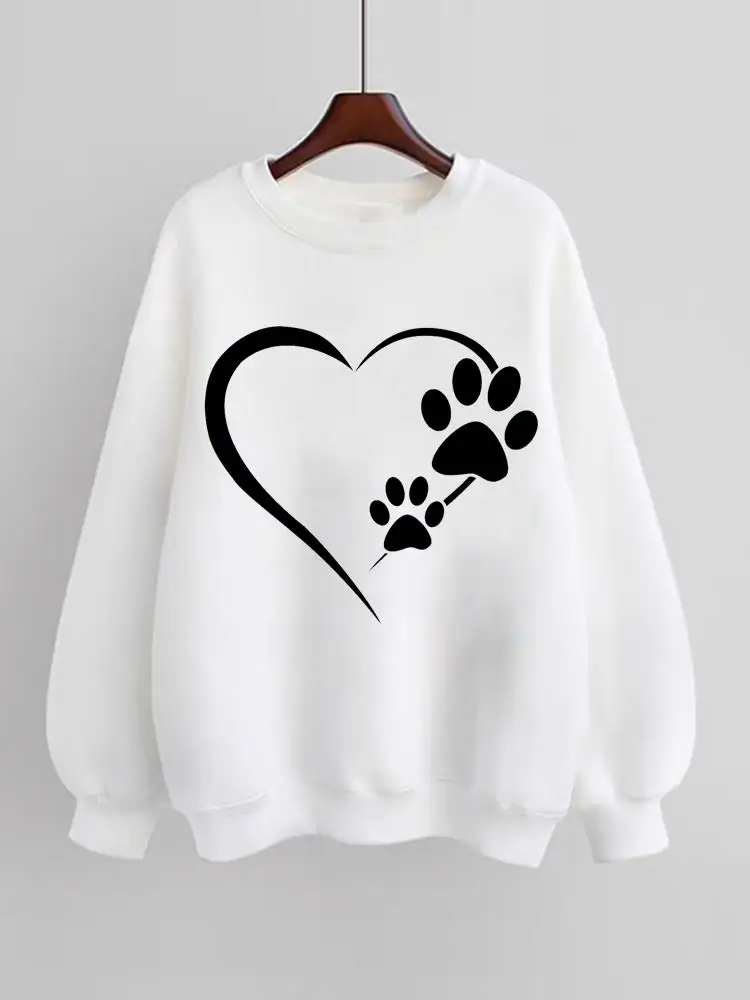 Lovely Paw Cat Dog Trend Lovely 90s Women Fleece Female Fashion Pullovers Print Long Sleeve Clothes Sweatshirts