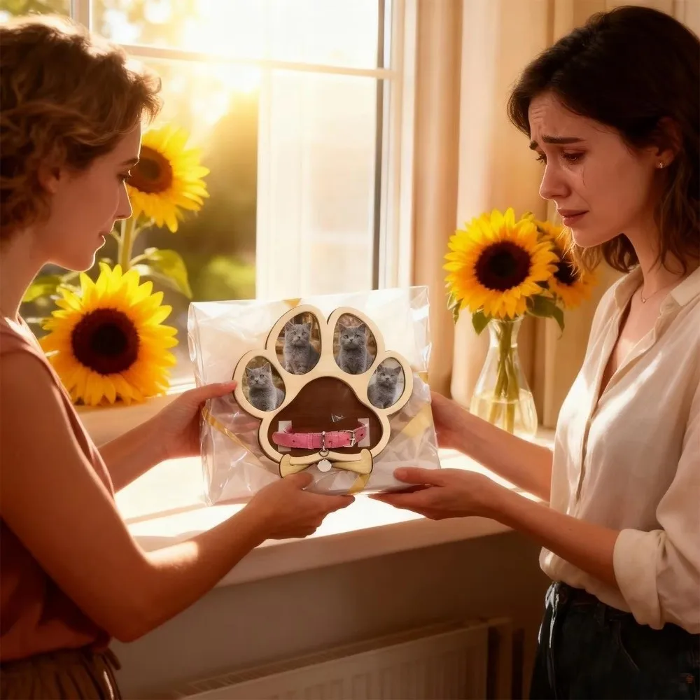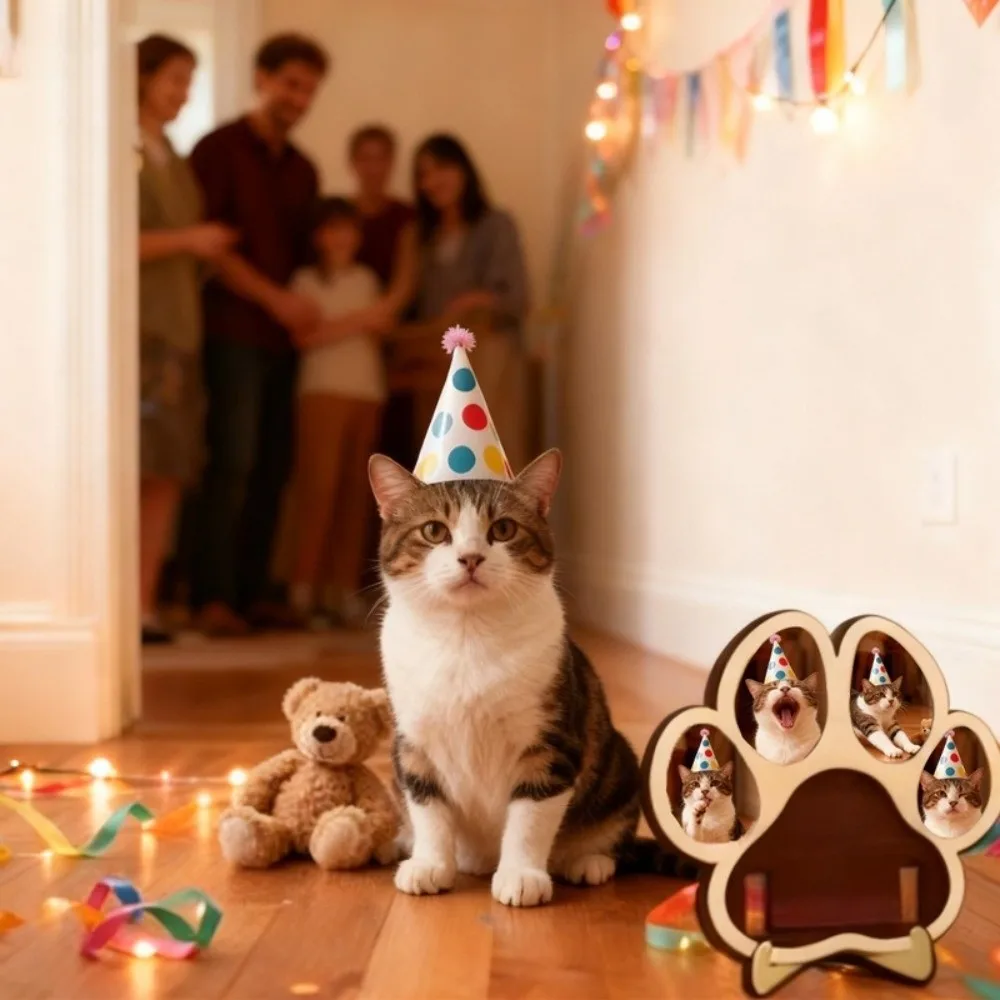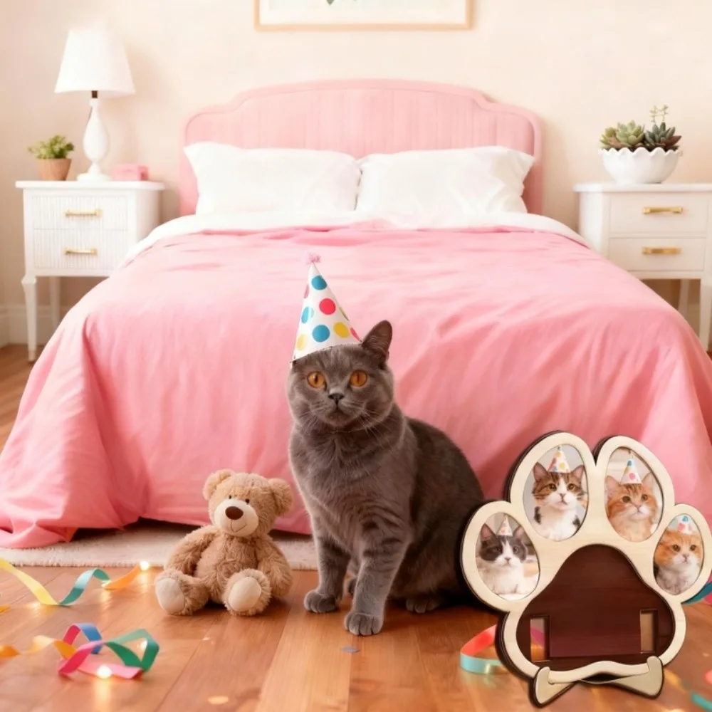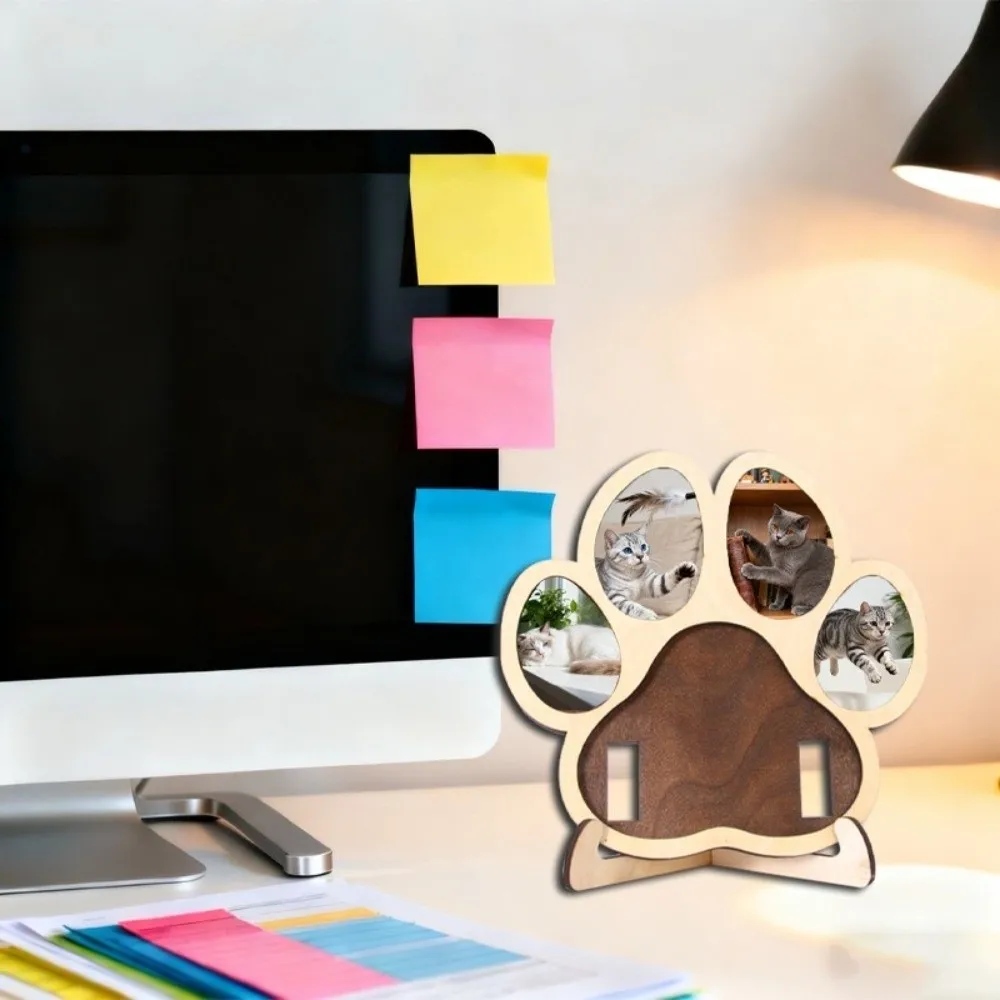 Cat and Dog Paw Shape Pet Keepsake Photo Album Detachable Wooden Solid Wood Frame Handcrafted Decorative Memorial Picture Frame