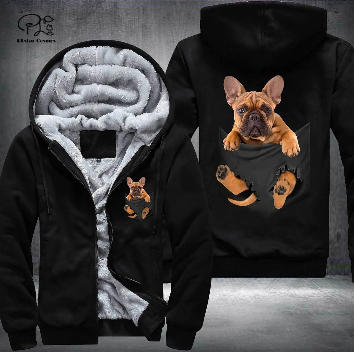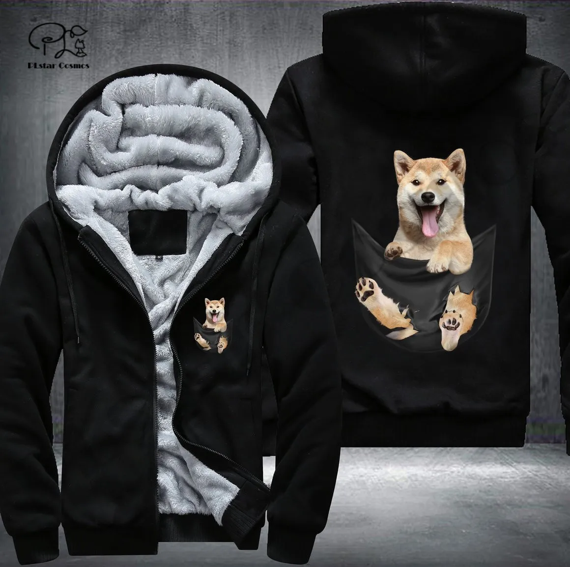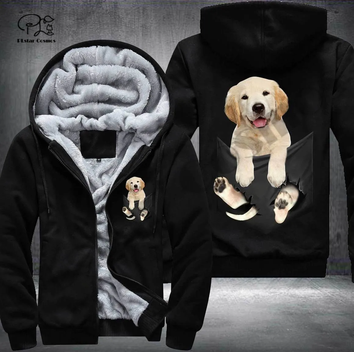 Pet in Pocket Dog Lover 3D printed Fleece Zipper Hoodie - Unique Funny Awsome Men/Women Unisex Winter Warm Double Plus Velvet Jacket