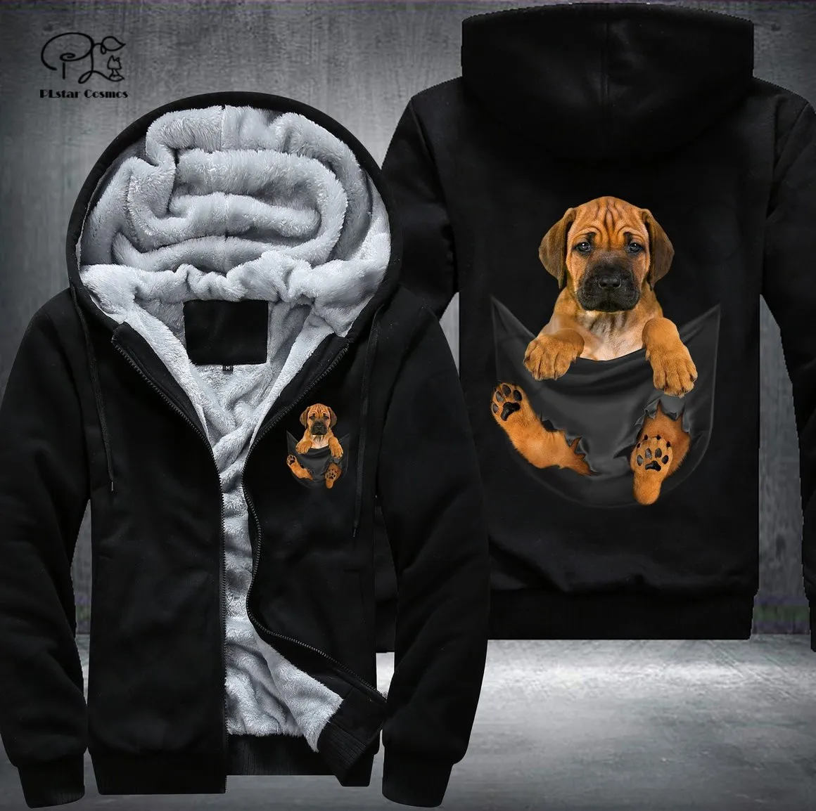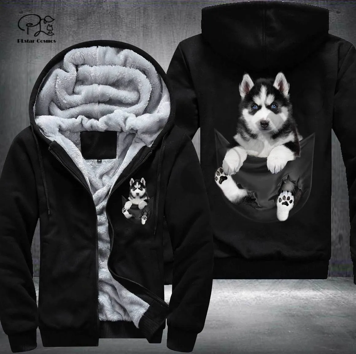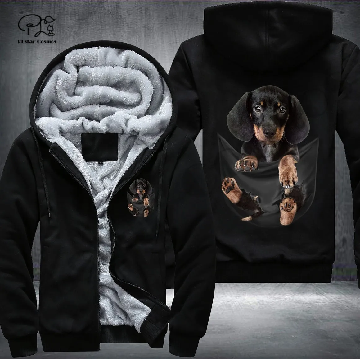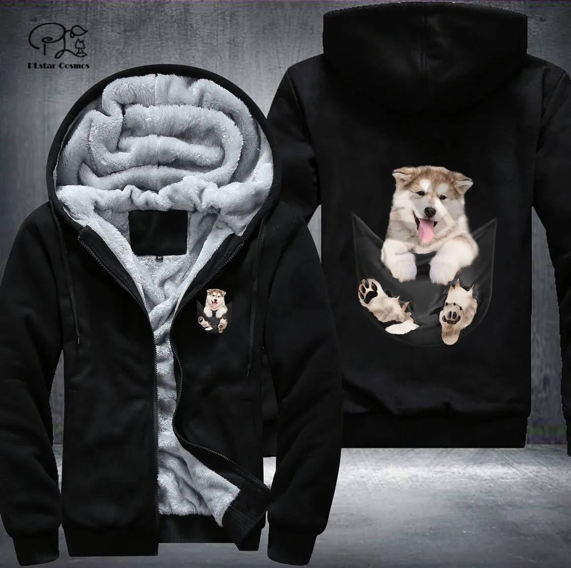 Pet in Pocket Dog Lover 3D printed Fleece Zipper Hoodie - Unique Funny Awsome Men/Women Unisex Winter Warm Double Plus Velvet Jacket