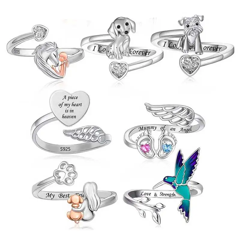 A Piece of My heart In Heaven Mummy of An Angel Dachshund Schnauzer Open Stackable Finger Rings For Girl Teens