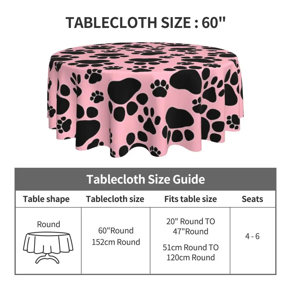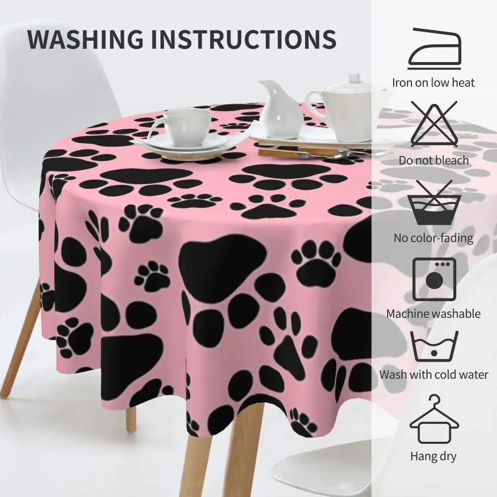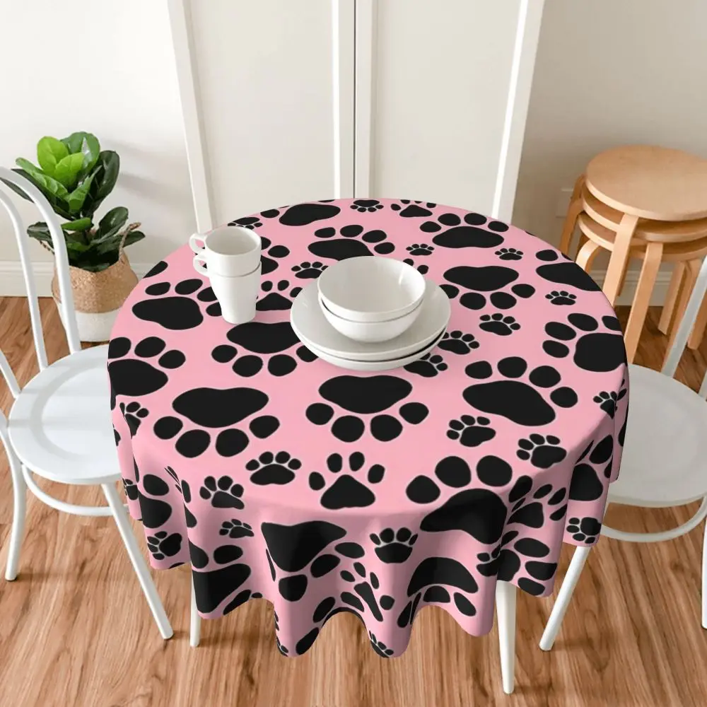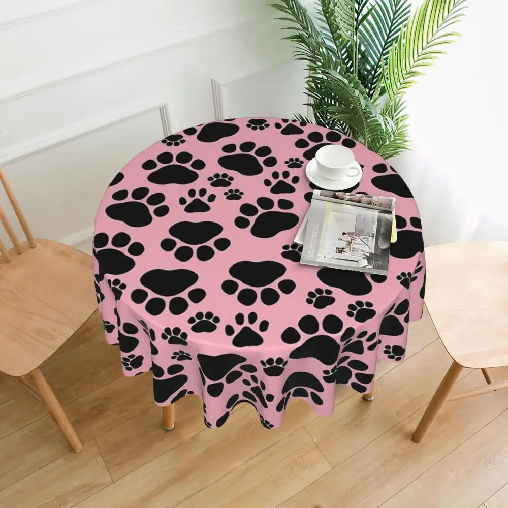 Pink Dog Paw Round Table cloth Animal Graphic Table Cover