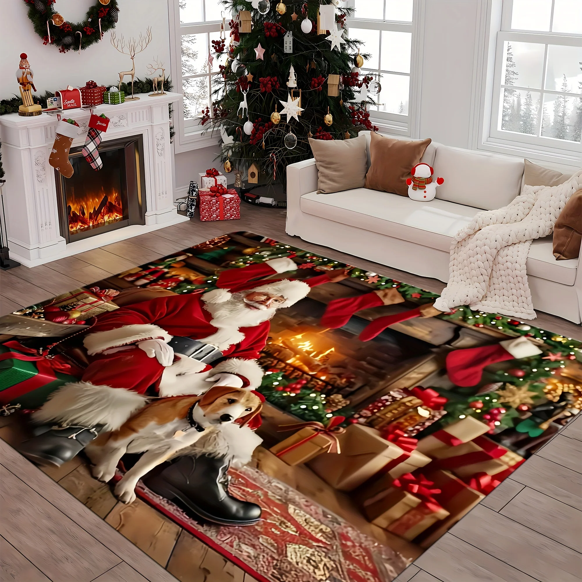 Santa Claus Christmas Doormat, High-Density Flannel Washable Non-Slip Rug for Indoor Outdoor Multi-Room Holiday Decor