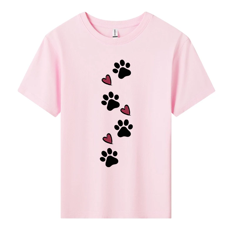 Dog Paw Print Love Short Sleeve Soft Breathable Tee Shirt Summer Fashion Clothing Casual A Family Of 3 Tshirts