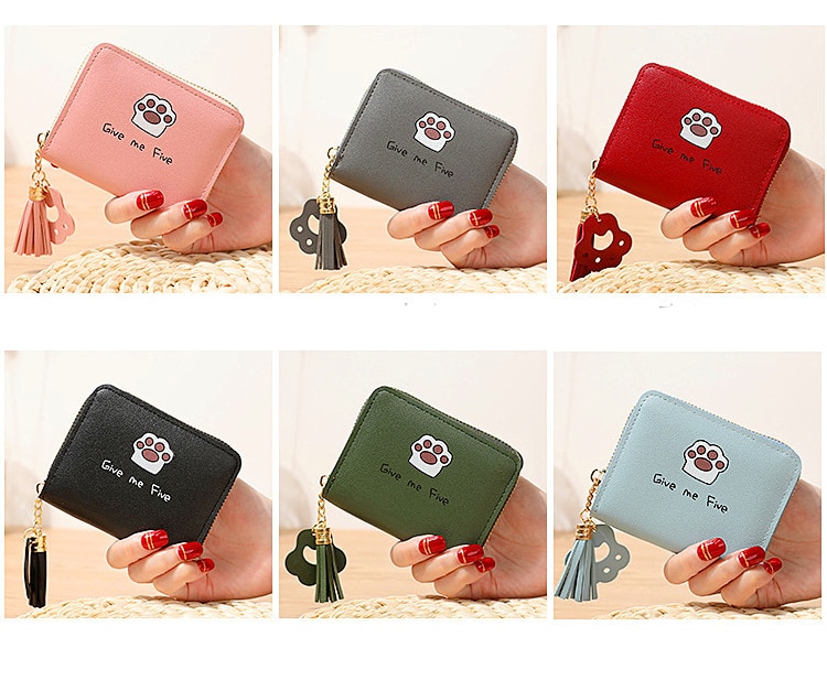Small Wallets Handbag Card-Holder Coin-Purses Money Zipper Female Super Cat Cute Paw