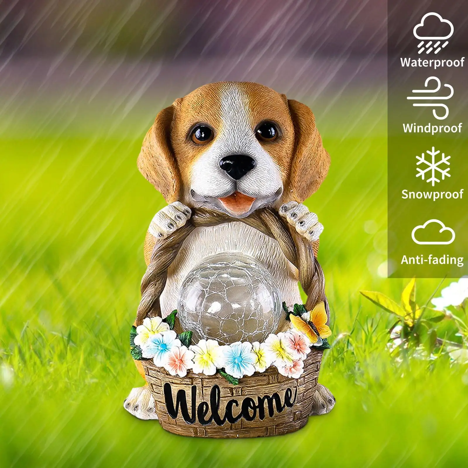 Solar Puppy Statue Light Dog Figurine LED Light Waterproof Puppy Garden Sculpture Creative for Home Patio Yard Lawn