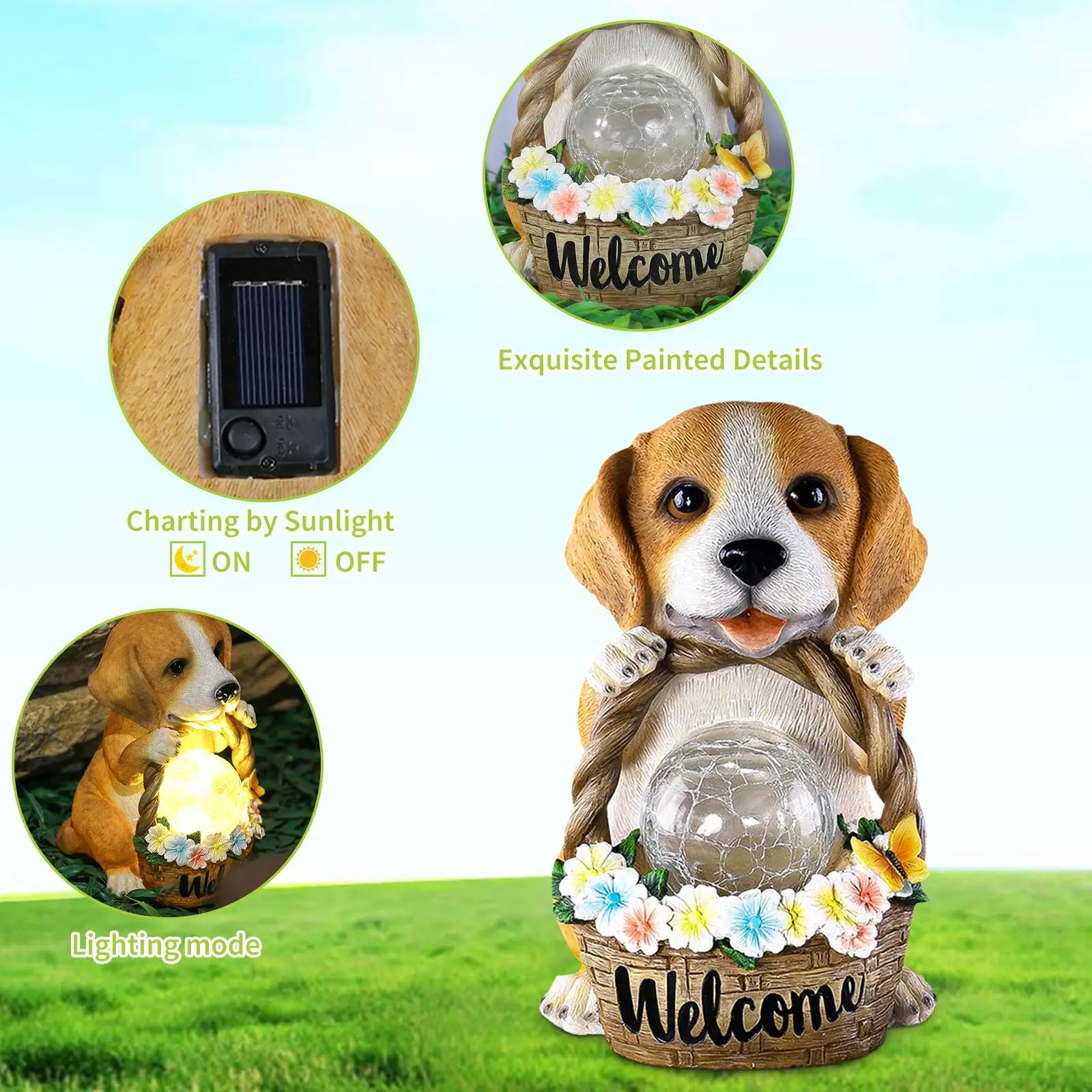 Solar Puppy Statue Light Dog Figurine LED Light Waterproof Resin Garden Decorations Creative Anti UV for Home Patio Yard Lawn