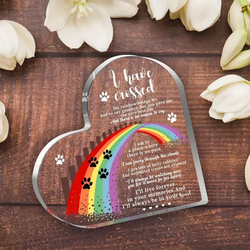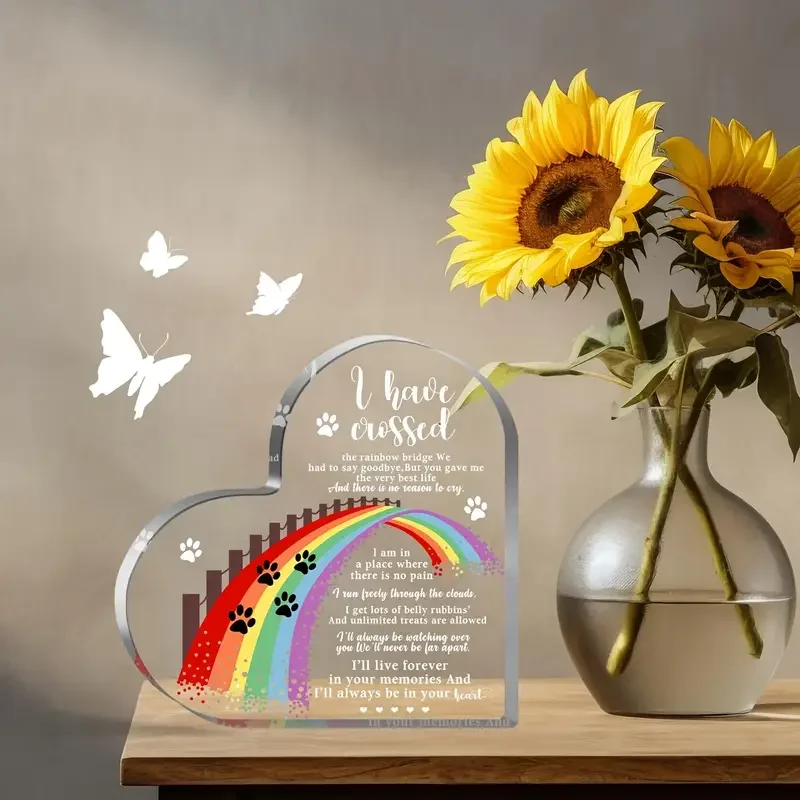 [Sympathy Gift] Rainbow Bridge 1pc Heart-Shaped Acrylic Pet Memorial Gift | 2D Flat, Paw Prints & Butterflies, Sympathy Gift